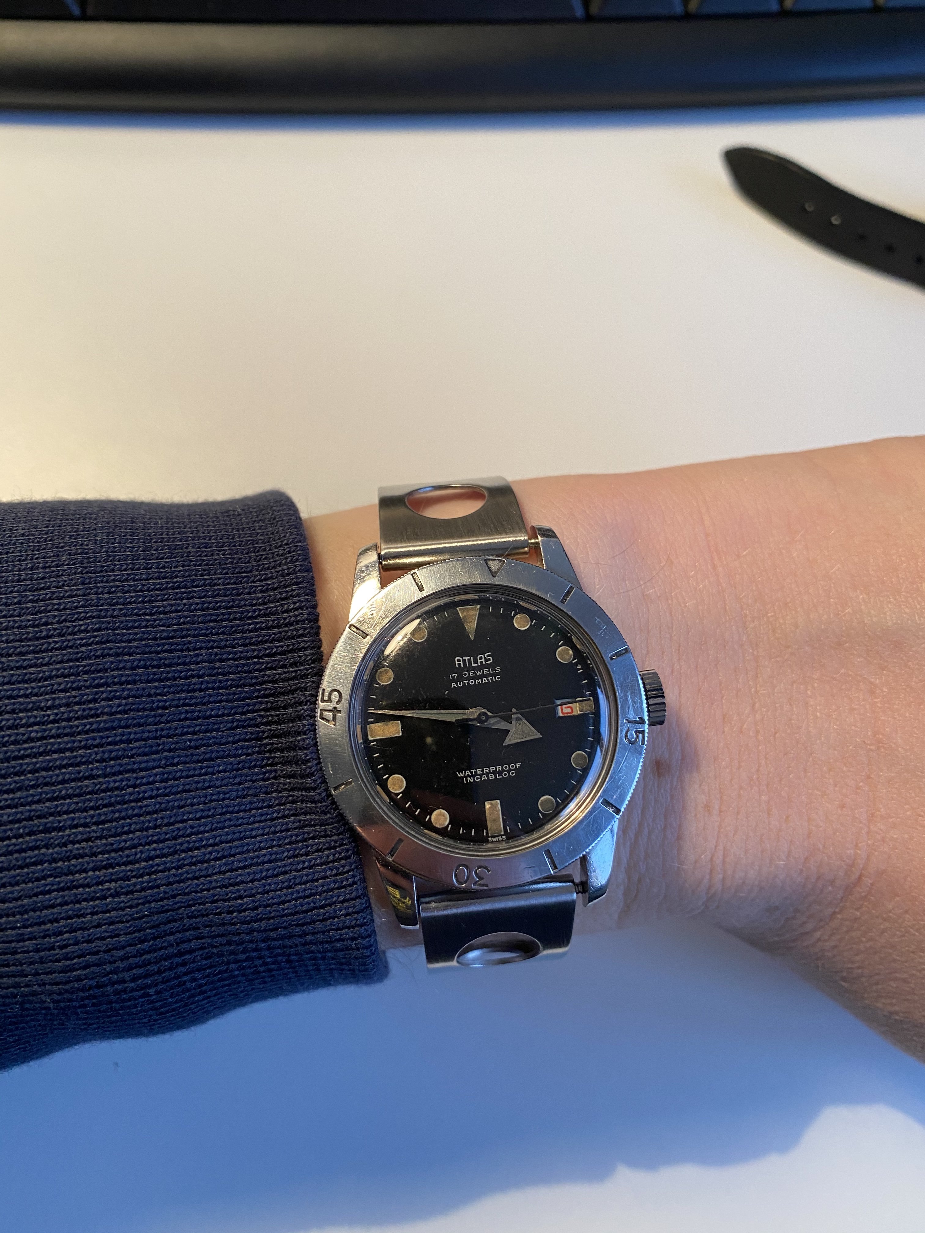 I picked up one of these NOS Tissot ‘rally’ bands to stick on a skin diver, recommended seller and price.