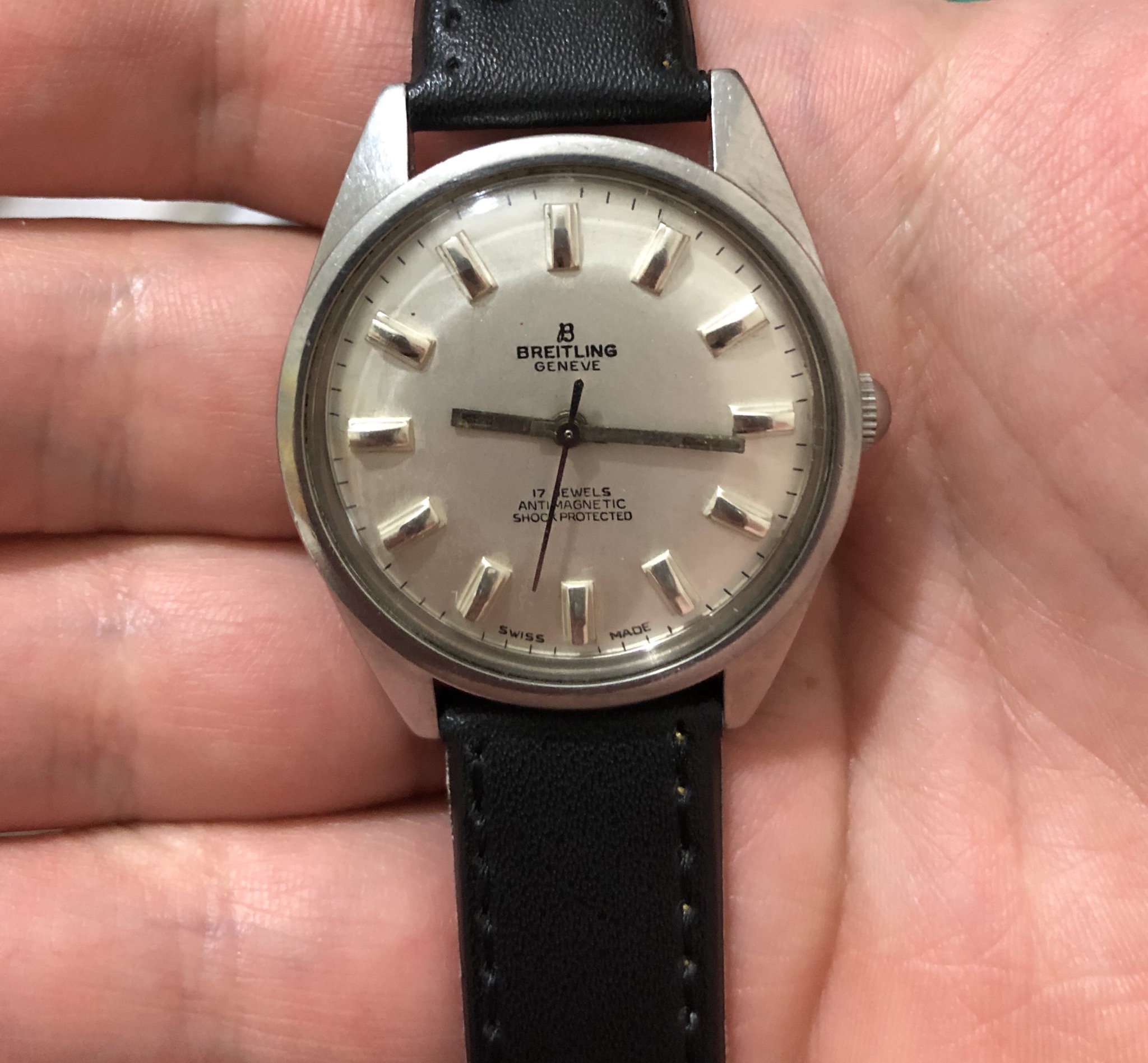 it says breitling on the dial but it looks like its not original as it looks refinished or painted on ,not by breitling.