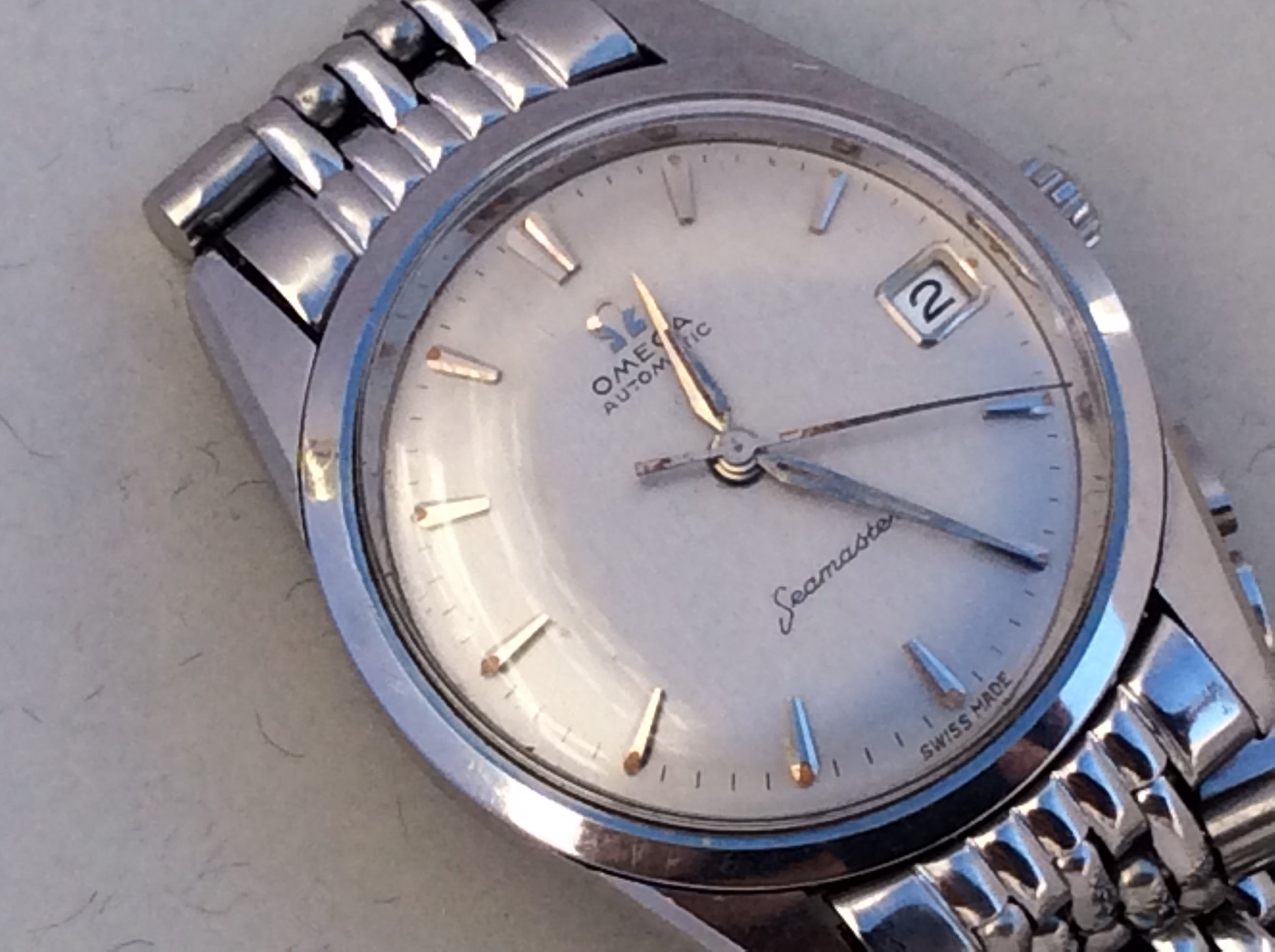 Posts 9 Likes 0 Many123 ·Dec 16, 2023 Davidt Does it have a grey dial or is it just shadow on a silver dial? Yes, Has aGray Dial, looks beutiful,, more photos, but my ipad is not very good the quality of the Photograph,also has a Mexican Bracelet Omega,