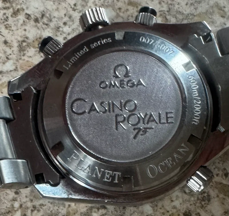 The crown and endlink look whacky and the TM Danjaq on the clasp is missing a space...