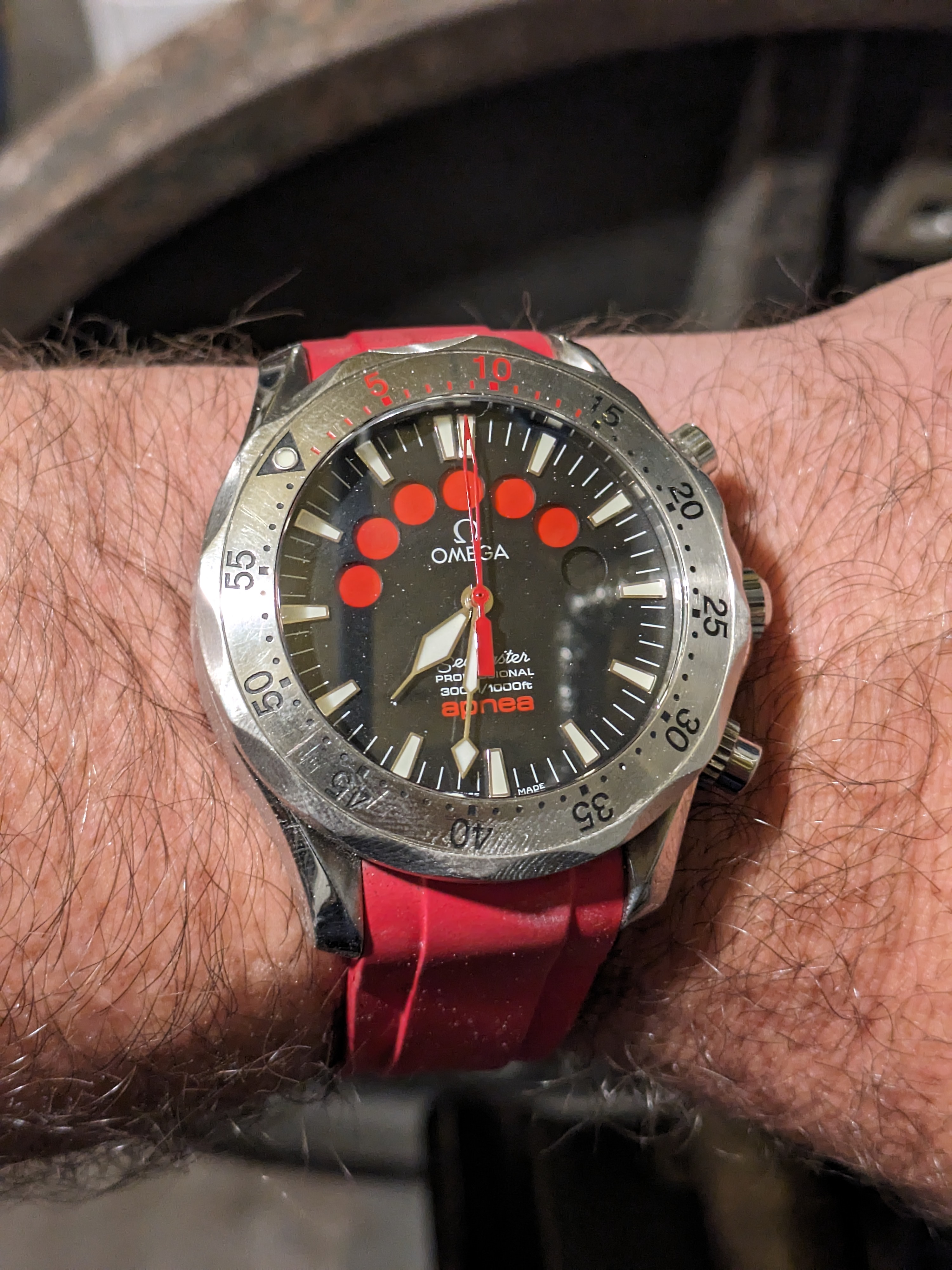 on strap watch only for a SMP Jaques Mayol Apnea chrono on bracelet with 2 new rubber straps box and booklet. My AP has an inscription and I am in it for under 1.5k. The trade is even across. My collection is Omega based and SMP centric and I have several gold and gold cap pieces already so I figured that the Apnea would get more wrist time.