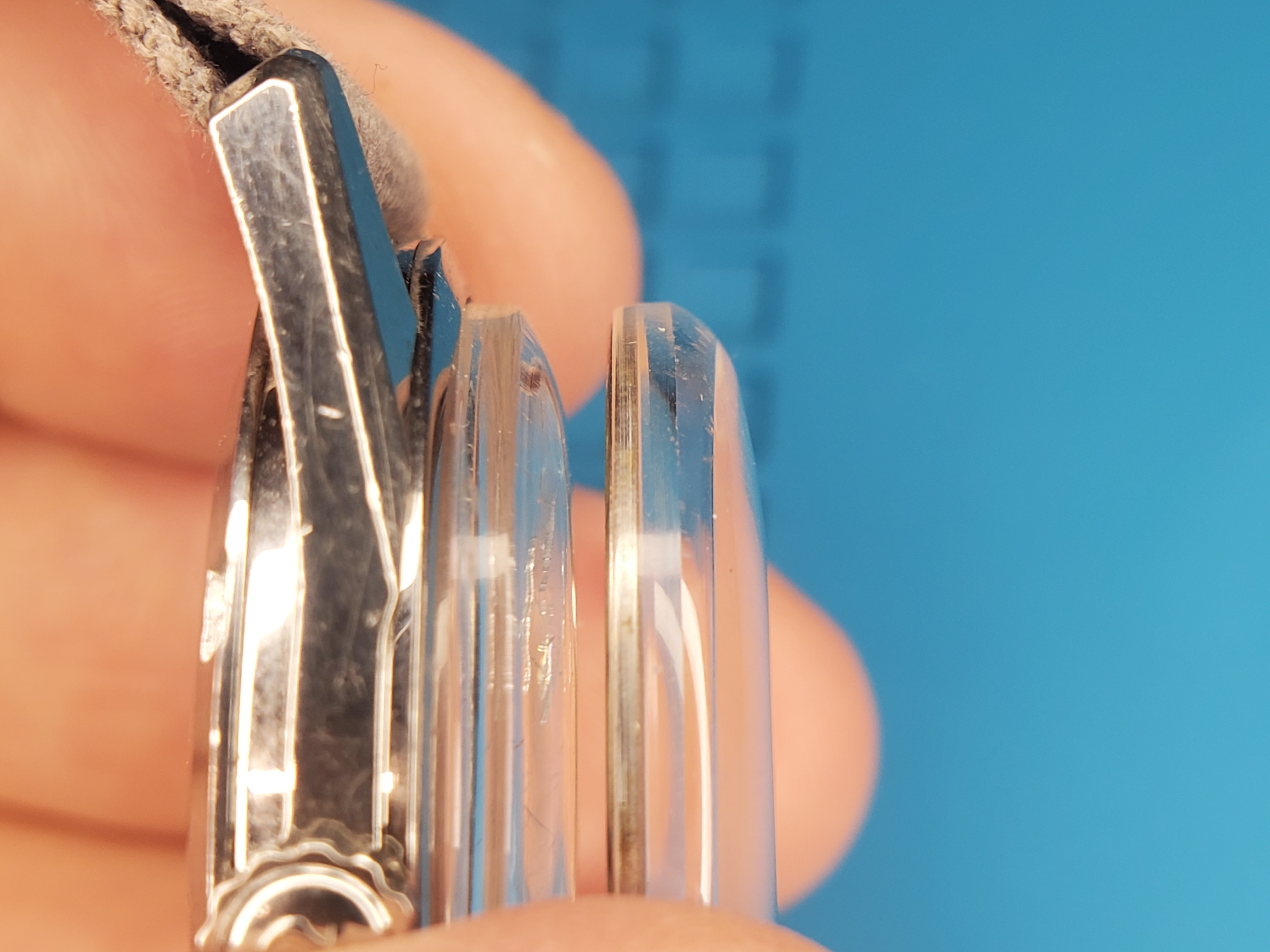 The first problem is the profile. I put my crystal, which I assume is original (no idea if it really is), side by side with the new one, and they are clearly different. The diameters are the same, though, for what it's worth.