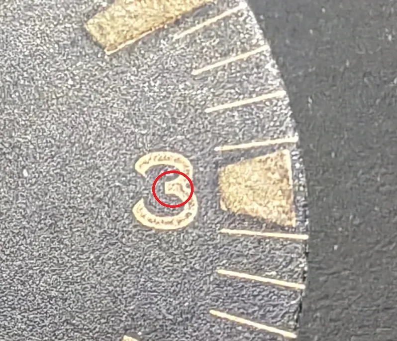 Imo repaintet/redone! You can see it on the (missing,3) serifs 3 or 6 e.g. and Seamaster