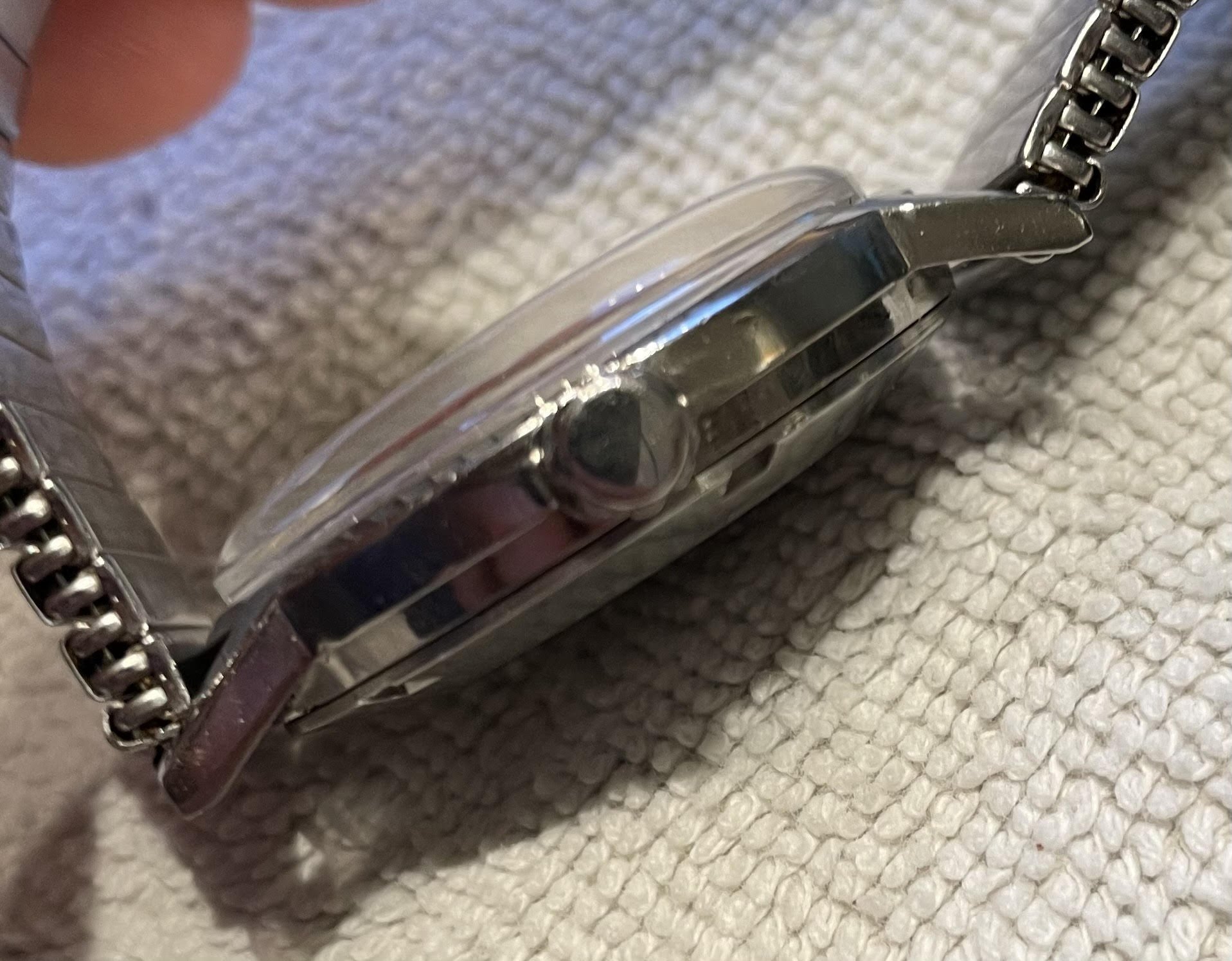 The workshop had a look at the movement, and it was an authentic Omega Movement, but not the 601 manually wound movement. The workshop also replaced the crystal and crown, as they were in bad shape.