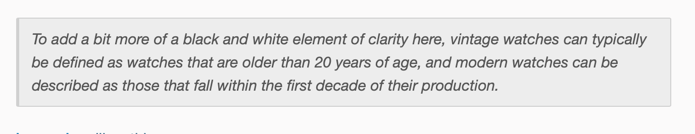 To add a bit more of a black and white element of clarity here, vintage watches can typically be defined as watches that are older than 20 years of age, and modern watches can be described as those that fall within the first decade of their production.