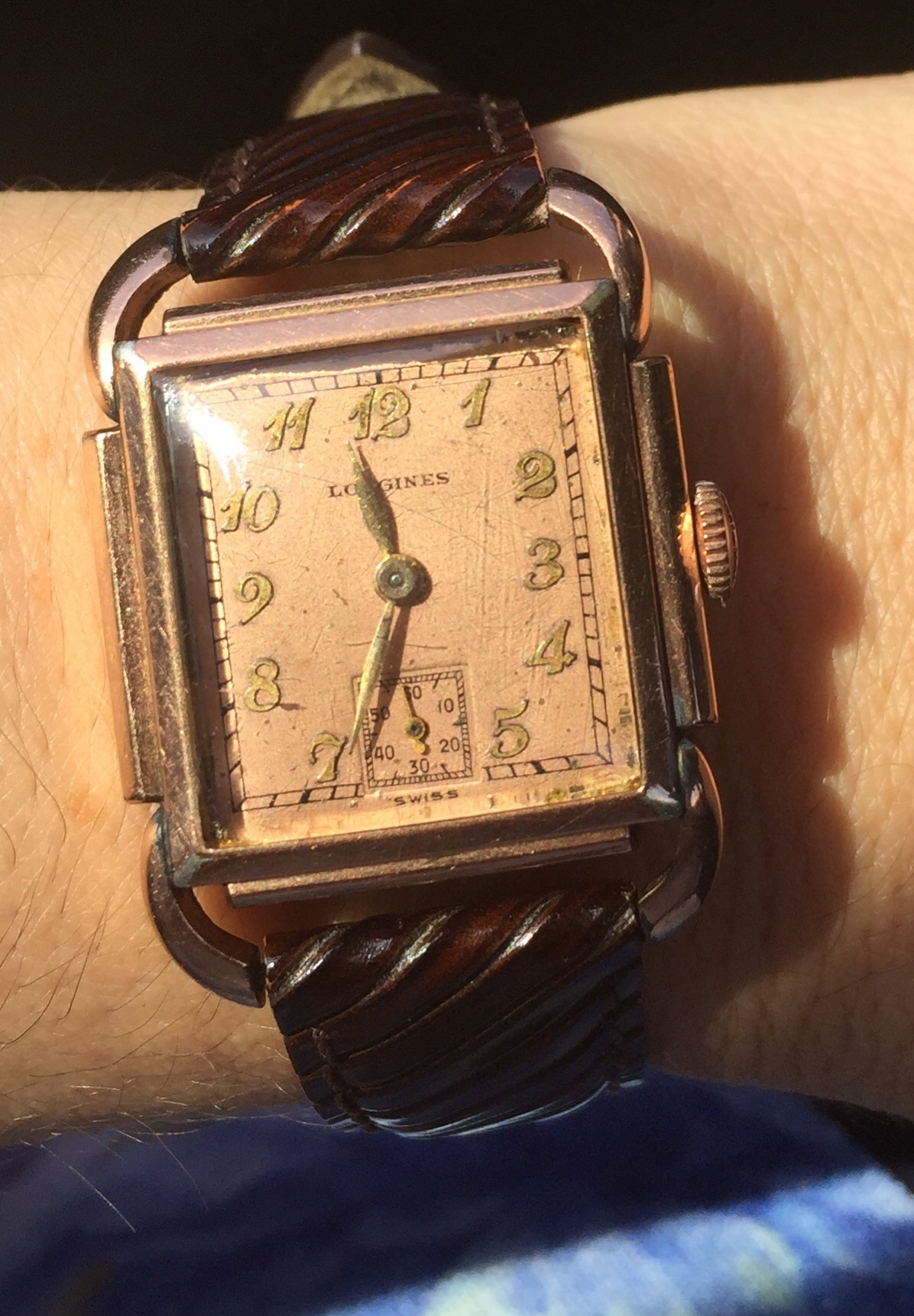 I gave it to my special lady friend a few years back, and so it sits in her watch case not mine, so I don't see it much. She has been refocusing her collection and asked if I thought she should keep or sell this one, and so I was researching it. I had always presumed it was gold plated, without ever thinking about it, but looking at it closely, it is definitely not plated.