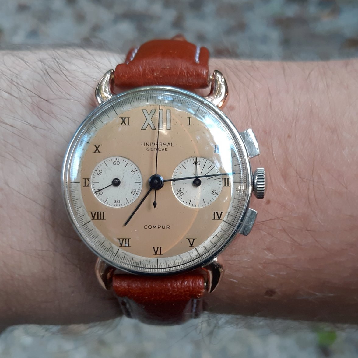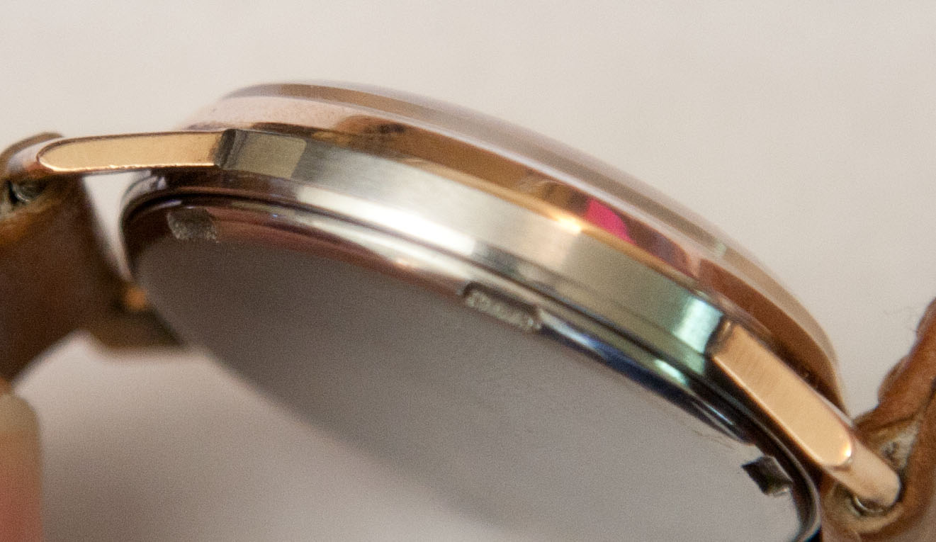 I am seeing other examples online, aside from the one posted above, and people keeping saying either 14K or 18K rose gold in the listings. I assume if someone says 14K or 18K, that means solid gold. But perhaps I am misunderstanding this, can you say 14K or 18K for gold filled? Maybe those are just advertising weasel words. Anyhow here's one (no hallmarks I can see), the texture on the back of the lugs looks the same to me, its just much cleaner: