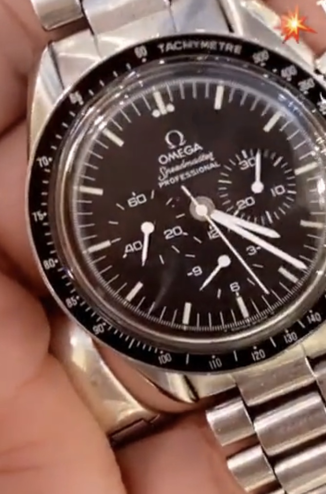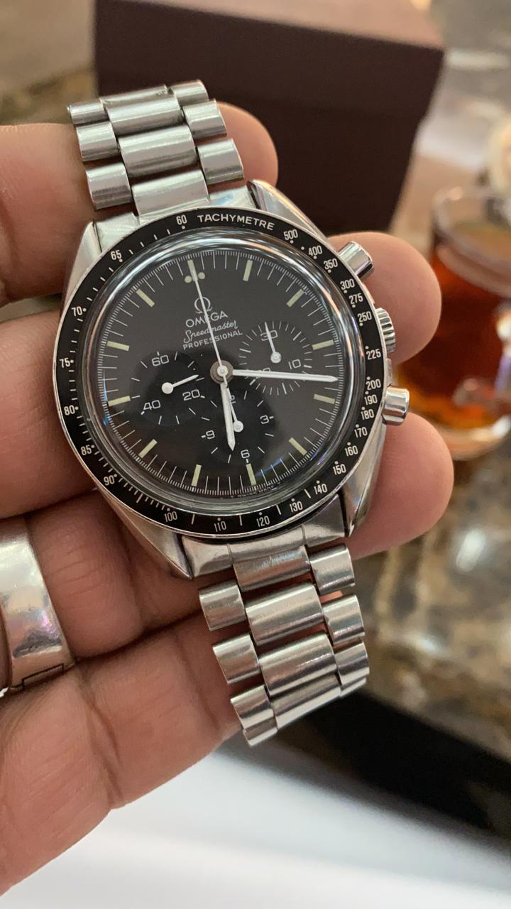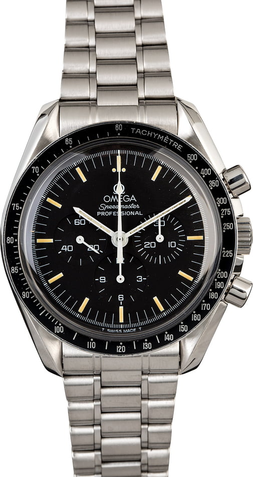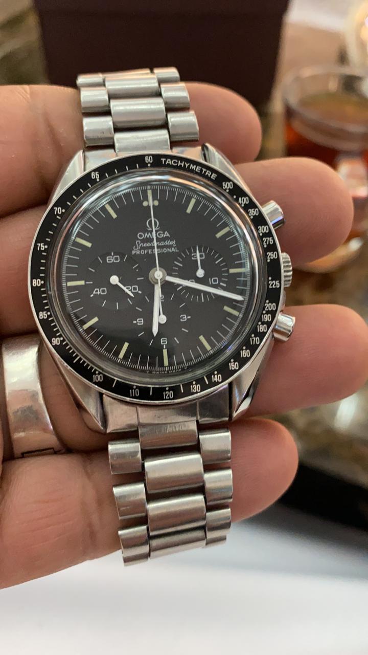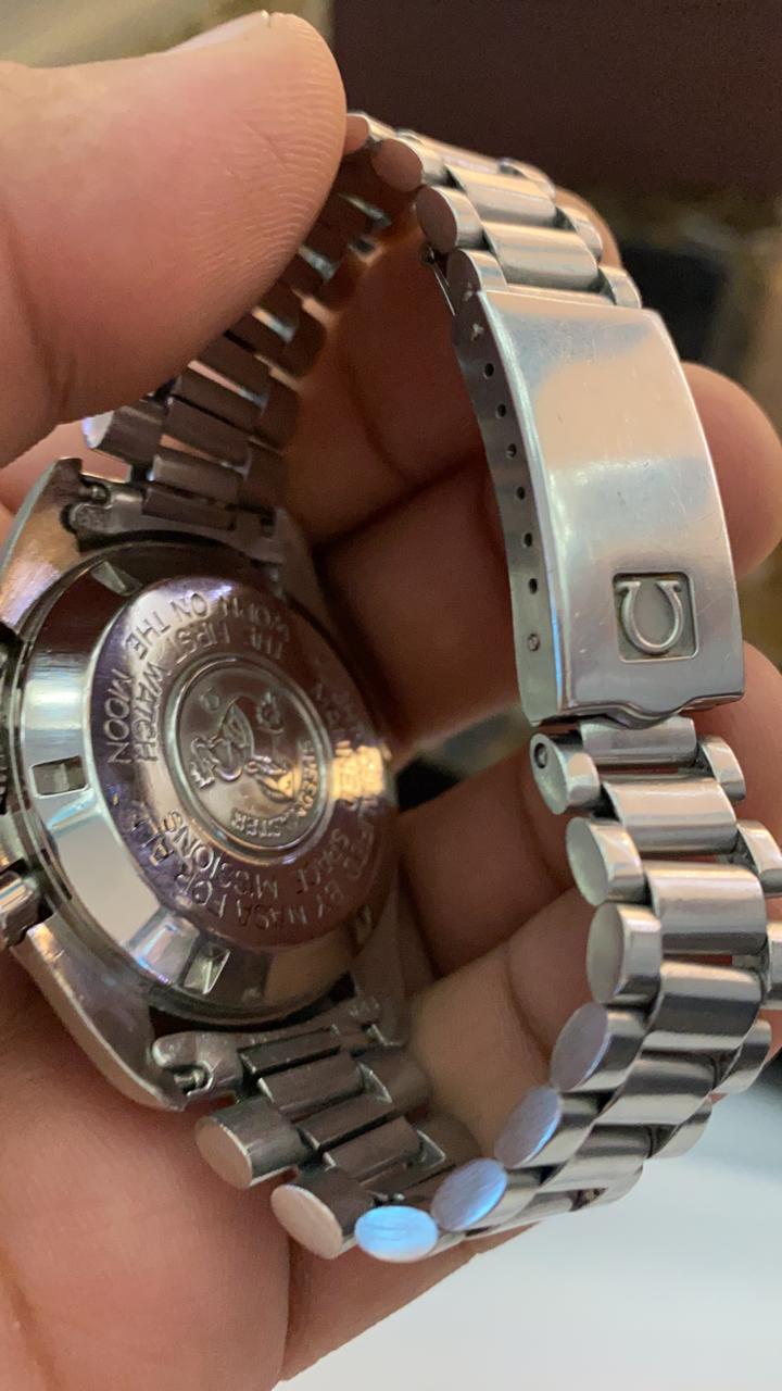 the case back photo is completely blurred... it might have written in a circle "FLIGHT-QUALIFIED BY NASA FOR ALL MANNED SPACE MISSIONS" and "THE FIRST WATCH WORN ON THE MOON". So, maybe, you have a reference 145.0022 or 145.022. or 3590.50.. a photo of the movement, exterior and interior of the case-back would help resolve the question of identity.