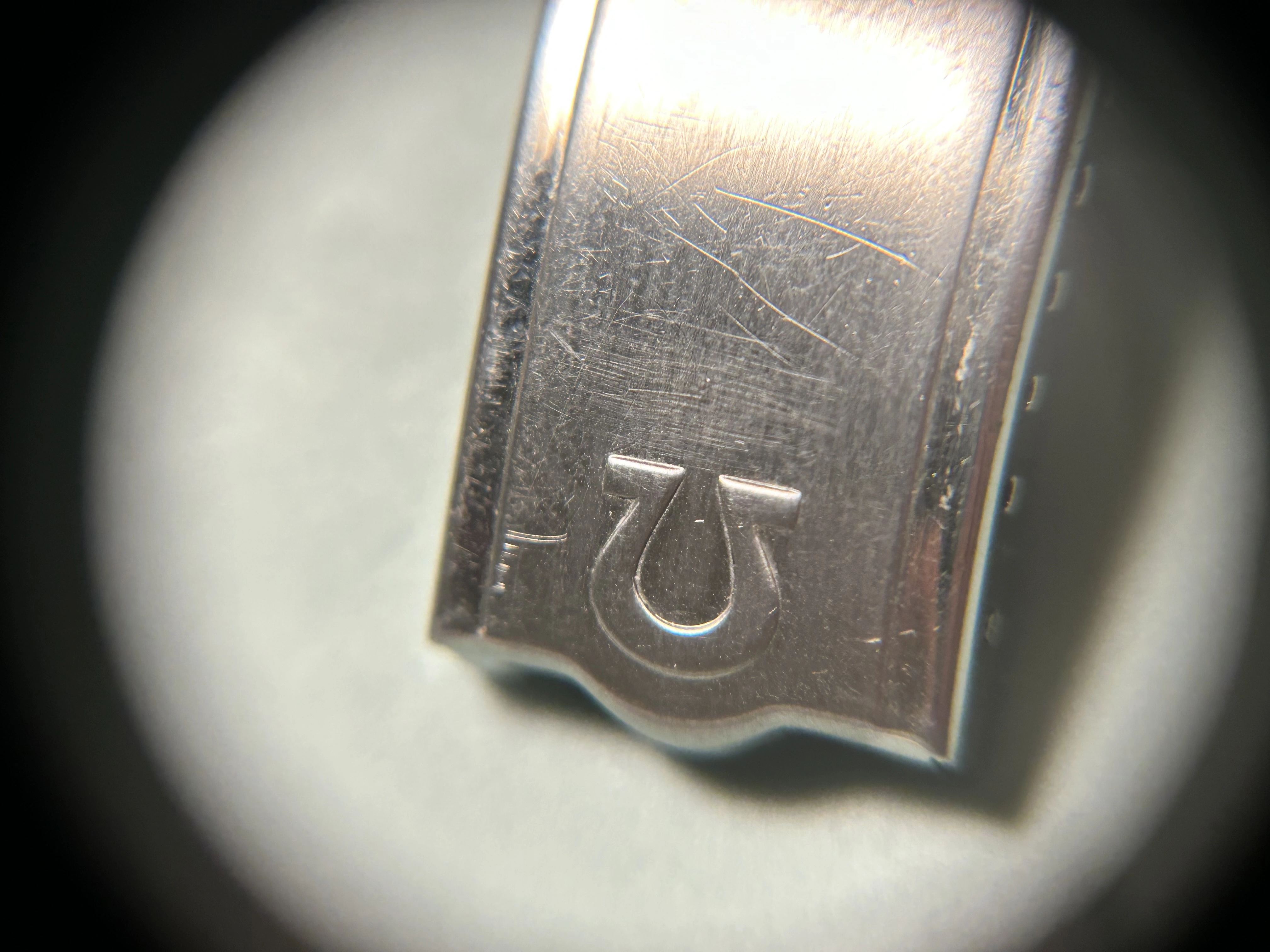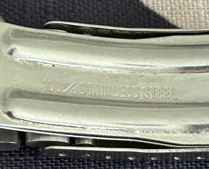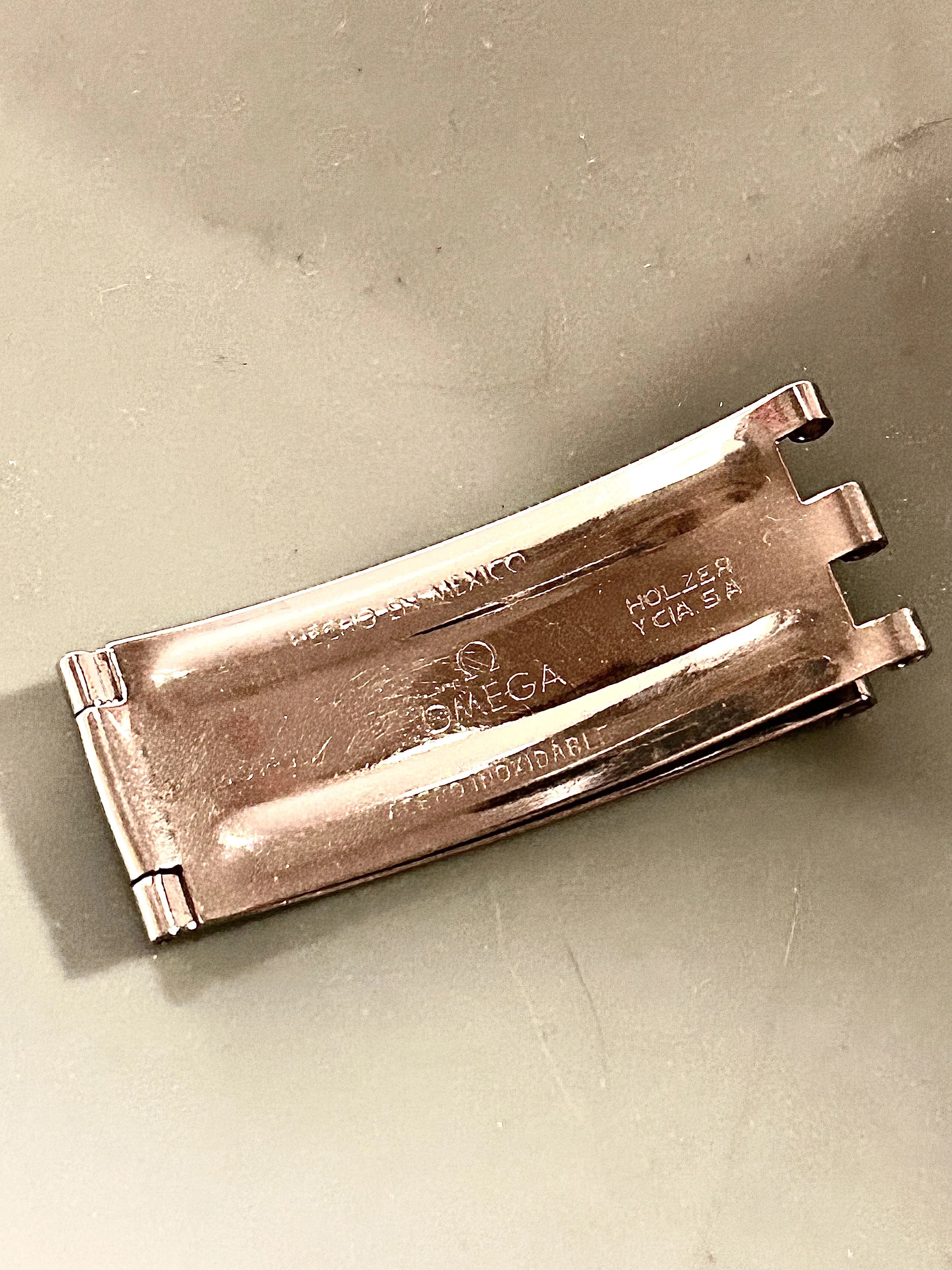 ··IG: #blubarb19A franken clasp, right, but what about the band itself - ring any bells? OEM Omega? It came off a Speedmaster MK II I received recently, but unlike anything I have seen before. The straight ends and the large taper to the clasp look as if they were made to fit that style of case. Appreciate any help in identifying what I have here.