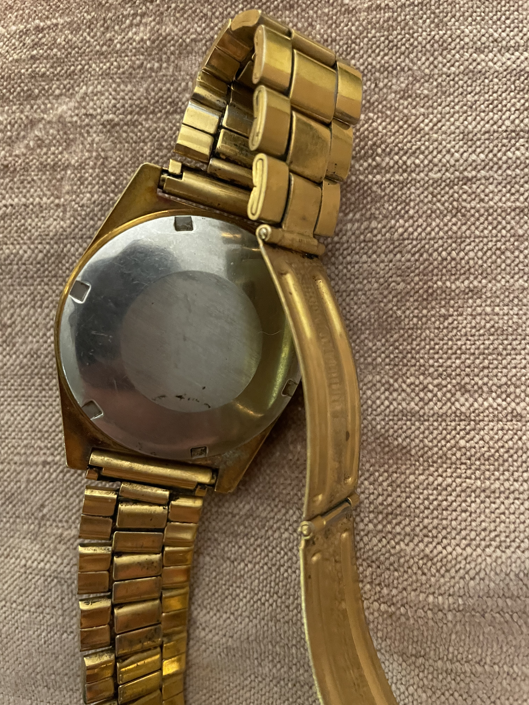 70s /80s Quartz probably. All info is inside the case back of watch. ( Needs removal to get model# and serial # also to see if Quartz or mechanical (if it works with a wind or a bit of movement it’s probably mechanical) …..Ask a watchmaker to remove caseback)