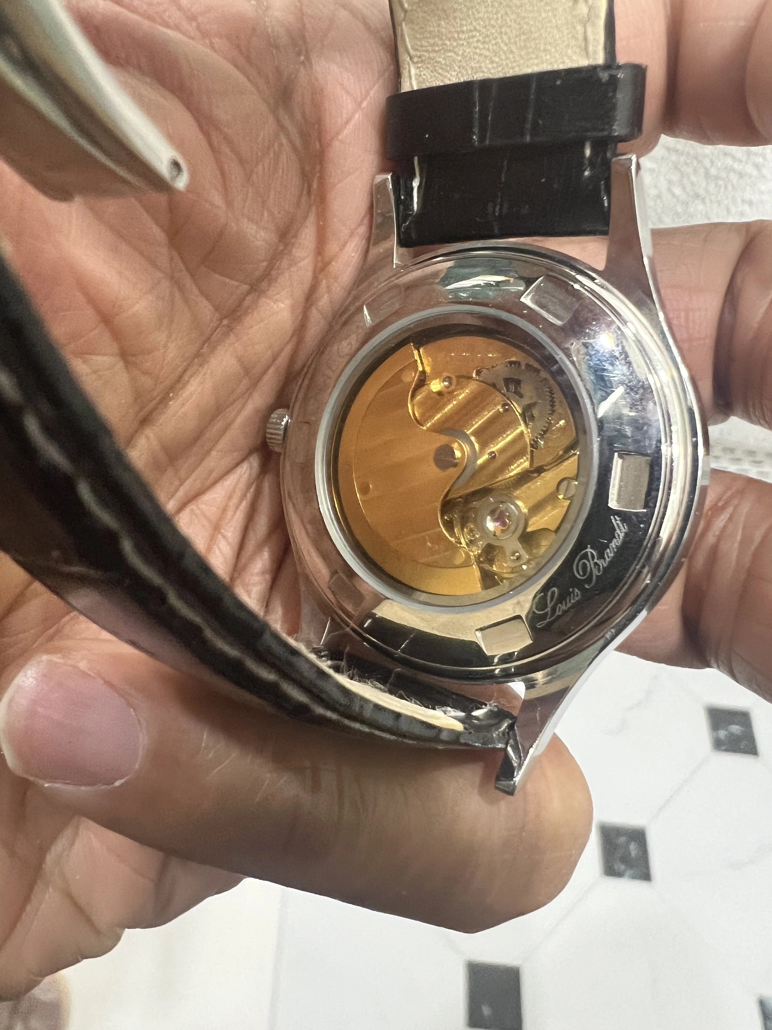 The automatic movement doesn’t have any visible engraving on it without opening the caseback which seems like it would be a generic movement which seems suspect.