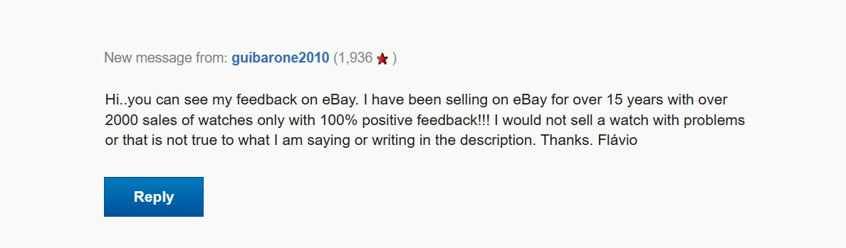 However, I also think buyers should be responsible and not buy a watch, then ask questions afterwards, potentially messing around an innocent and well meaning seller. Due diligence should be done before you purchase.