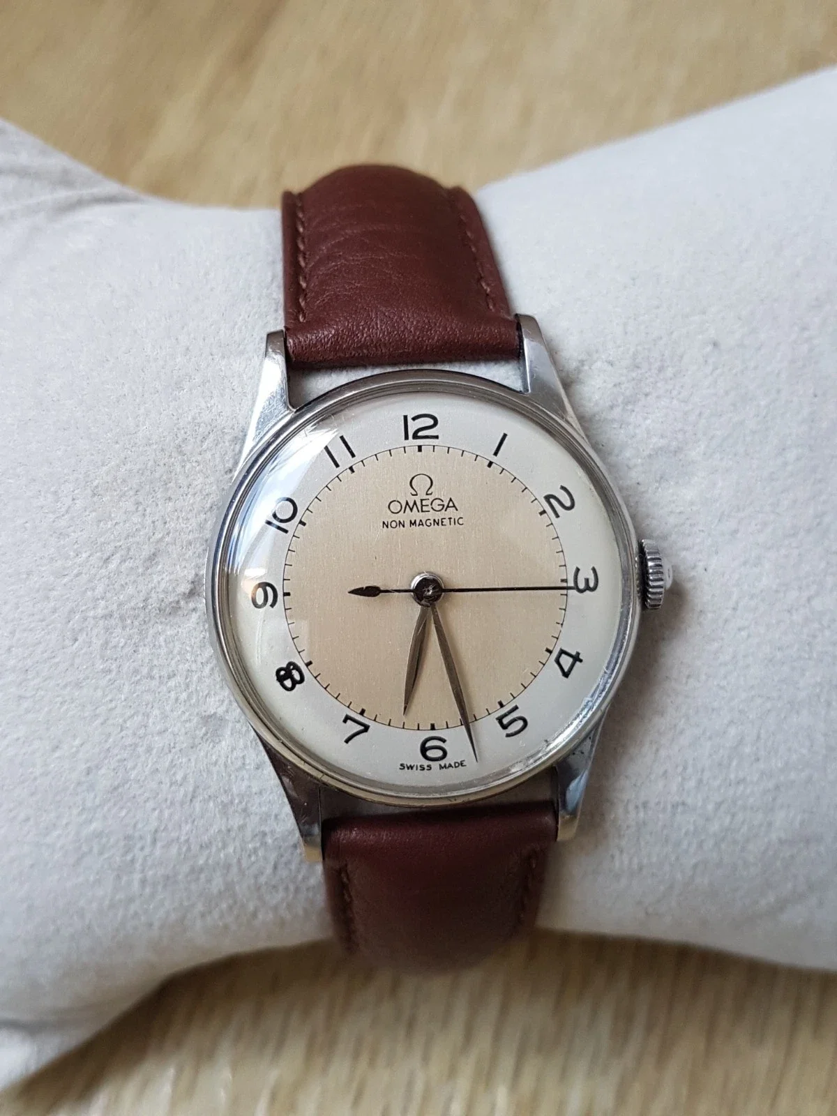 Definitely a refinished dial, not uncommon as this case is a snap-back with very little water resistance so with the daily rigours of life moisture will get in and degrade it over time.