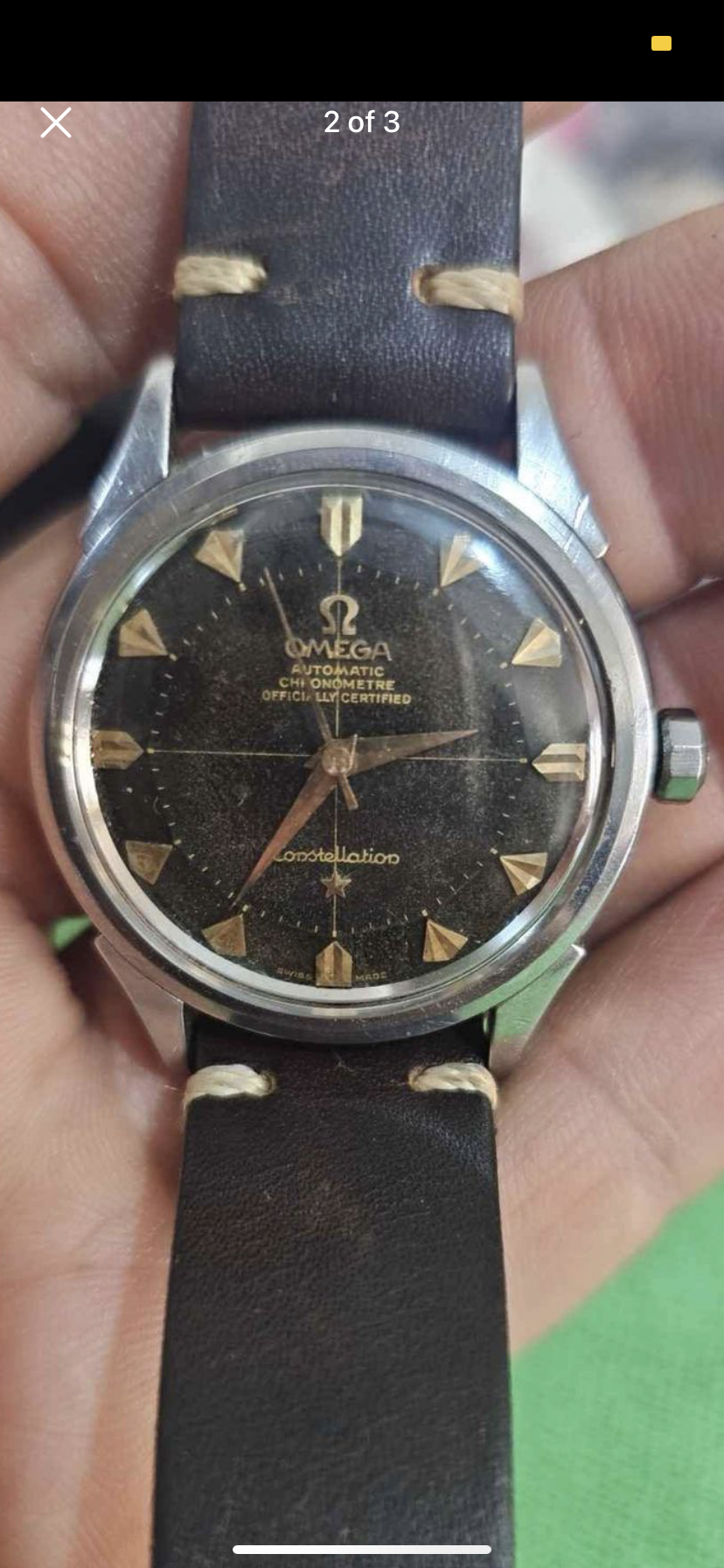 ·Hello everyone, I found this Pie Pan listed at Facebook Marketplace for 250 usd (I’m Chilean, watches are very undervalued here, so that shouldn’t be a source for concern). I have doubts regarding the dial. As far as I can see the dial passes the Moy test, but I’m concerned about the minute markers. I feel like their length and positioning is odd, for example, the ones between 50 and 00. I’m also concerned about the G in the Omega logo. It looks a bit tilted and I haven’t been amble to find any other example with a tilted G. One last thing I haven’t been able to find is the correct movement number for this model. The seller couldn’t provide any movement pictures, but he says I can inspect the movement myself, so I want to come prepared. Thank you very much for all your help!!👍