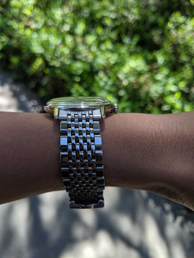 When asking a seller for pics, you need to specify bright and diffused (like a cloudy day) and some with direct raking light (like the sun hitting it at an angle). Also close up details of the dial strait on and on a 45 from each side.