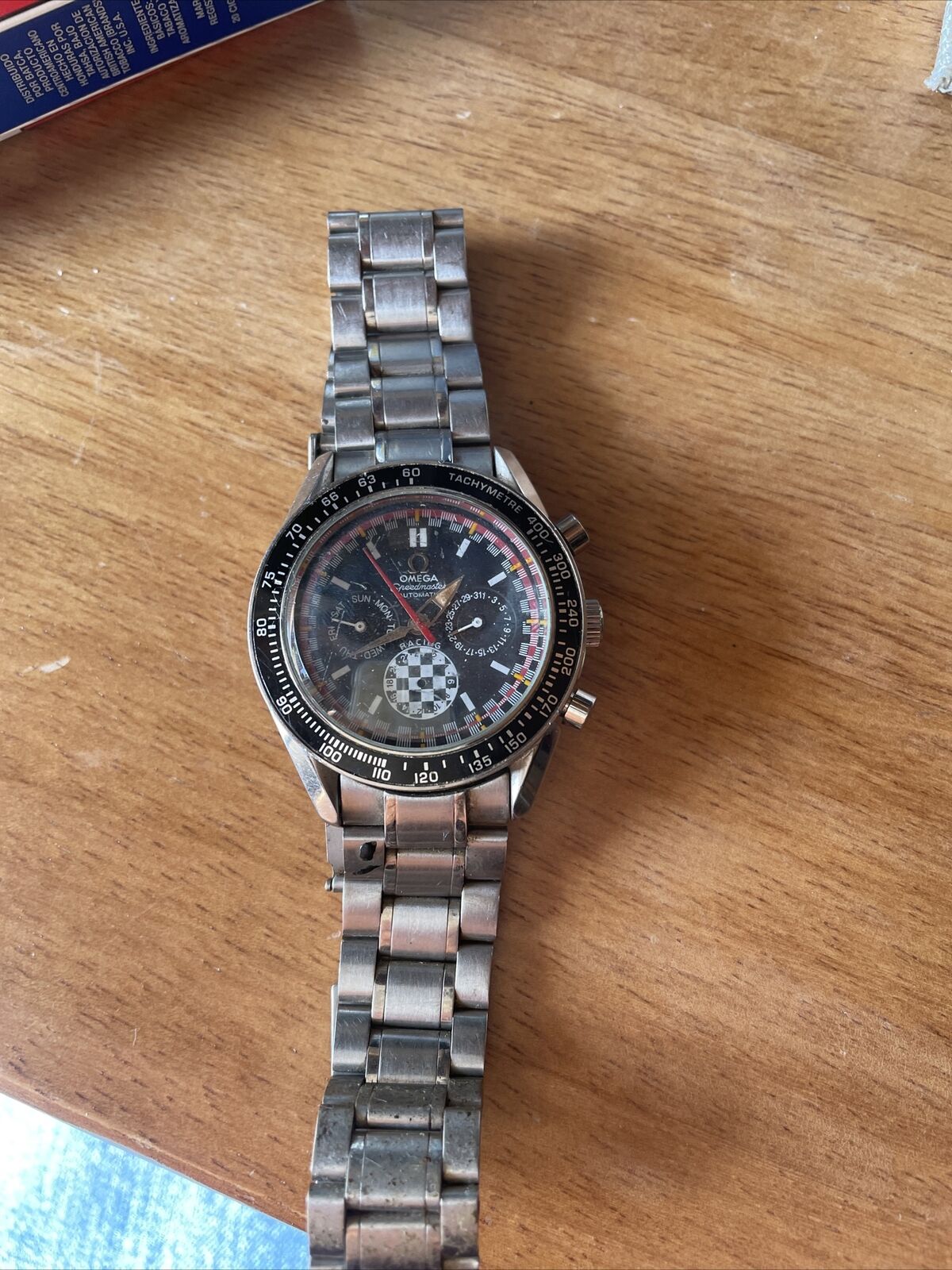 A little bit of everything... ultraman chrono hand, 2998 alpha hands, applied metal logo, tintin dial, day and date in the counters???... the dial should not have "Speedmaster" written on it but rather something like...."Spudmaster" or"Spunkmaster", anything but Speedmaster.