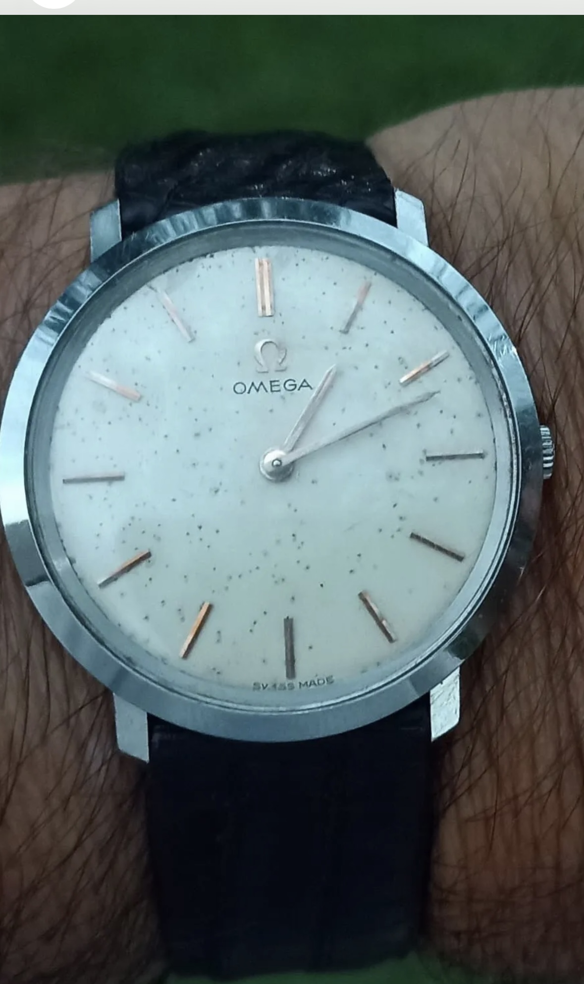 Posts 17,945 Likes 37,524 JimInOz ·Jan 4, 2023·Melbourne Australia Yes. Omega De Ville gents dress watch from the early 1960s. I think the dial has been aggressively cleaned thus removing some of the finish and text.