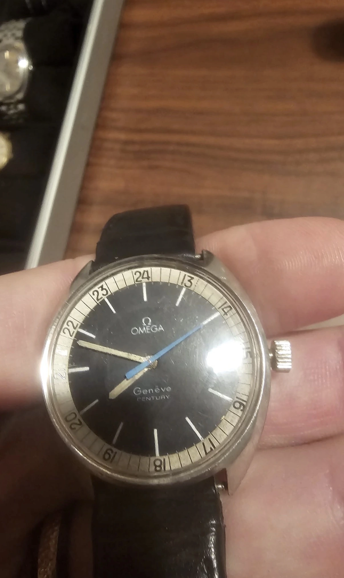 Overpainted Omega Geneve (century) dial, never seen that, with what looks to be a chapter ring slapped onto it.