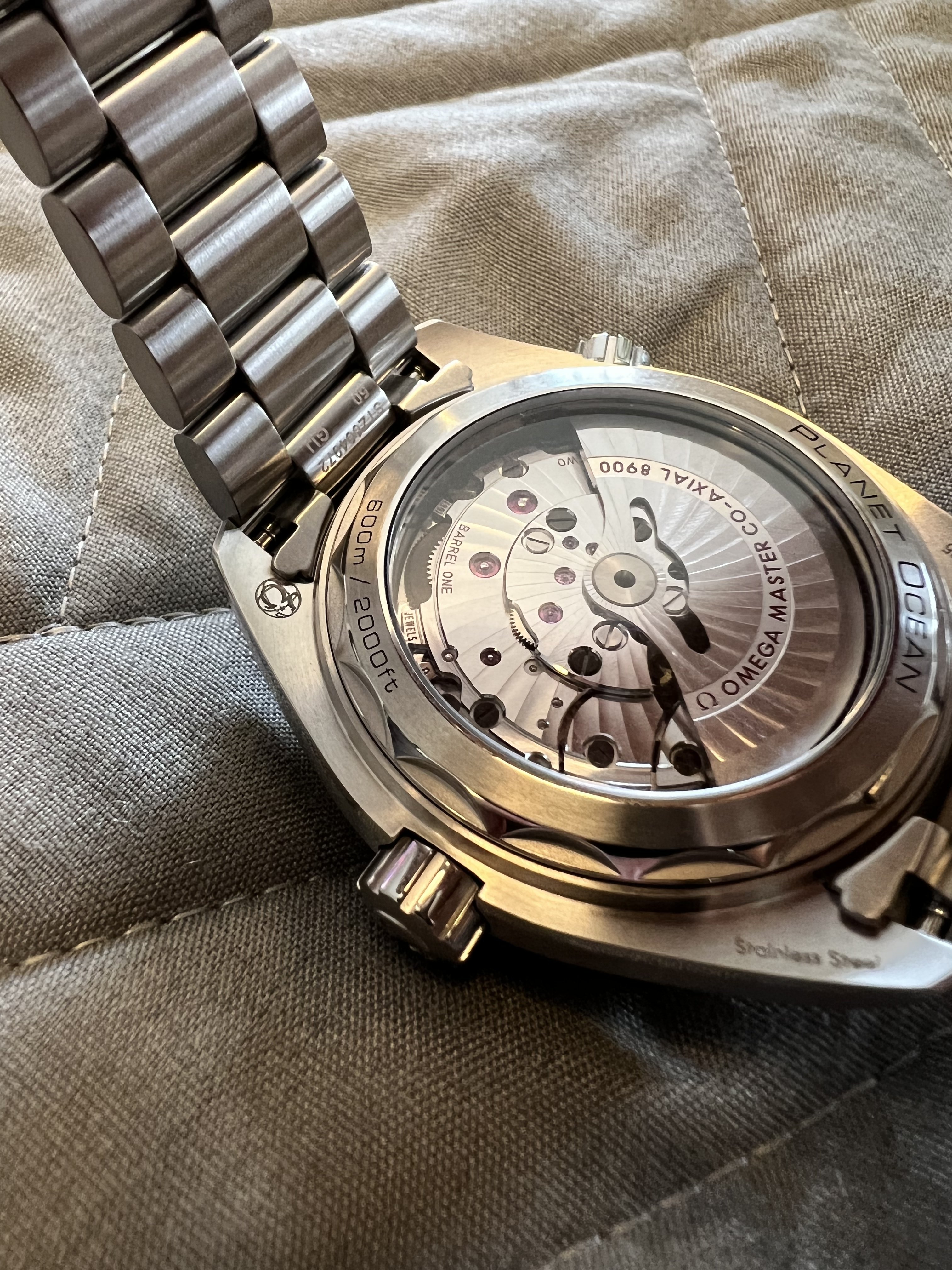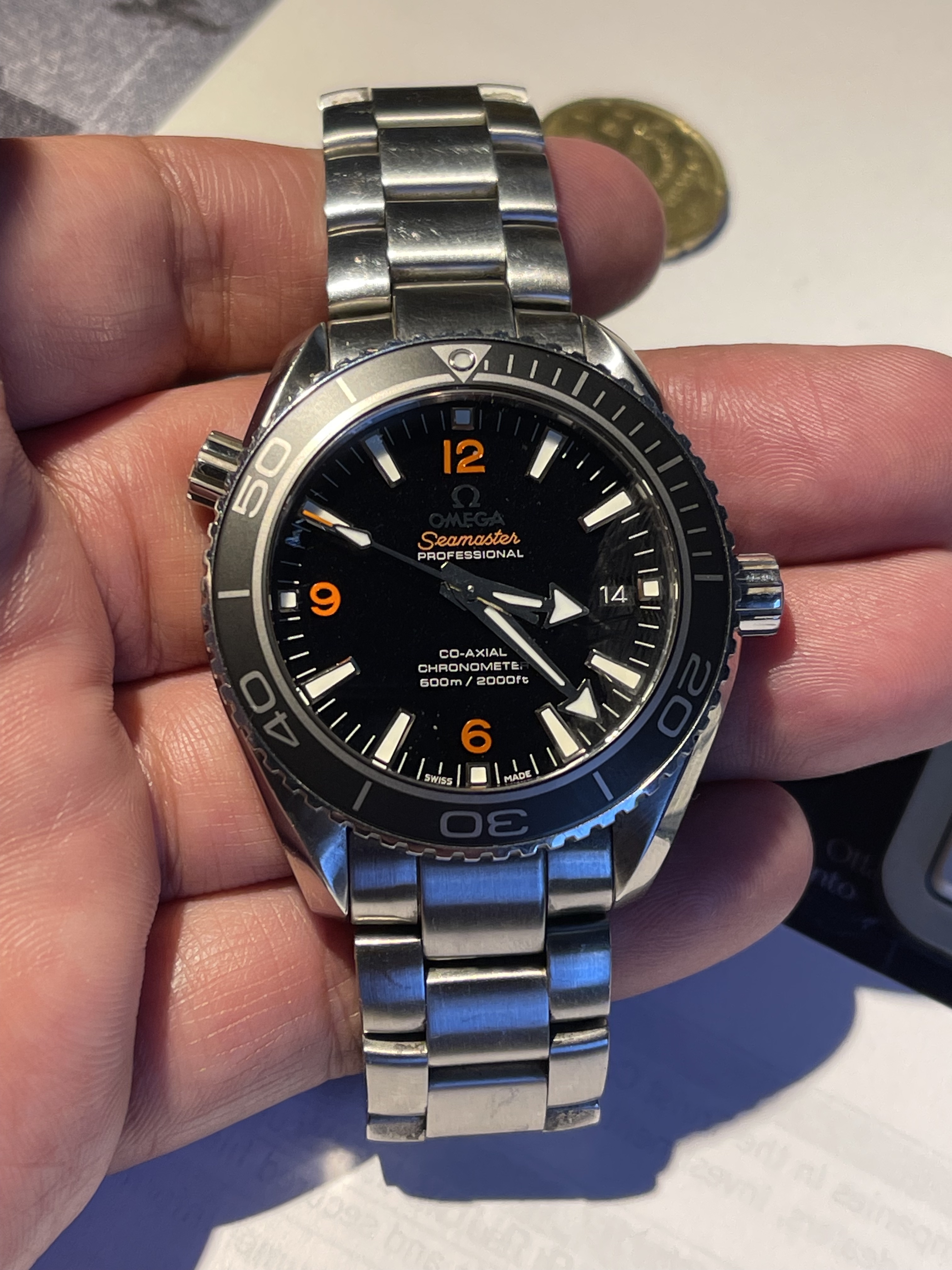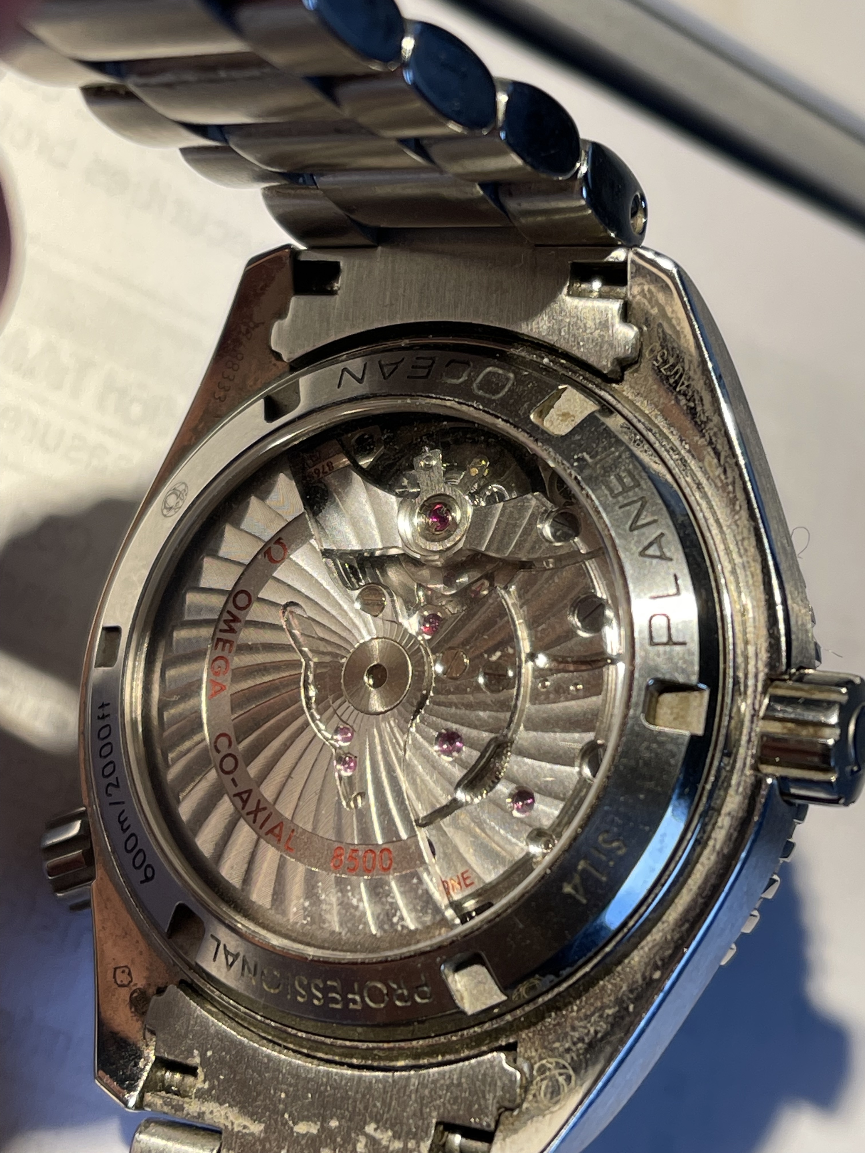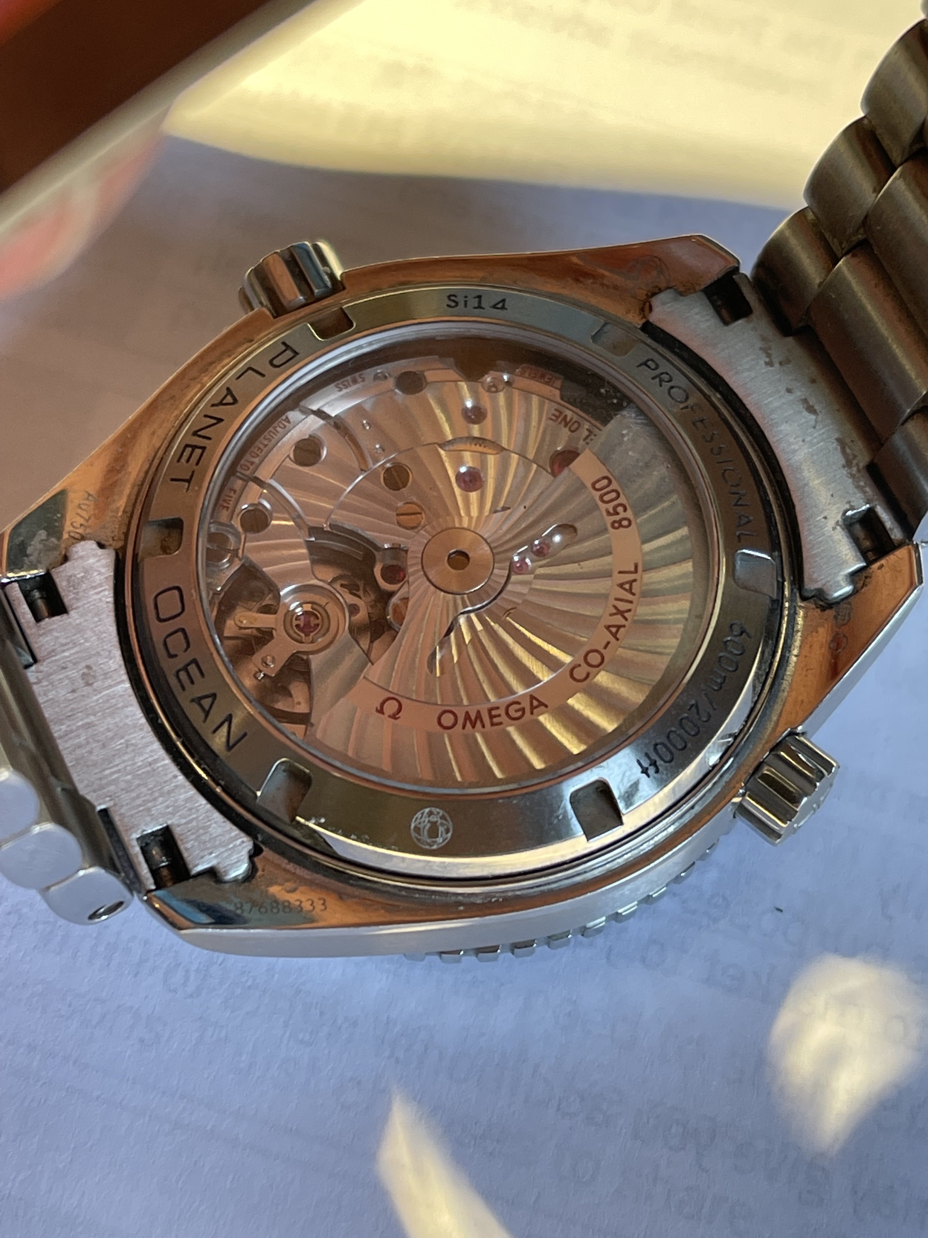 ·Purchased this Planet Ocean 8900 from a forum member with good feedback. No reason to believe it’s fake it came with box, paperwork, cards etc. Just wanted the peace of mind since it’s the most expensive watch I ever purchased. Everything seems pretty legit. Not sure if it’s my eyes or not but the square market above the 12 seems slightly off or tilted or something. Very slightly. Or “Seamaster” is crooked but maybe it’s the angle or the S. Could be the angle or reflection. Anyone see anything off? Or looks good. I can take pictures of the movement too.