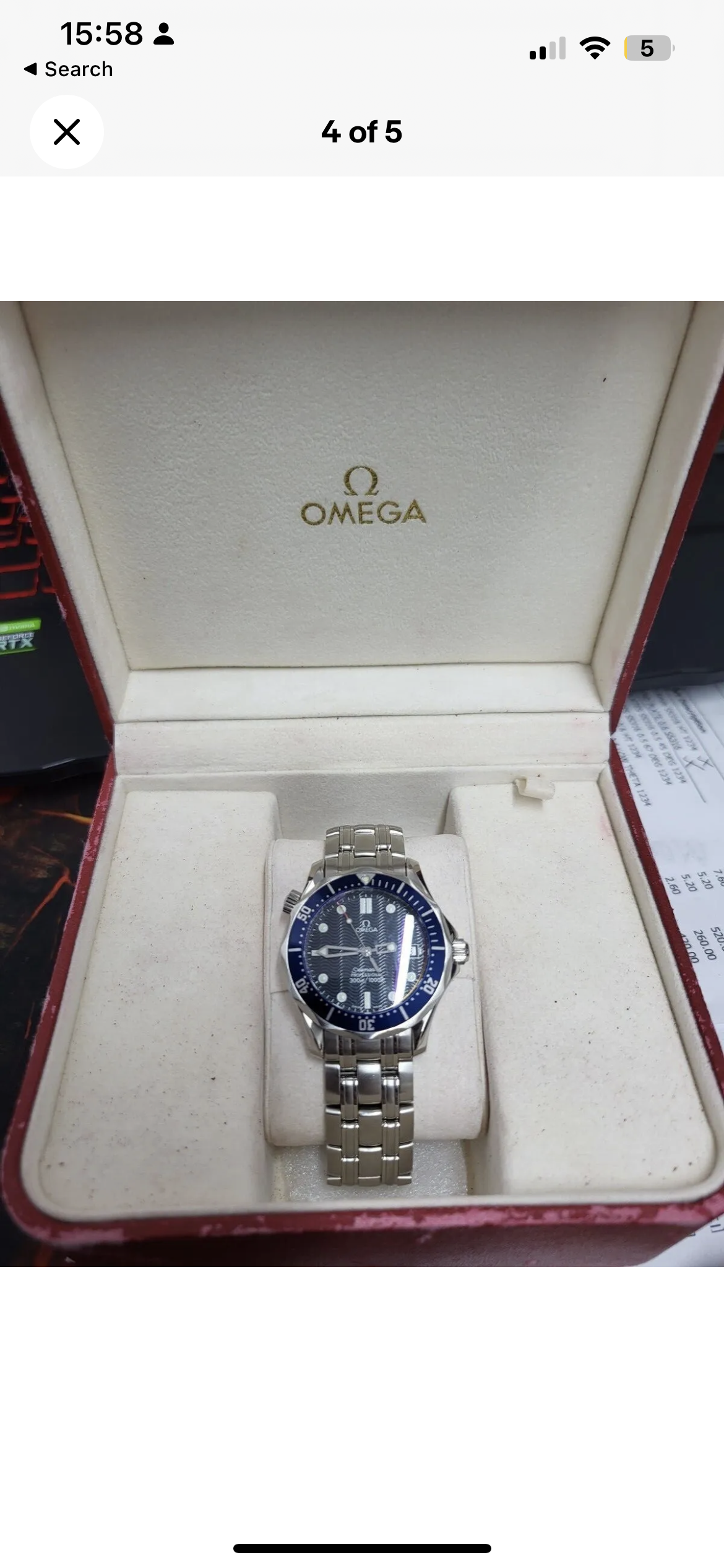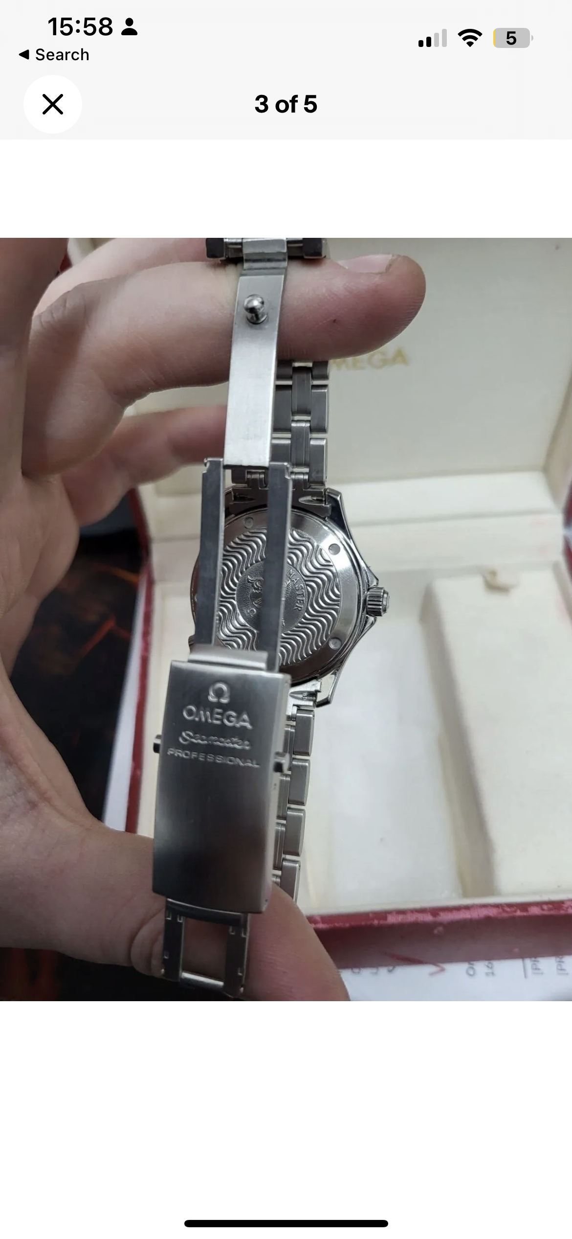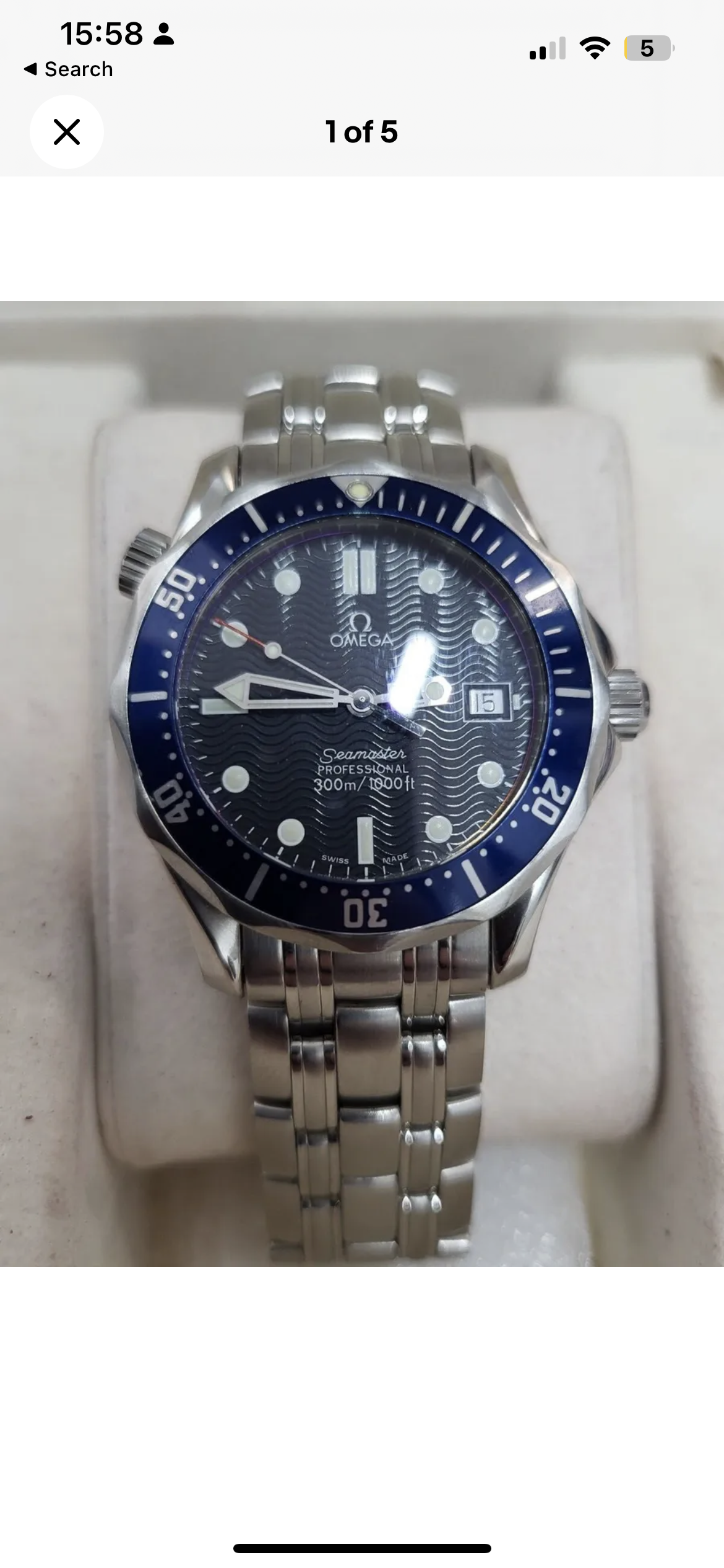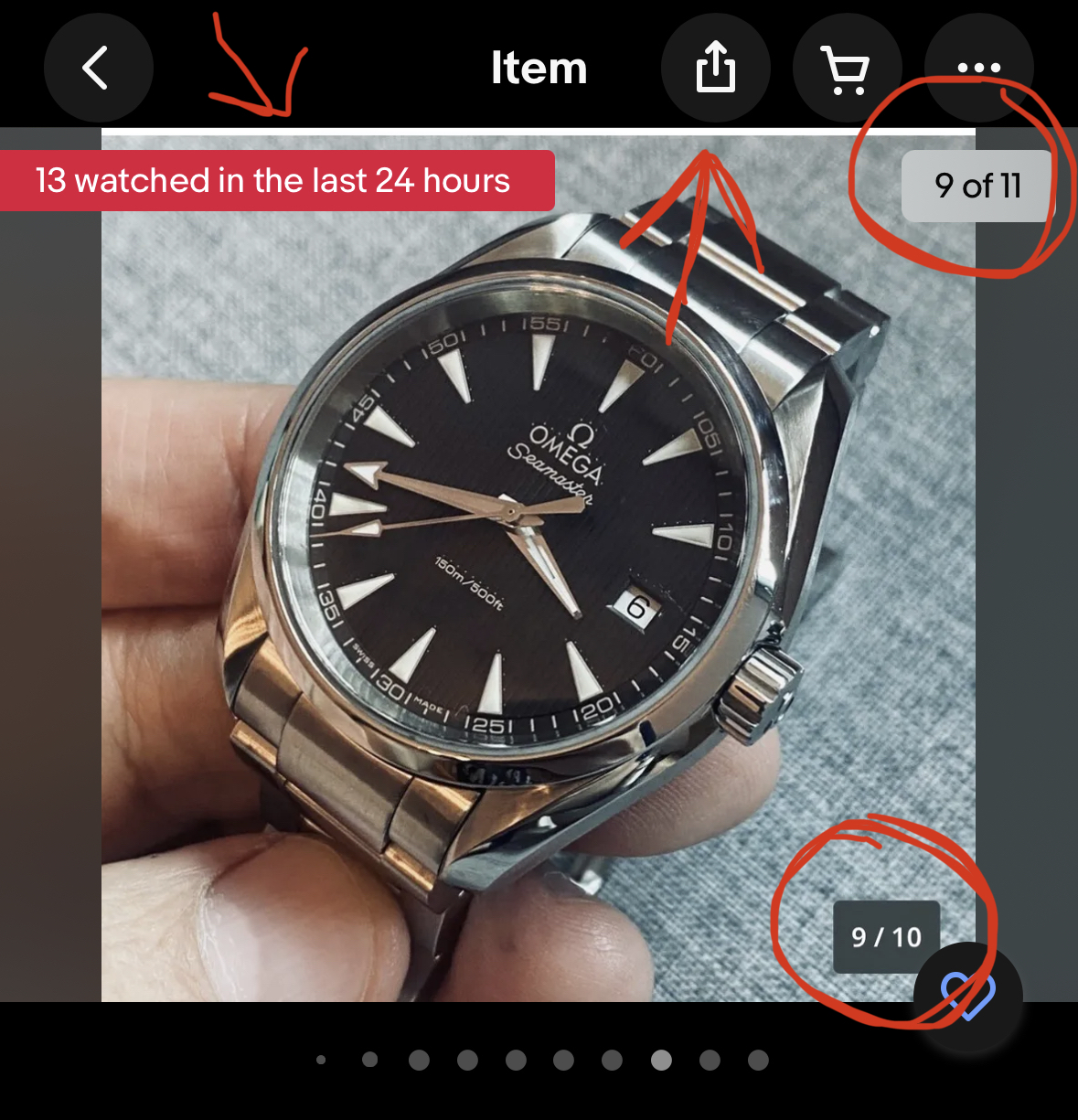 This looks like a real watch; however, these are stolen images- they are screenshots taken from somewhere else. There are 11 images on the eBay listing but each image has its own number, which counts to 10. A few of the images have a random white border of varying thickness that runs along the top edge of the image, which tells me it鈥檚 a screenshot and the person didn鈥檛 enough attention when cropping it. This is a hard pass from me.
