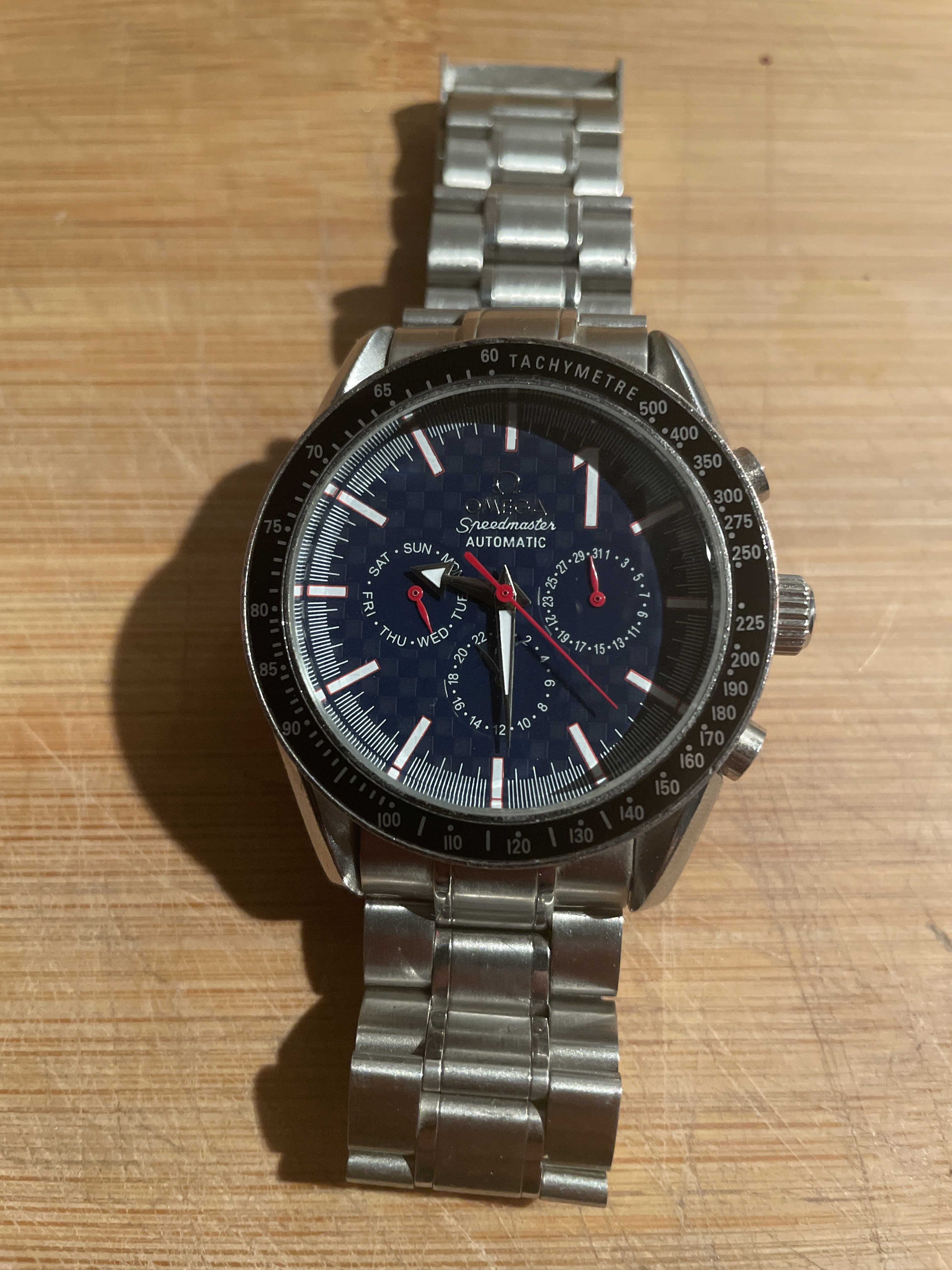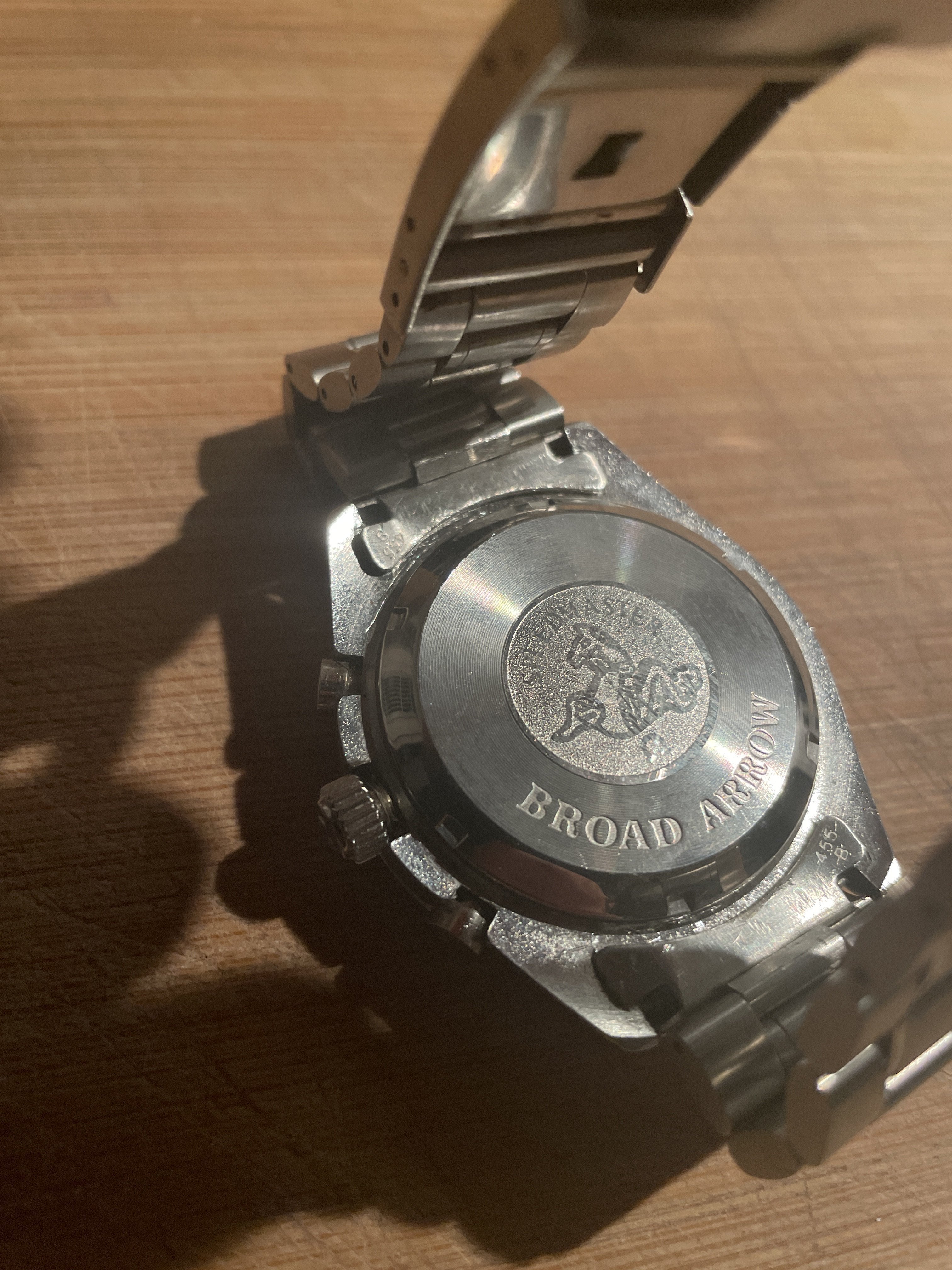We haven't scrutinized the case yet because 90% of the watch is a Chinese replica. Assumption is that it will also be fake.