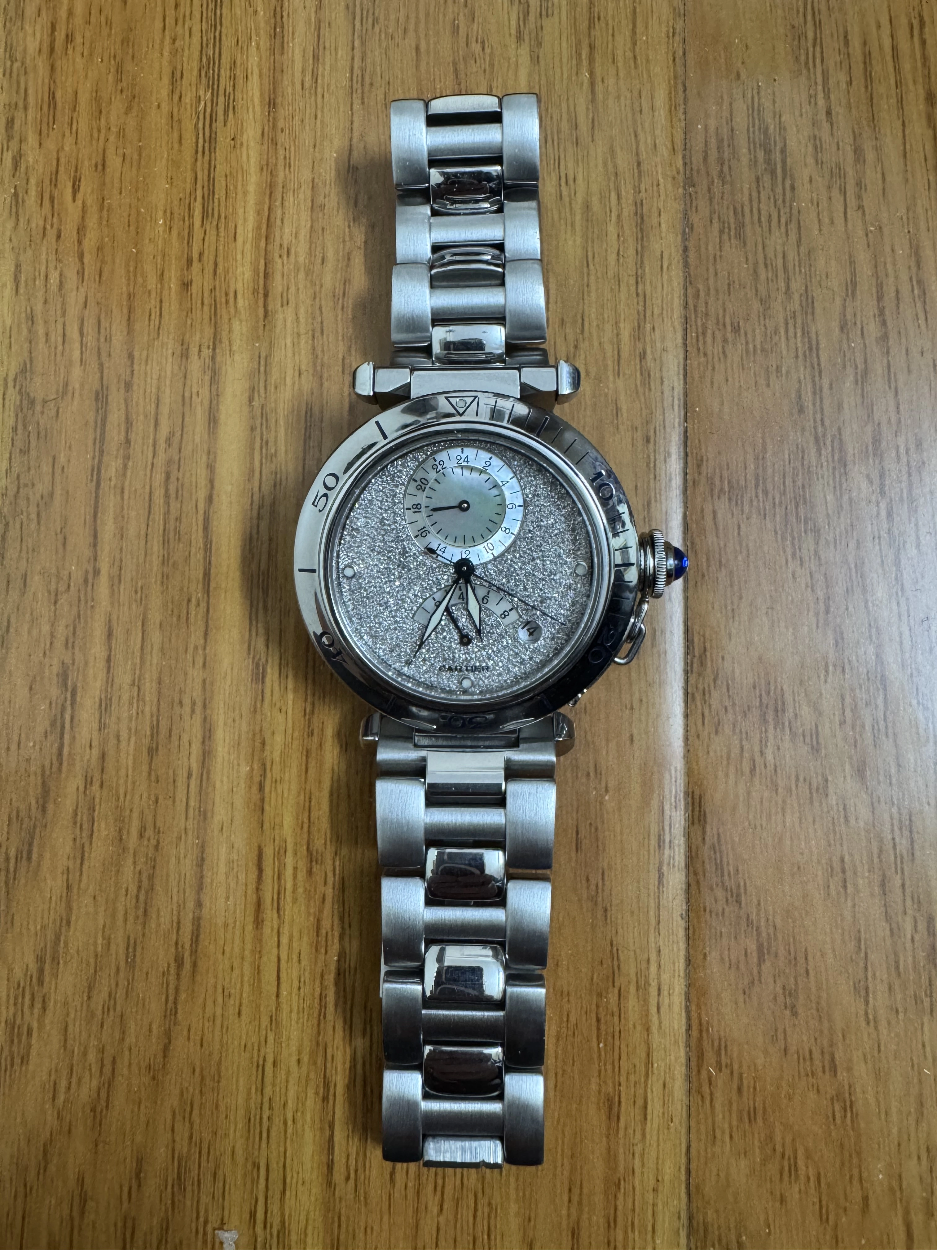 This a blue dial but silver bezel, not my favorite but I saw a pic with a blue band on the same style watch and liked it. Its a make offer, and comes with paper work, which I know helps if I ever want to sell it.
