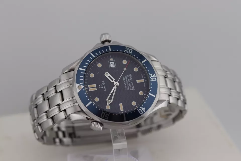 2k blue bond, I would recommend to stay away from it. Several things that I find rather alarming, and the funny thing is that the seller himself/herself have kindly provided a reference picture, where you can quite easily notice some things that are not right (however, reference picture is not fully accurate either, because it depicts the 36 mm version of the early Omega Seamaster 300m "Bond", and not the 41 mm version, which is listed.