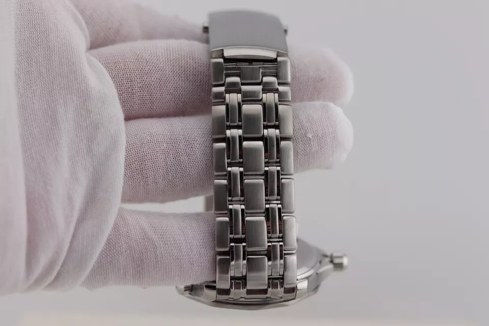 Number four. The bracelet end-links are replacements, they are different from original parts, and look uglier than originals. Originals have also part identification numbers on them. And additionally they raise more questions about the whole watch case, because, as far as I can see from the pictures, these end-links might not even fit the original case of the watch, because it seems to me that pin-holes for springbars on this case are positioned differently than on geniune case. To be honest, bracelet itself also looks suspicious, not as neat as it should be, but pictures are not good enough to say it with certainty.