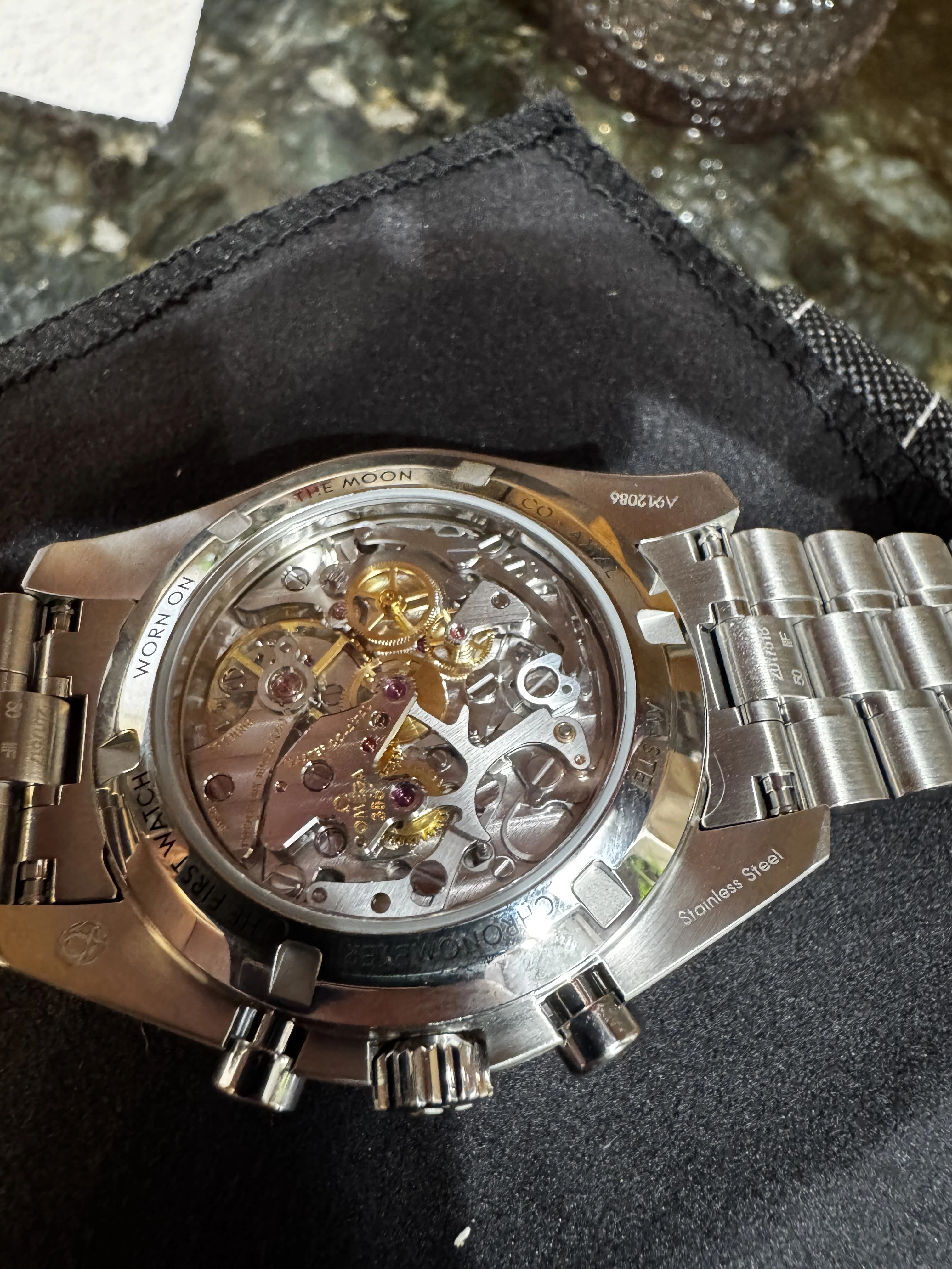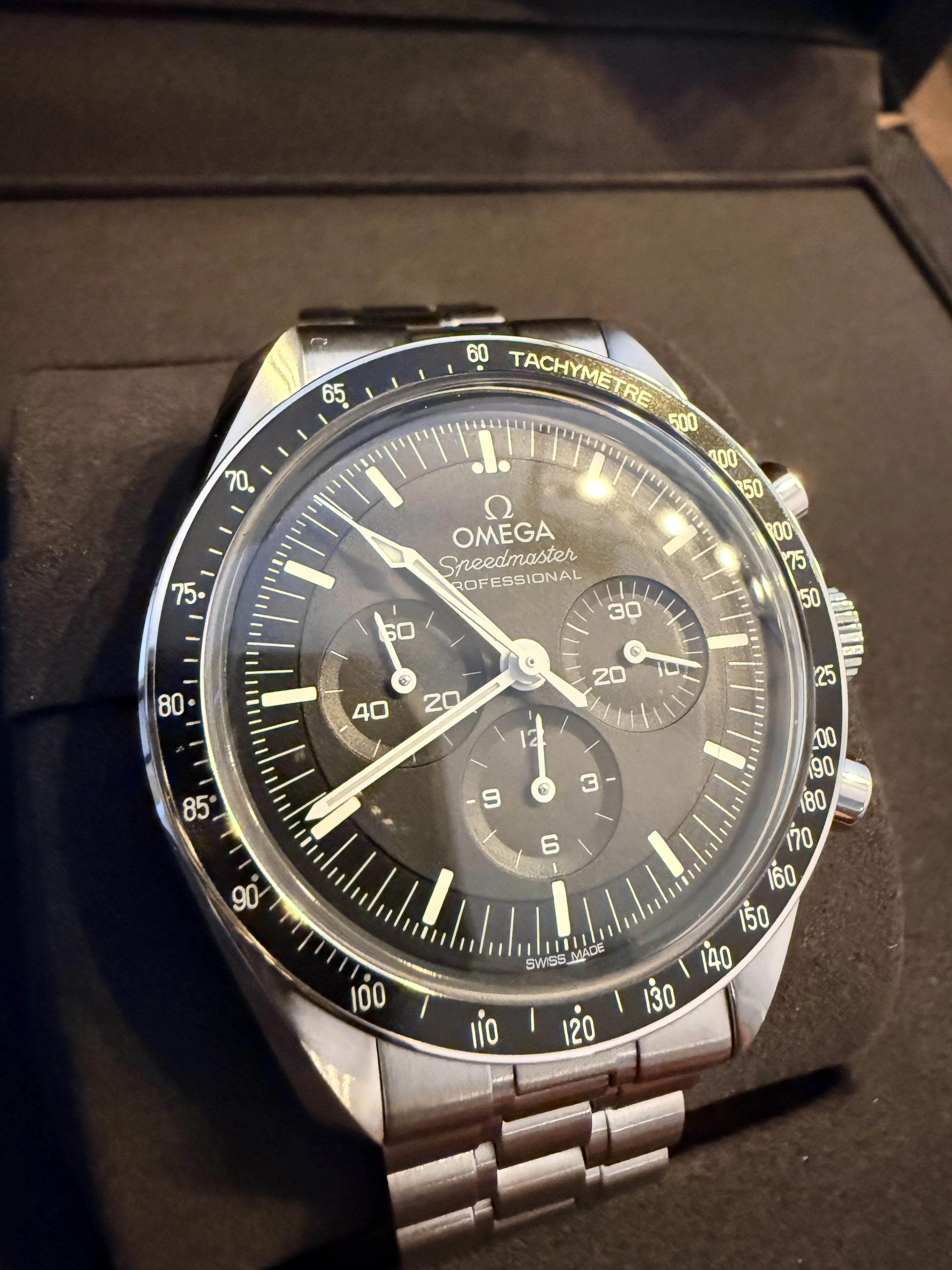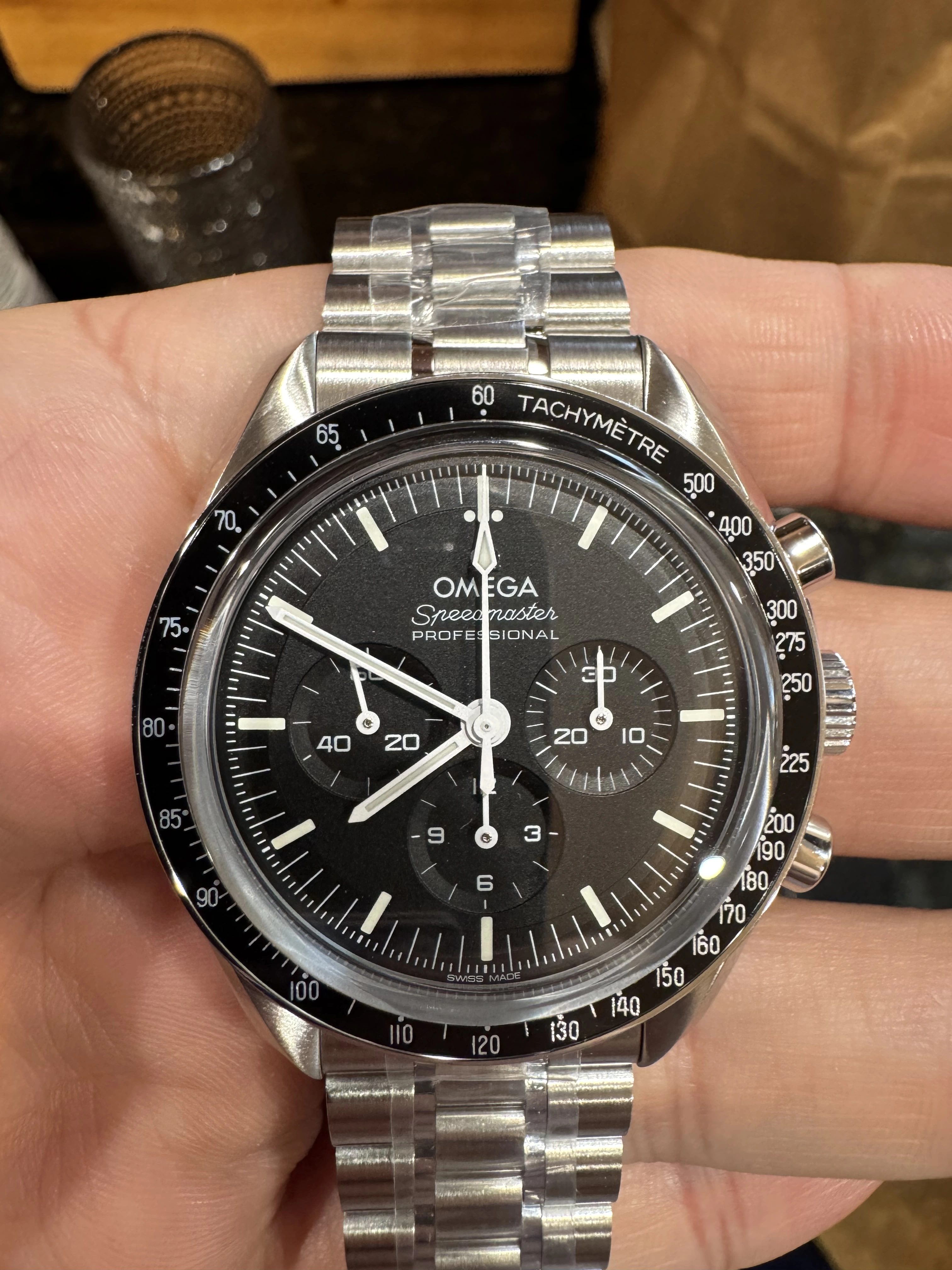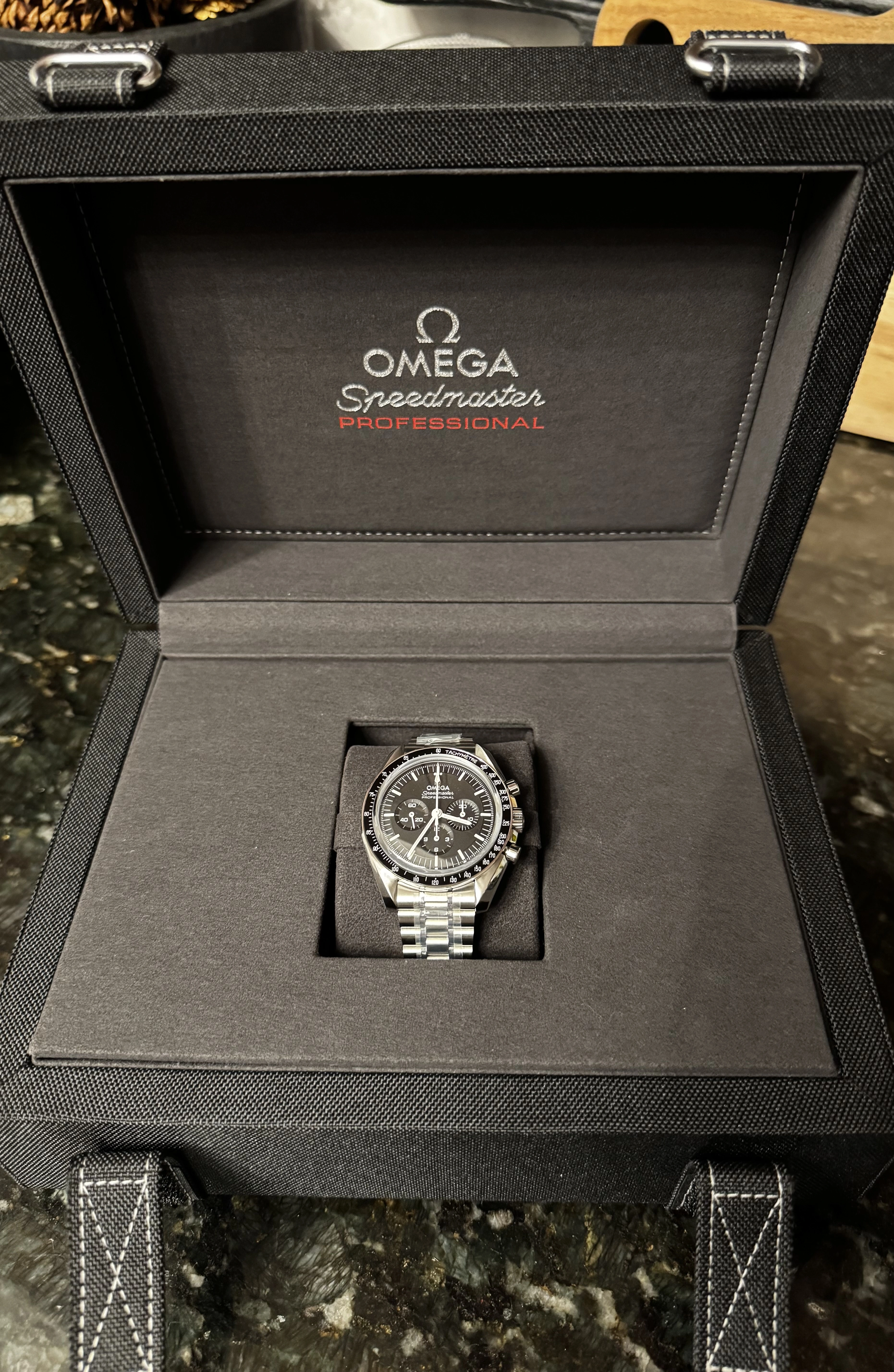Hello everyone. Was gifted this Omega SpeedMaster 310.30.42.50.01.002 from my father-in-law as a wedding present. He bought it off chrono24 and came with box, papers and the plastic on the watch.