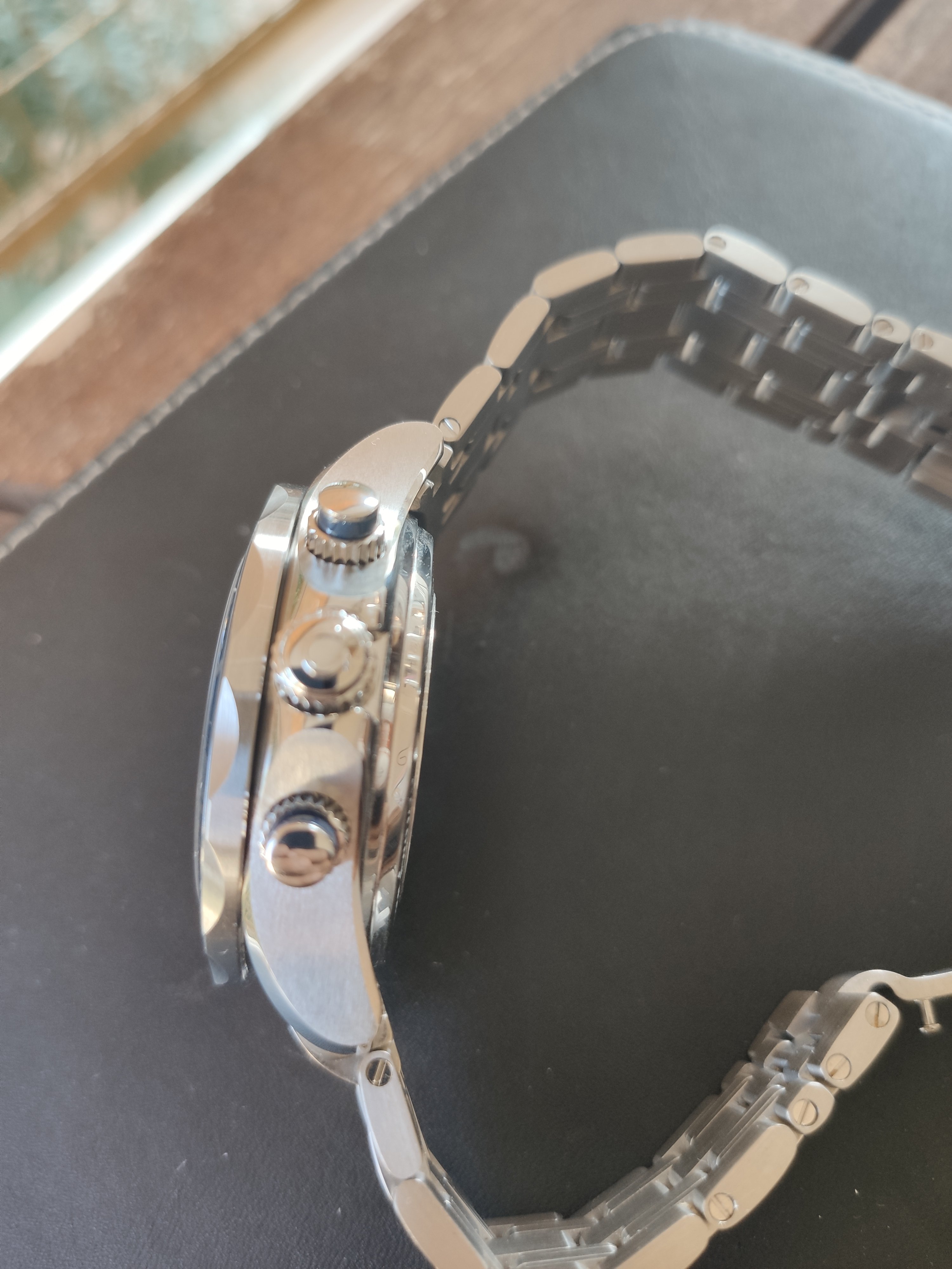 I'm looking to verify a potentially rash purchase from the bay. In keeping with usual standards, the watch has neither papers or box. However, on receiving the watch, it looks and feels genuine.