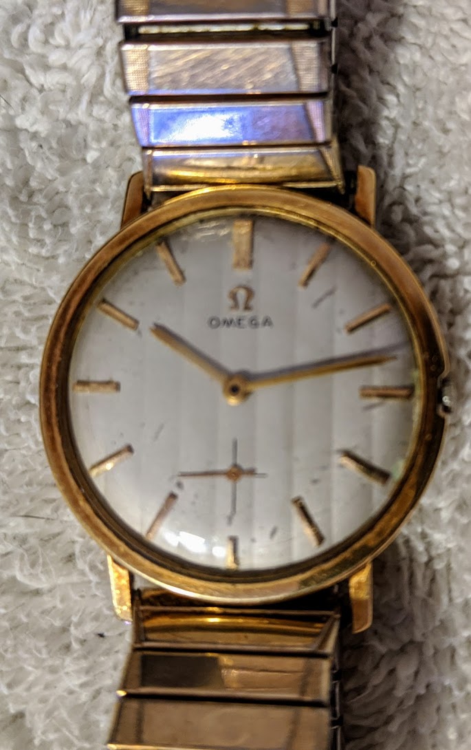 I have a watch that was given to me years ago - would anyone be able to tell me anything about it? I've tried to search around a little and it looks similar to some Omegas I've seen from the 50s. I don't have any idea how to get it open to check the inside.