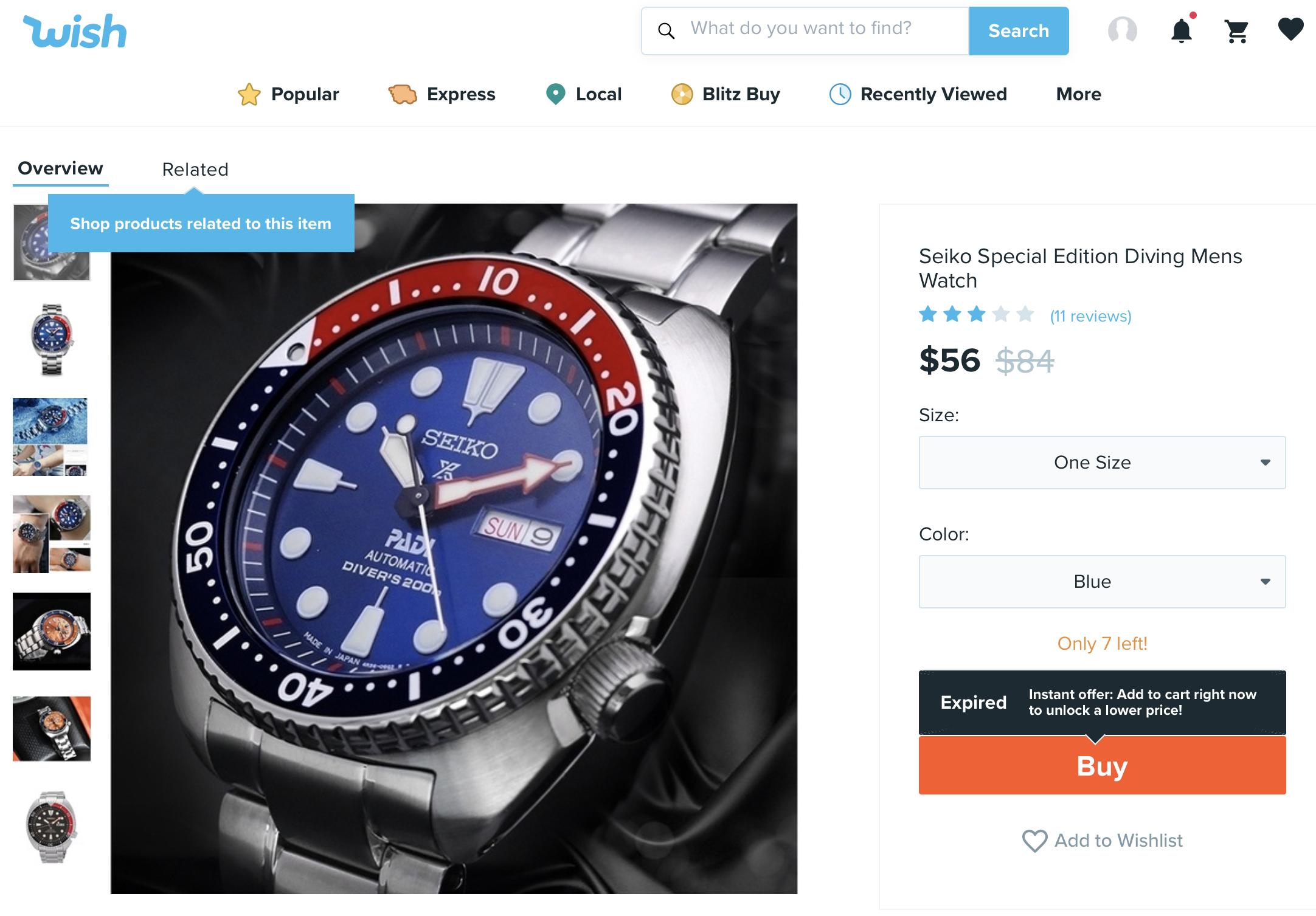 Don't fall for this on wish.com - nothing on the watch is genuine, inside or out.