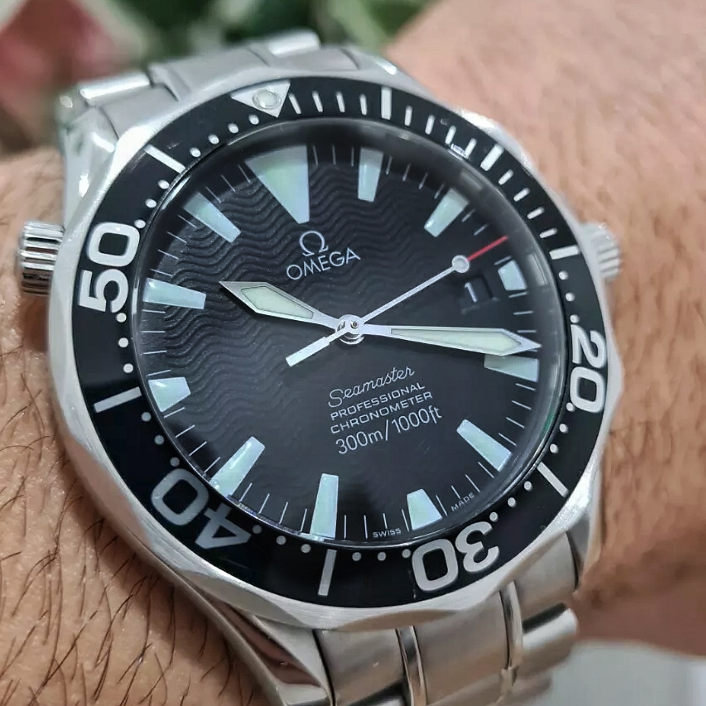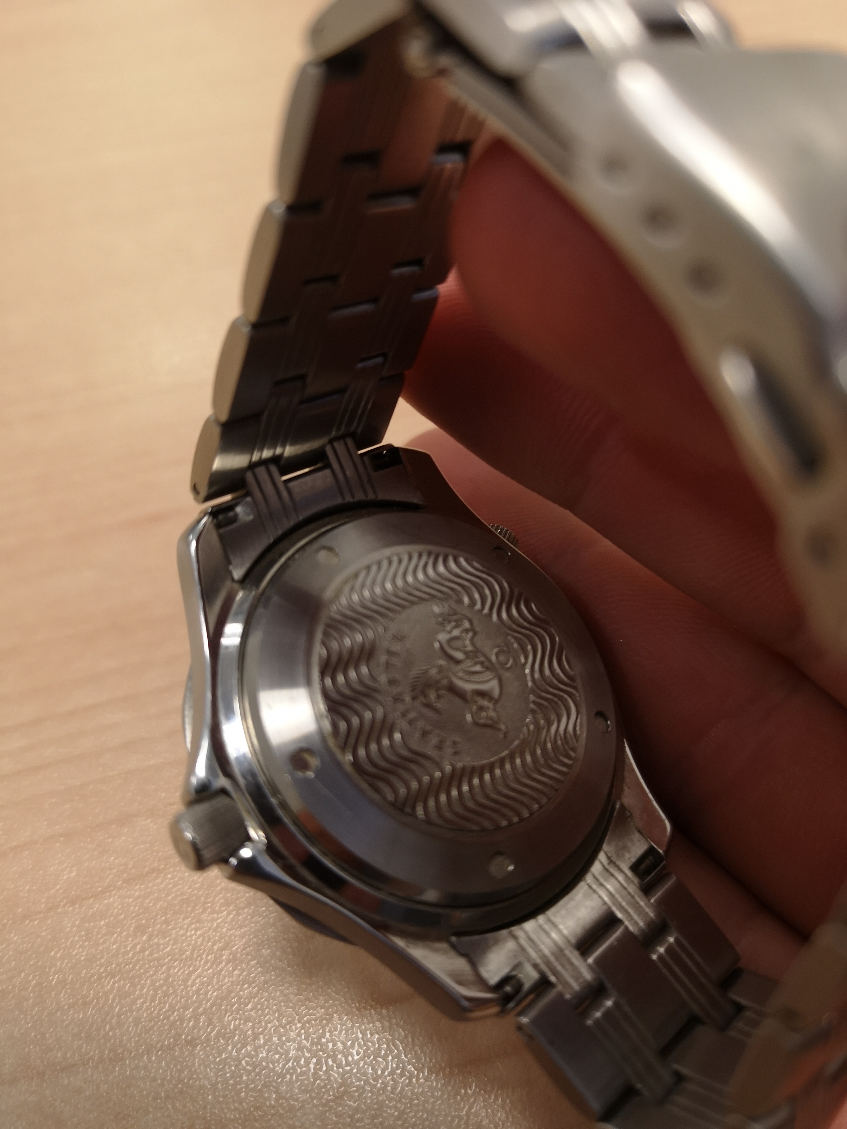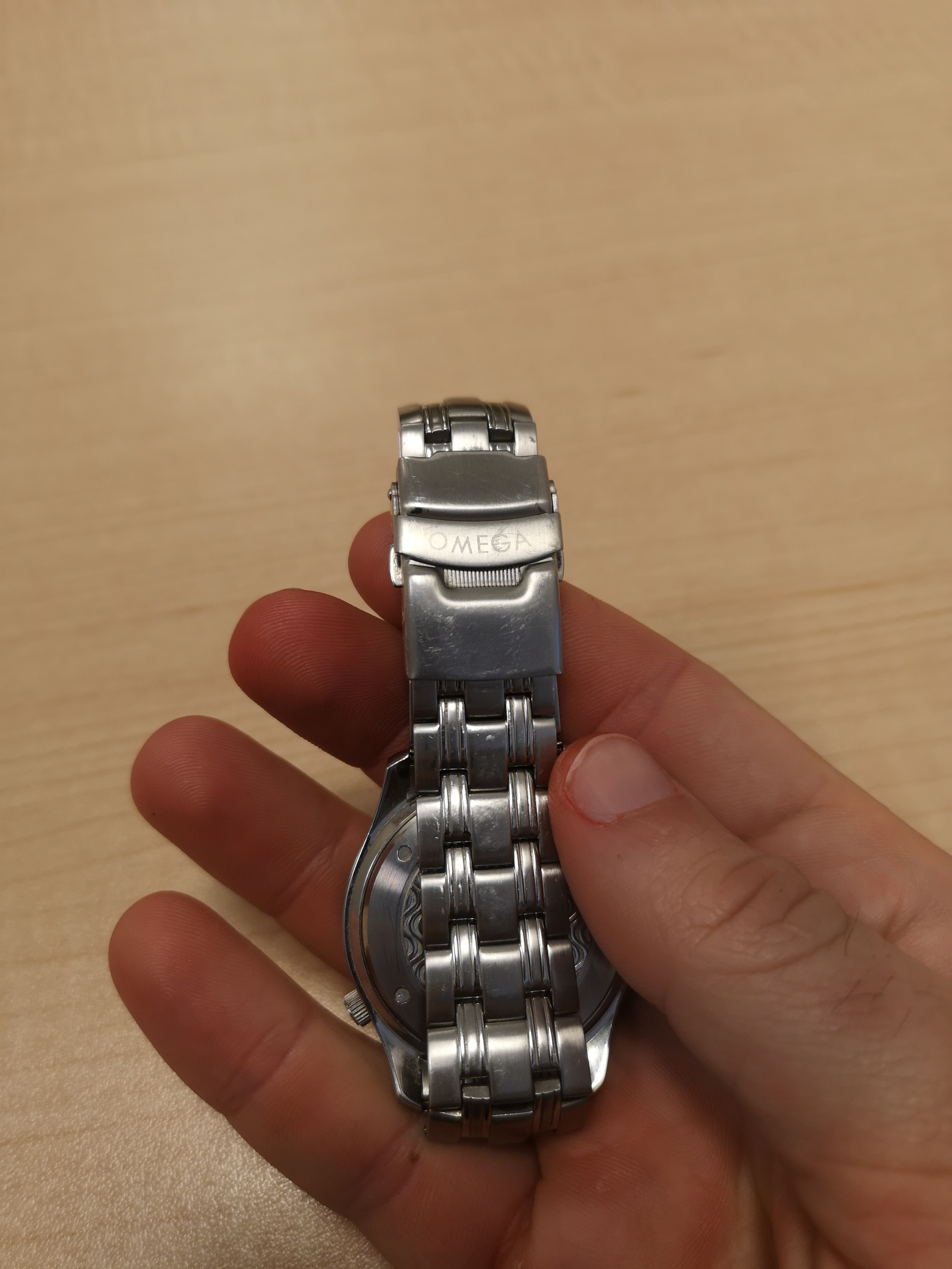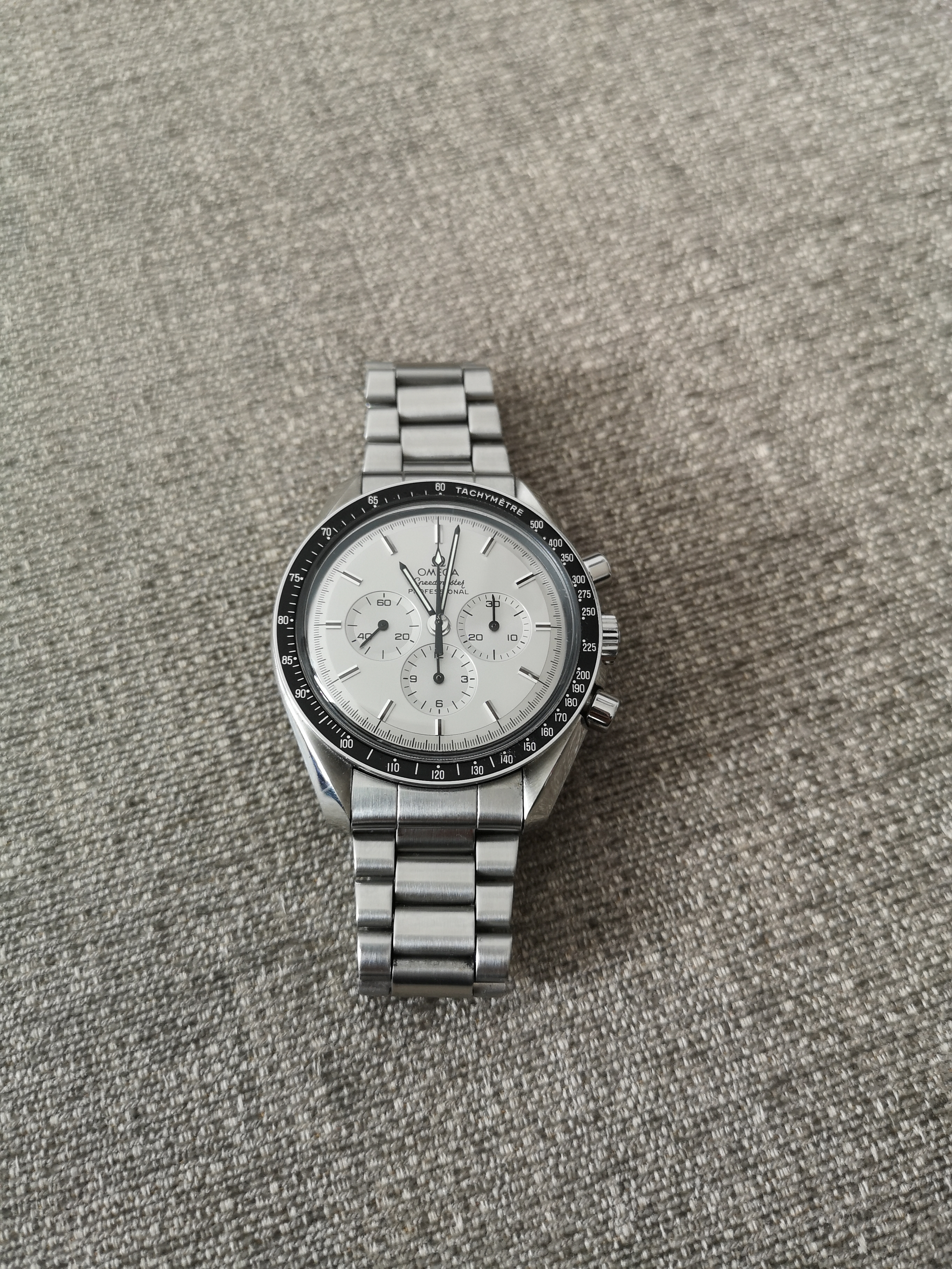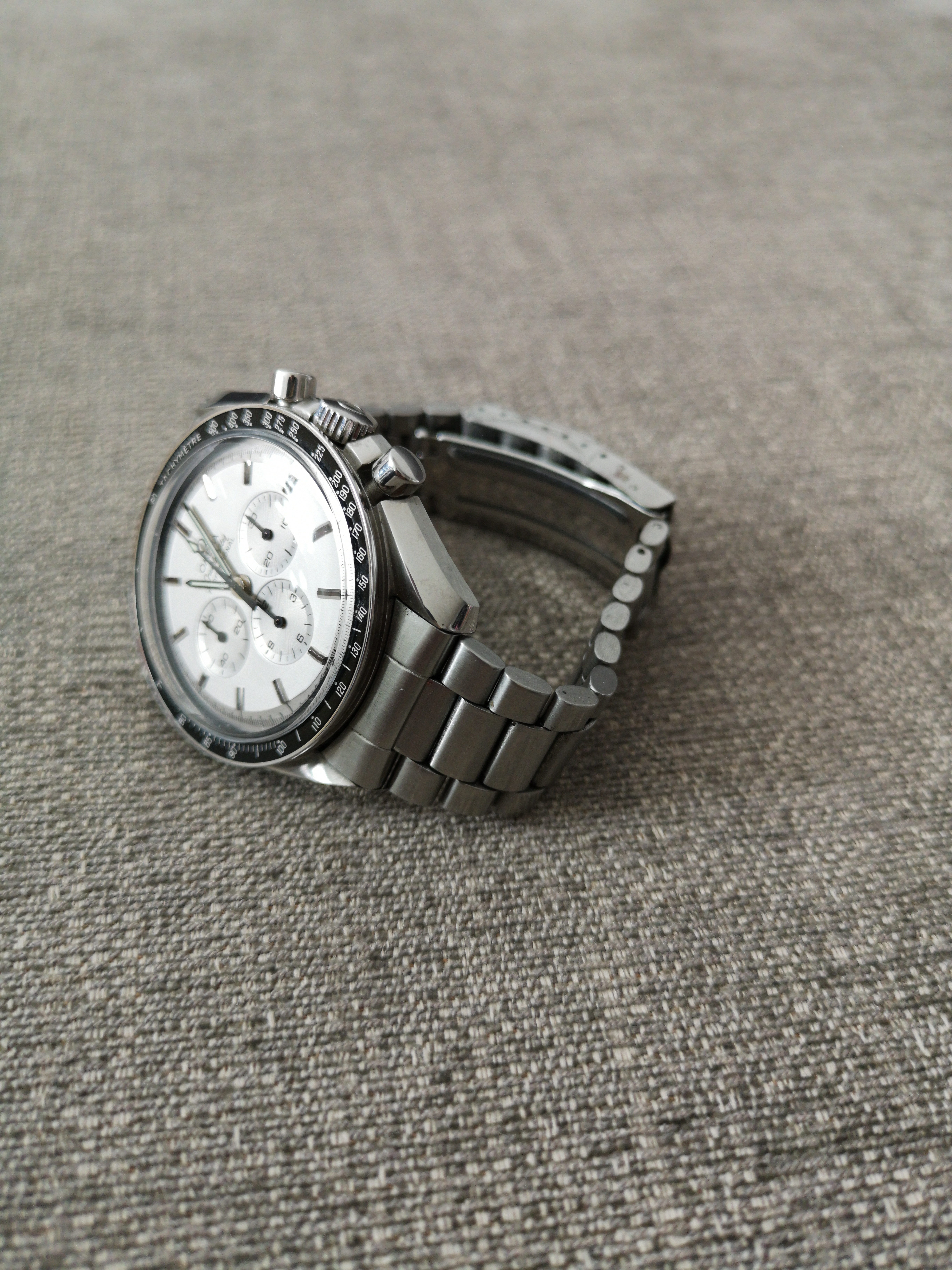 This nightmareish thing popped up in an ebay email alert earlier for a Buy It Now £200 + £5 postage. Even I know that this one is all over the place. It was listed as a 'broken omega watch'. Somebody snapped it up pretty quickly as it is now showing as sold. The caseback says Broad Arrow on it but the hands are baton hands. The bracelet clasp says Seamaster Professional on a Speedy. The numbers on the bezel change orientation half way round and the lume blob to the left of the 3 at the top of the dial is off centre. Seller also mentions that the battery may just need changing! Nasty...