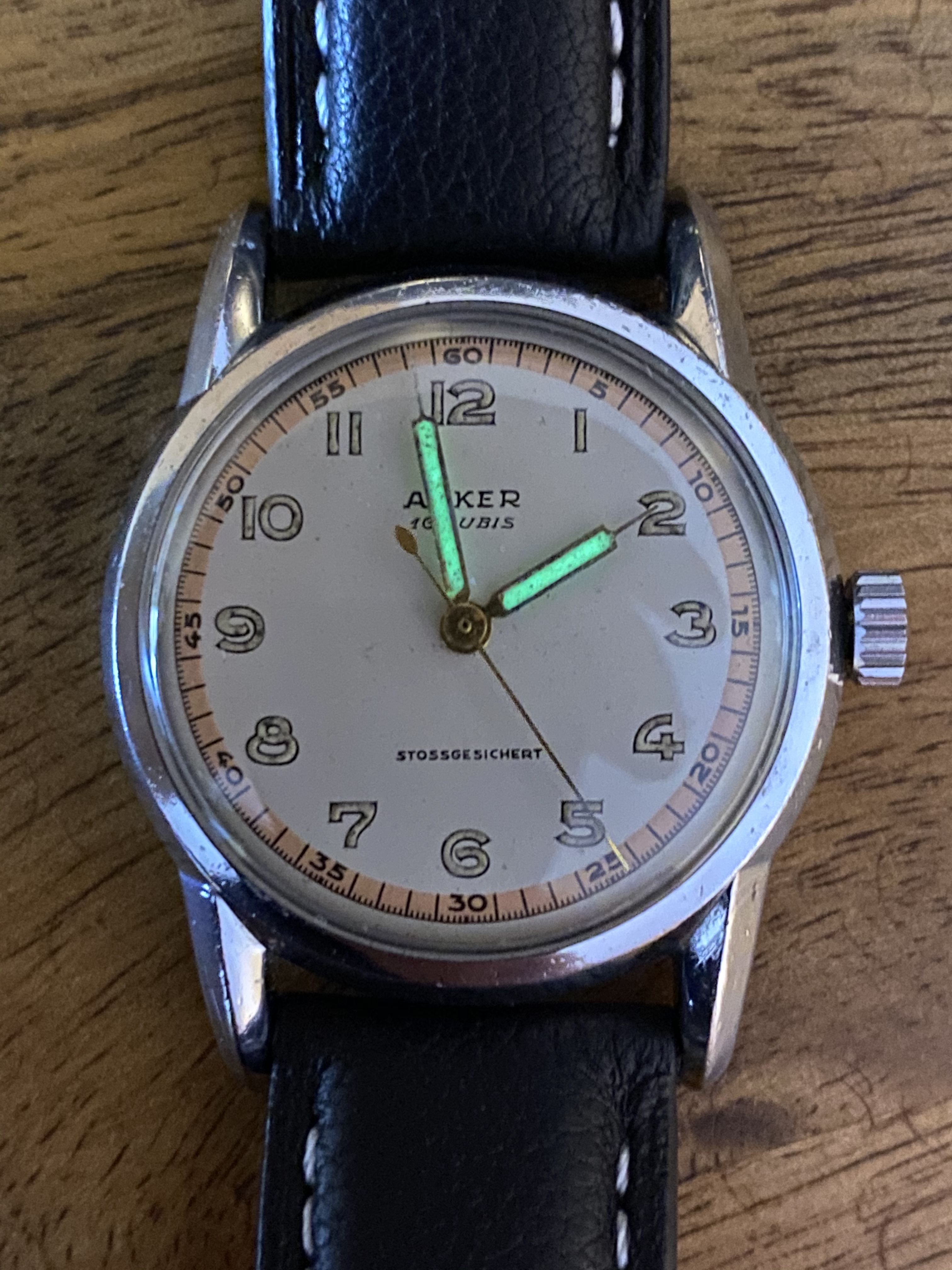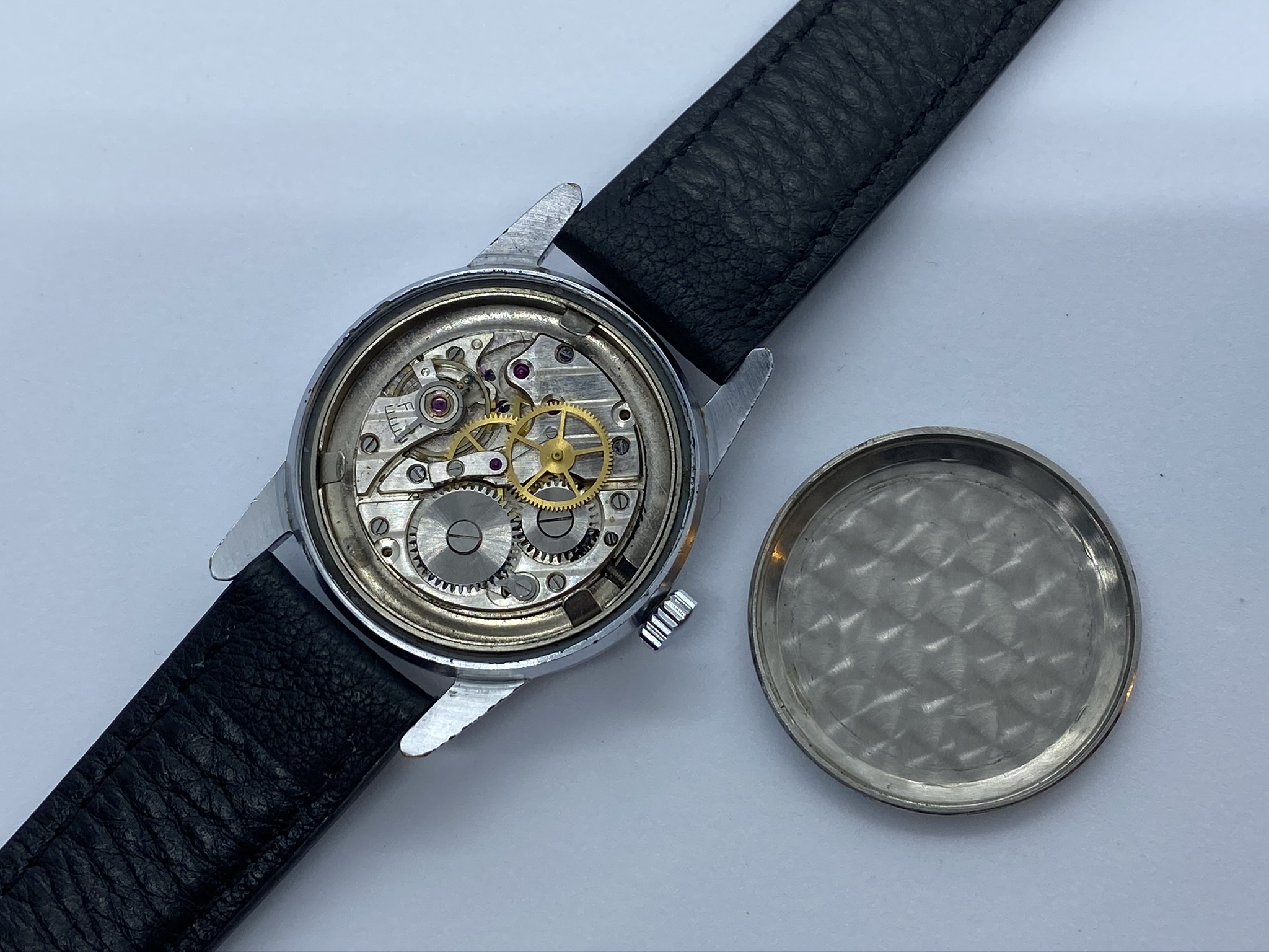 I do wonder, though, whether "Secondo-Meter" shows just a little lack of ambition, whether in the design or the marketing department. Nice caseback though - something similar can be seen on a Rodania thread here I recall. Patina for those who like it, and GP case not too damaged.