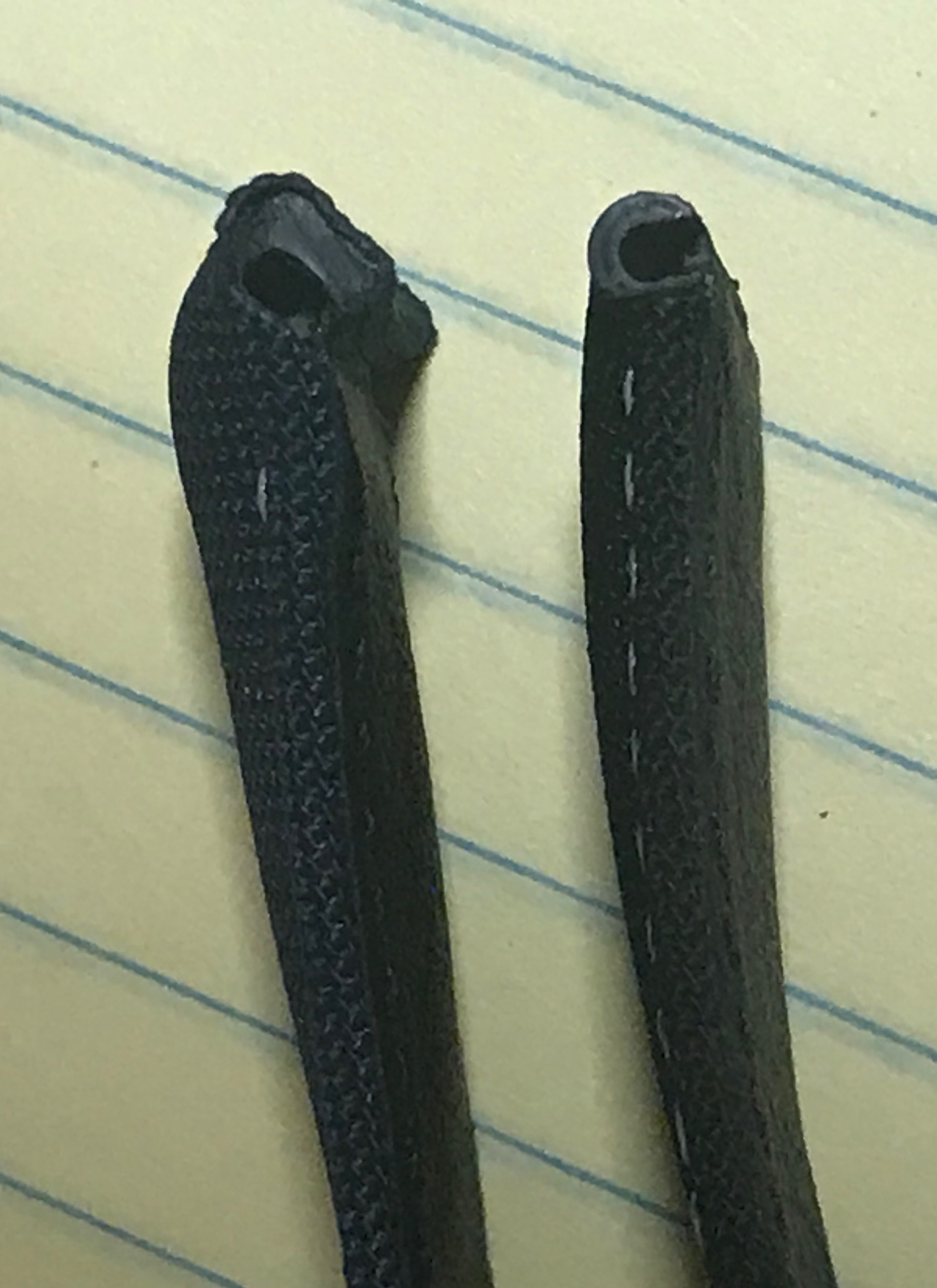 I contacted JR and placed the order over e-mail as knew of other people which had ordered the black Snoopy (which they do for Omega under reference CWZ003436) as well as other colors of the Cordura (for example, black cordura with orange stitches for the Speedmaster Ultraman). They made for the Planet Ocean a band very similar to mine (Omega reference is CWZ005345) but it has more bulge at the lugs than mine, which follows the same profile of the Snoopy band. Below you will find a picture of the CWZ005345 (left) besides the Snoopy (CWZ003436) so you can see the difference: