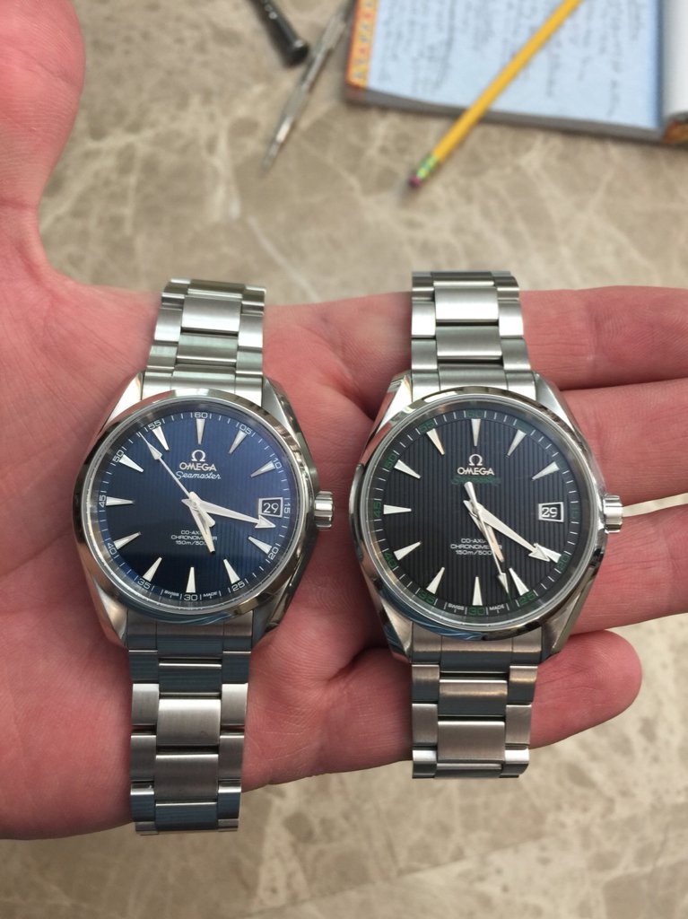 Thanks Jeelan! Yes I owned at the same time the first edition of the 41.5 MM Aqua Terra Golf and the 38.5 MM Skyfall. As you said they share the same movement so thickness is the same. I basically replaced the 41.5 MM AT Golf with the 38.5 MM Skyfall as felt the Golf was too big for my taste on my wrist: