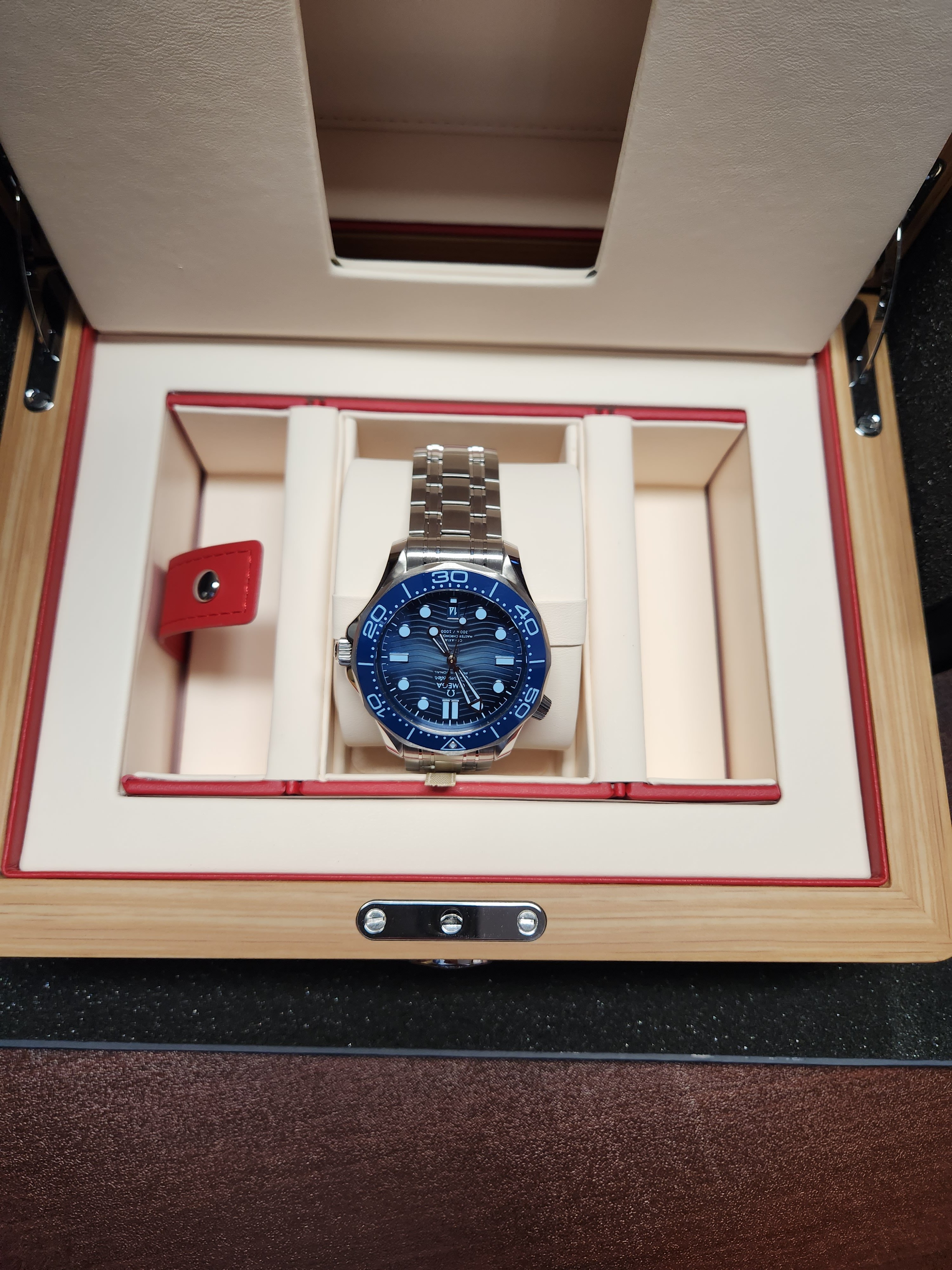 Here's a few pictures of the watch and its presentation. The last wrist shot was an attempted lume shot but my phone kept correcting the brightness - that's why it looks so odd.