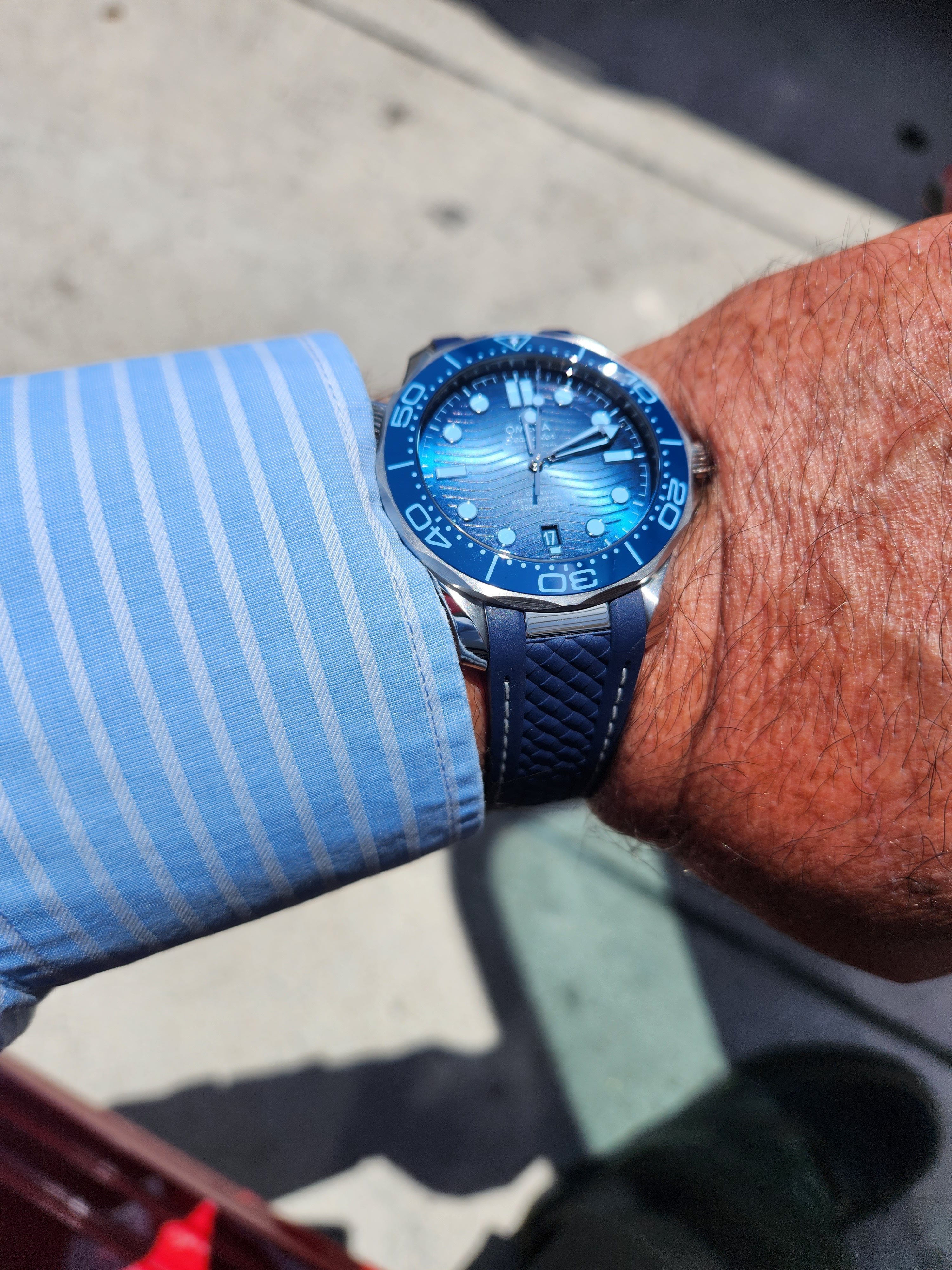 The only thing I can criticize at the moment is how the bracelet folds at a sharp angle from the end link. Still, I'm very happy with my acquisition. Not a big deal, but it's the first to be handed to a customer here in San Diego.