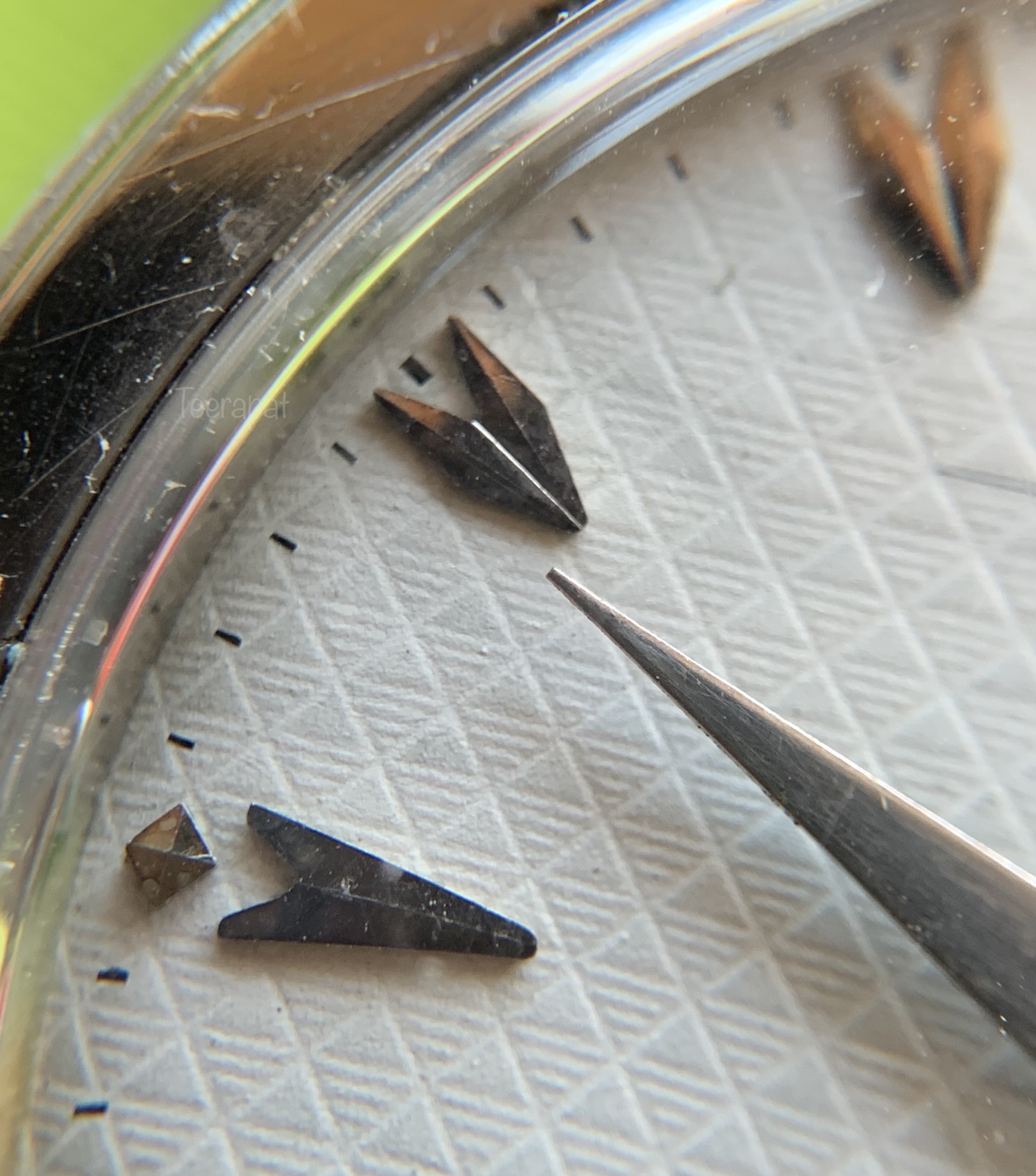 - The nonluminous hour-markers were original which I have never seen them before, but some expert mentioned that he has seen before but on a plain dial or another expert found in the constellation model. I've tried my best for searching in google, plus in this forums but I couldn't find any example.