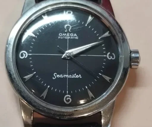 Came across this thread because I noticed what I believe to be a non-traditional S in Seamaster for the period of approx. 1947-1950. Not quite a coat hanger. Owner claimed he had owned it for 30 years and never touched the dial and I just assumed that prior to his purchase, touching up an Omega was probably not as common as is it today. But I've also never seen arabic numerals sideways on old Omegas. Is this a repainted dial?