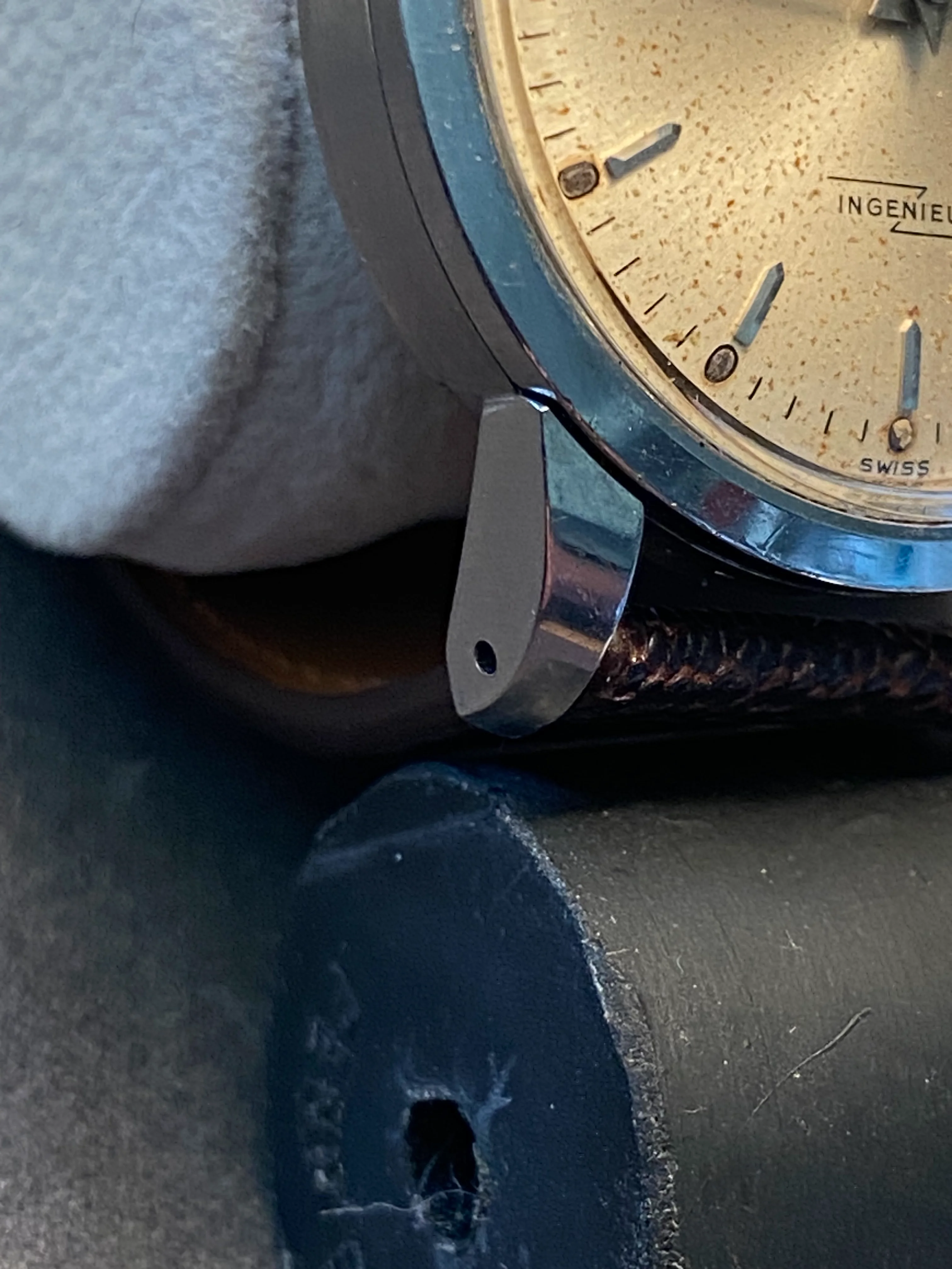 The soft iron dials on these are prone to rust, as is the case here. Only this dial has (to my eye) a very pleasing and homogenous freckled appearance. The even spread of tiny brown micro-dots is something I've always enjoyed about this piece.