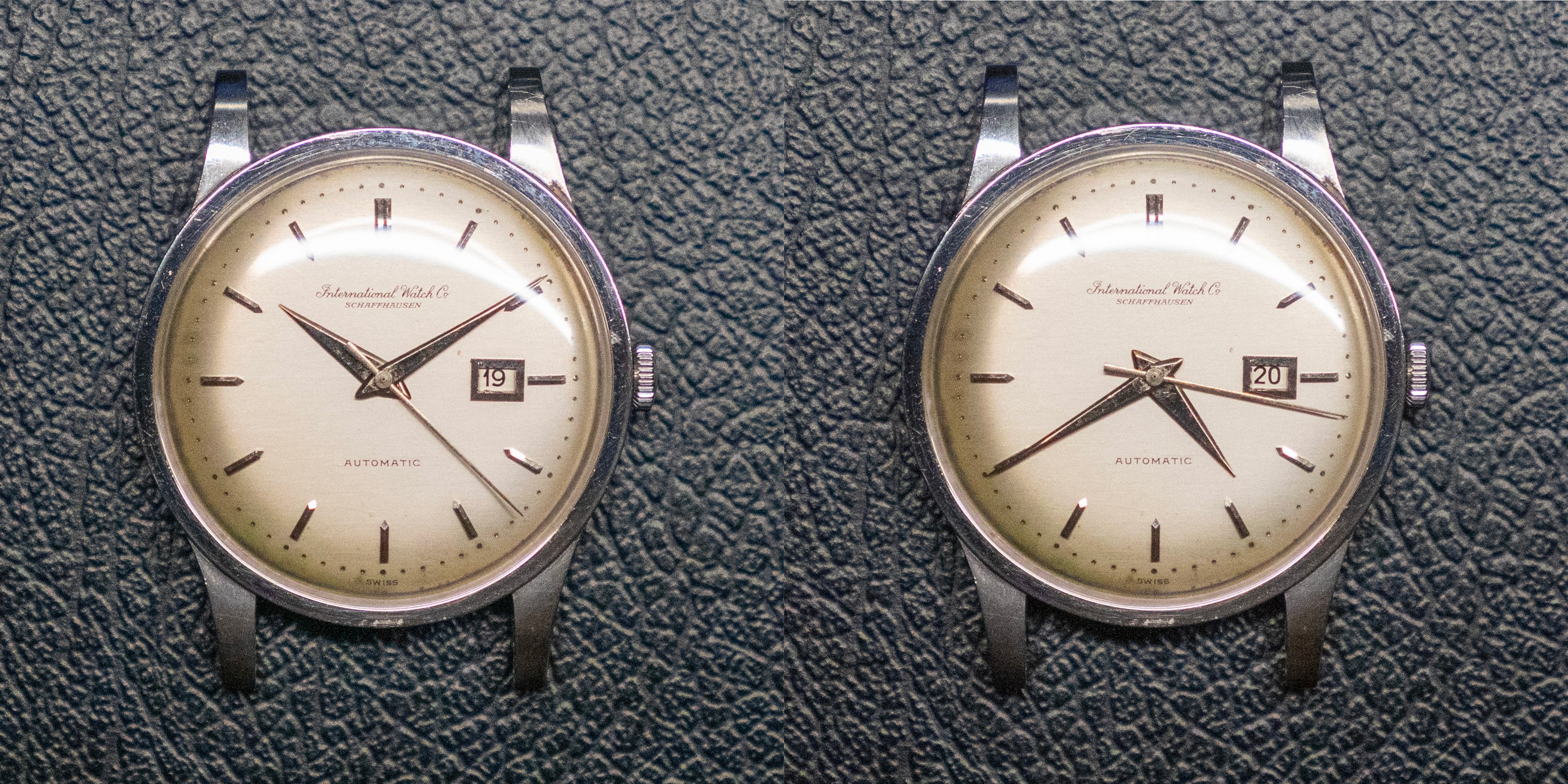 The dial has some stains from moisture on the outline and a few spots here and there (near the date window).