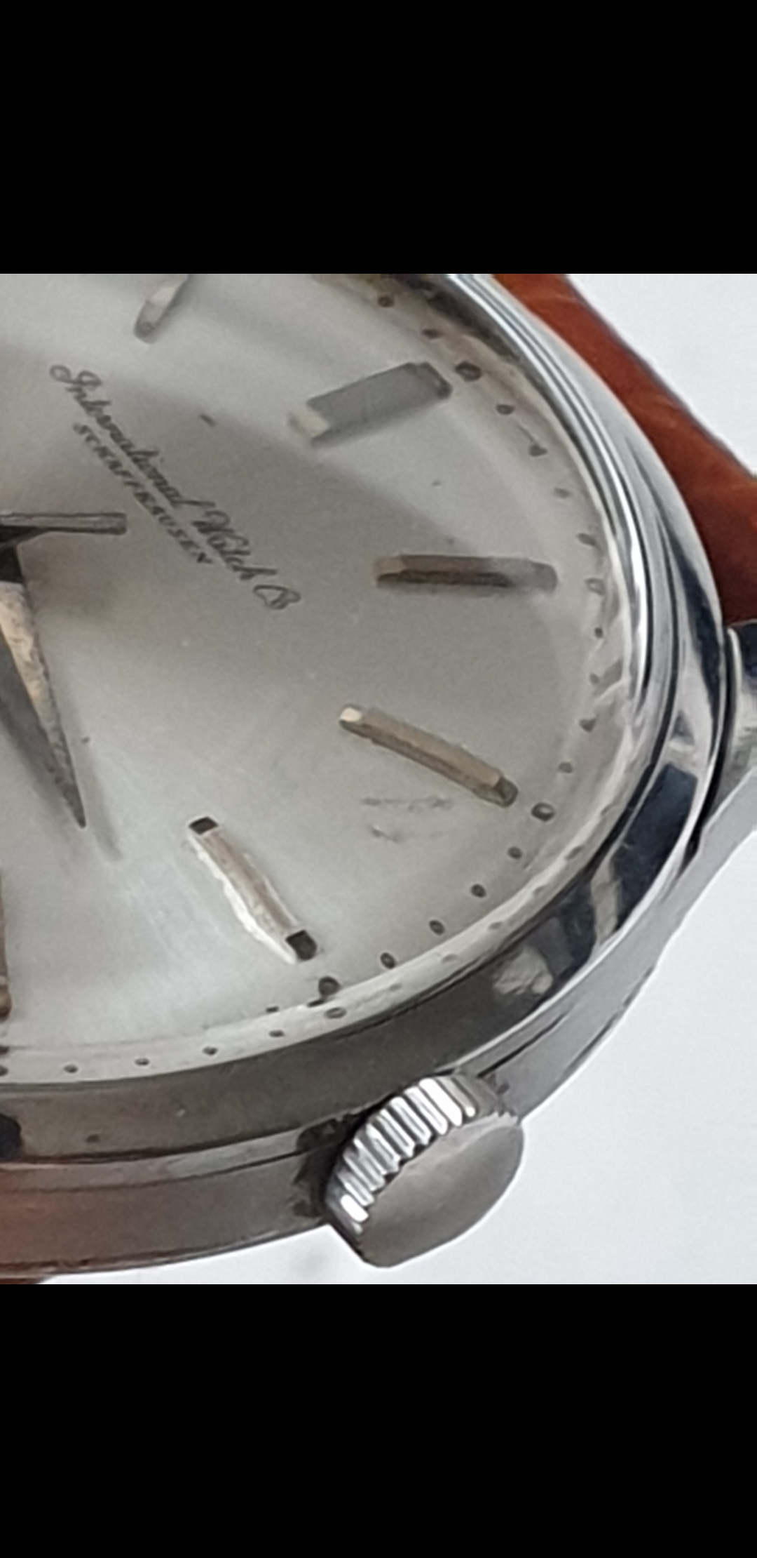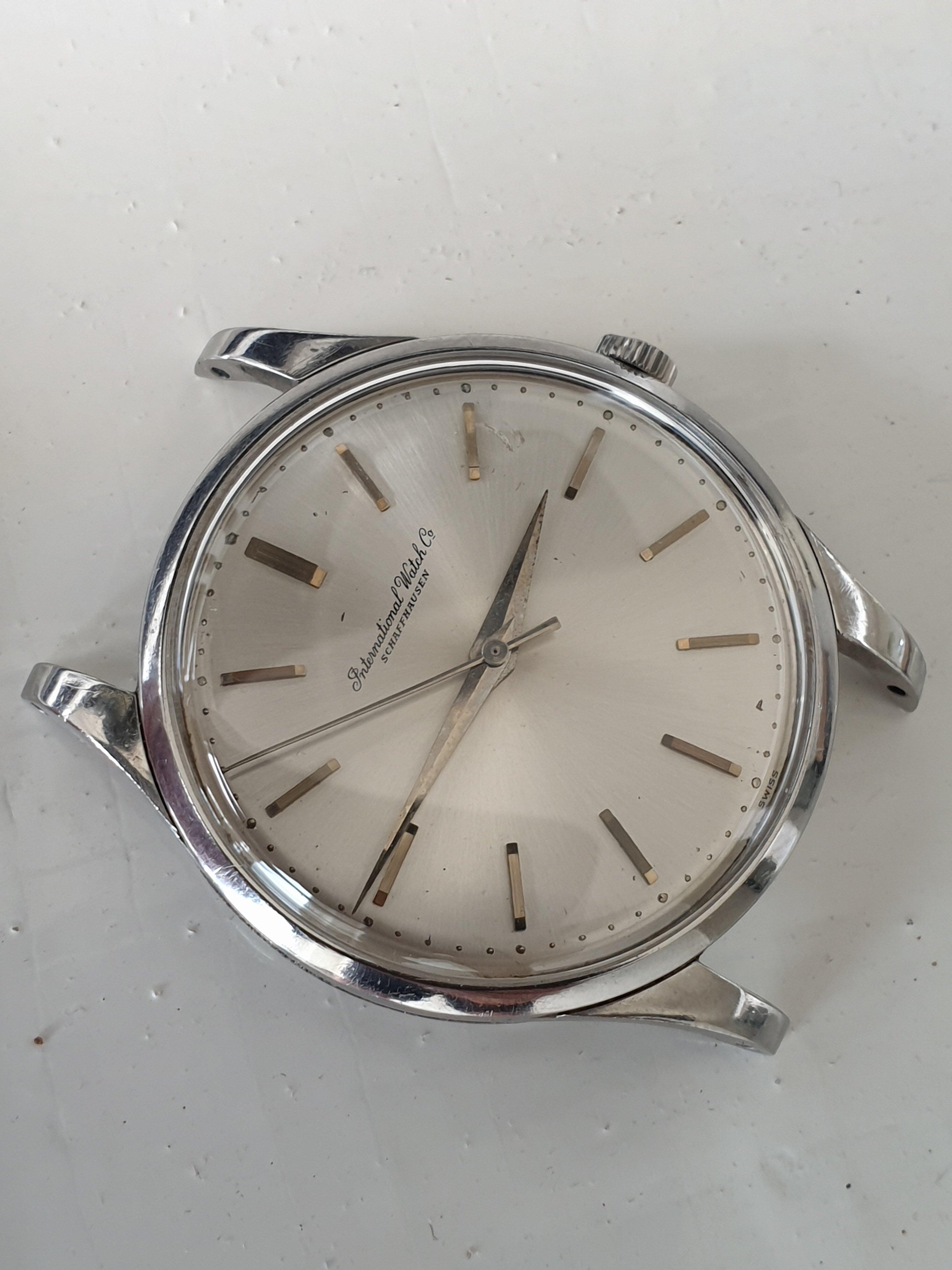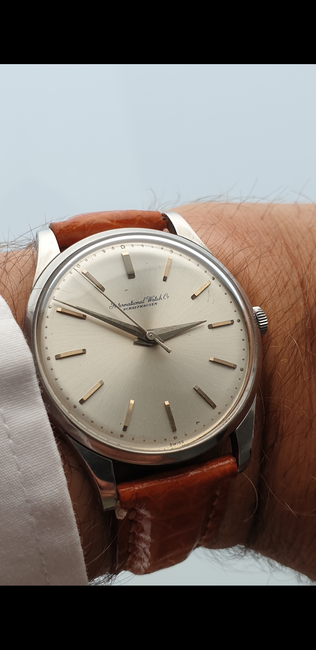 This particular IWC in stainless steel is a good entry level into IWC. The 35mm case (without crown) is in good condition showing some light wear from use. The unsigned crown is original and era correct for the watch. The crystal remains in excellent condition showing no crazing. The lovely sunburst dial is in excellent condition. The original stainless steel dauphine style hands complete the overall stylistic presence of the watch. Lug width 18mm.
