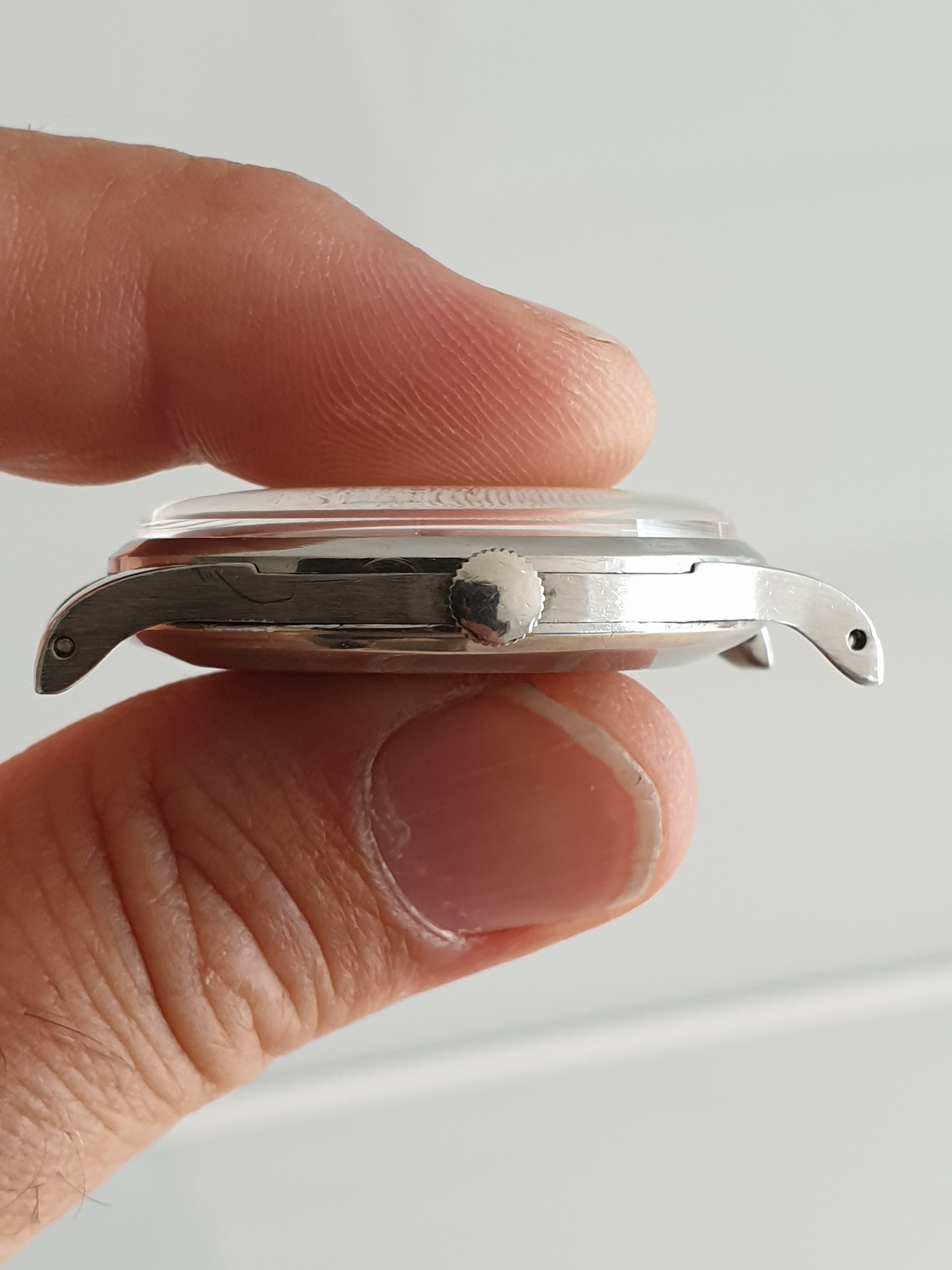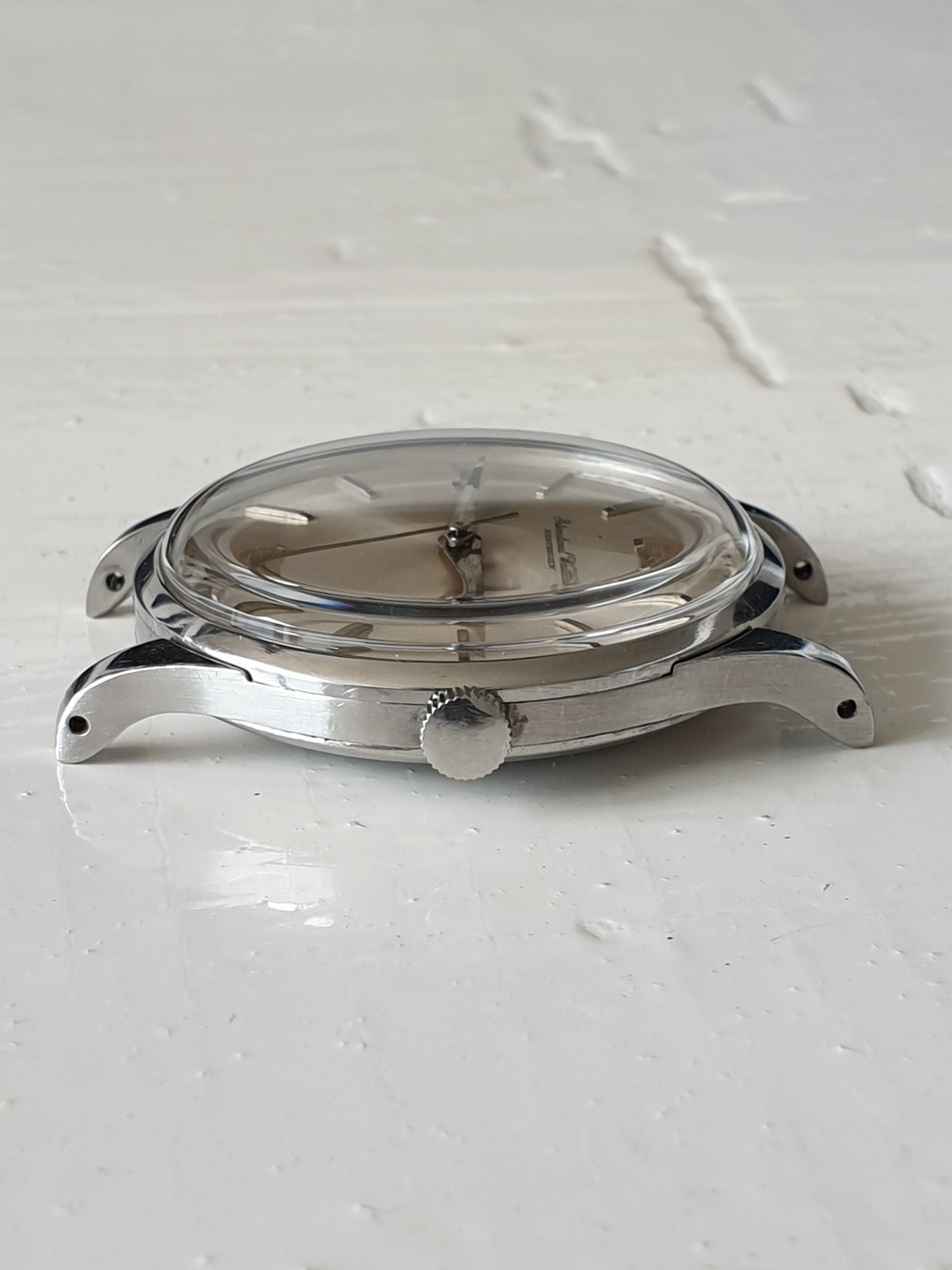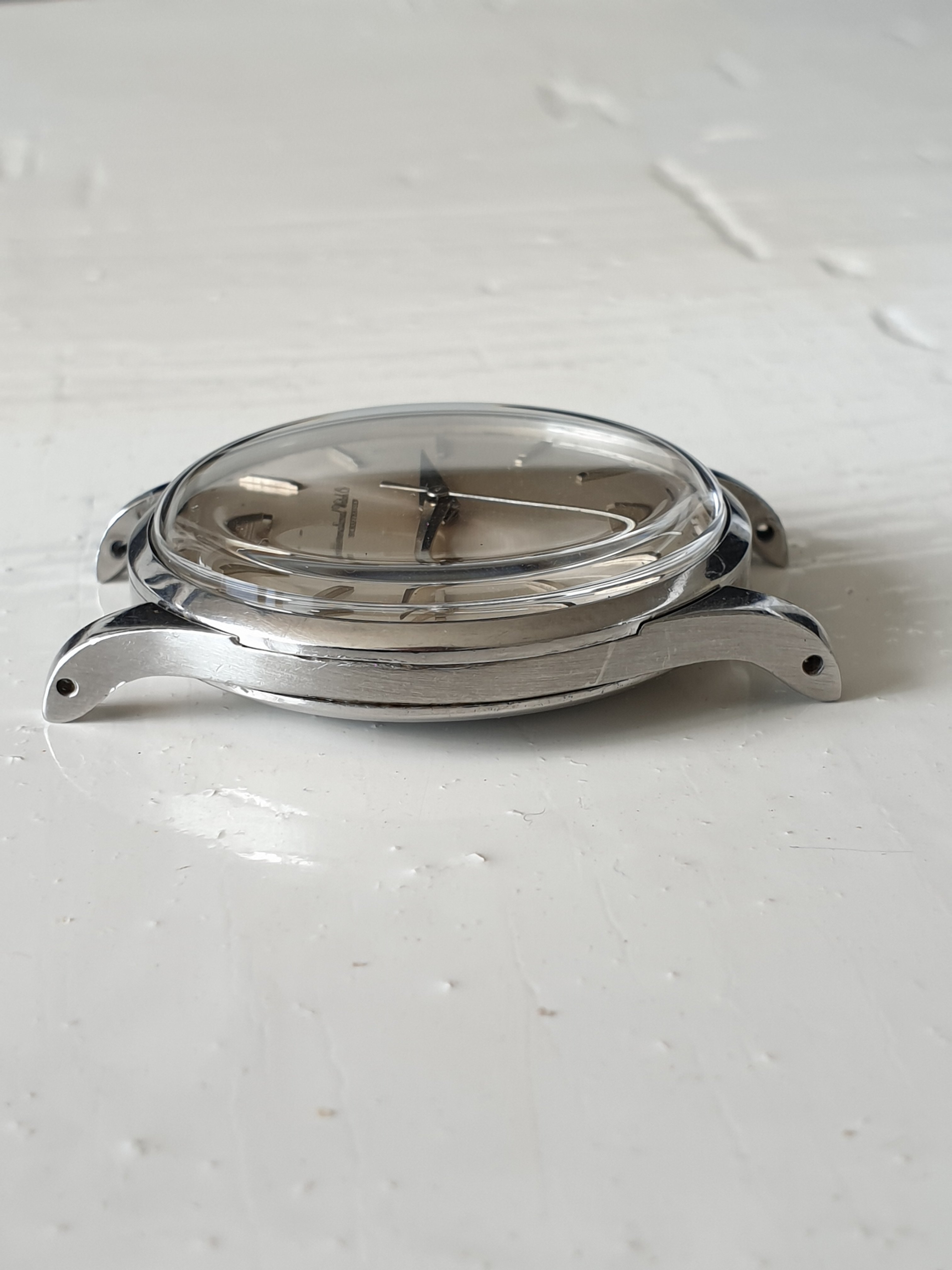 This particular IWC in stainless steel is a good entry level into IWC. The 35mm case (without crown) is in good condition showing some light wear from use. The unsigned crown is original and era correct for the watch. The crystal remains in excellent condition showing no crazing. The lovely sunburst dial is in excellent condition. The original stainless steel dauphine style hands complete the overall stylistic presence of the watch. Lug width 18mm.