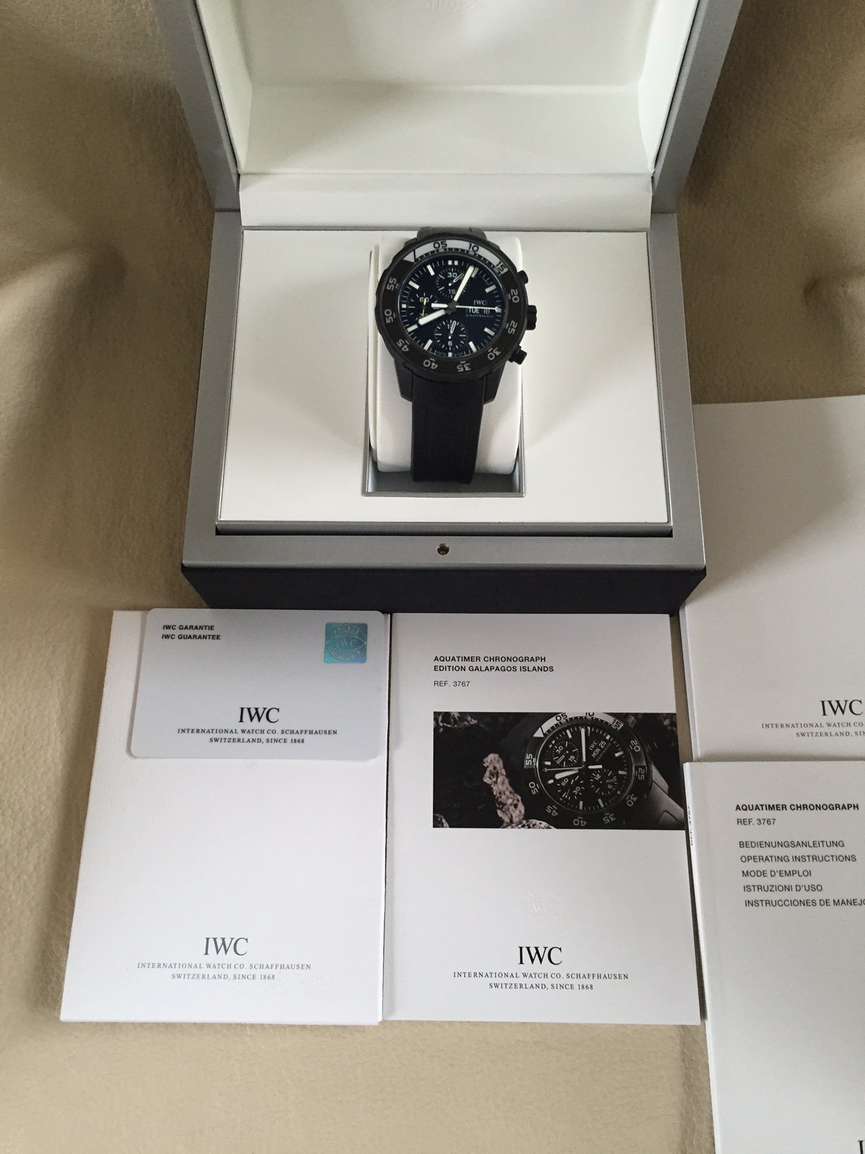 Posts 1,468 Likes 81 jblau ·Dec 2, 2015 Brand- IWC Model- Galapagos Size-44mm Color-Black Box and papers- Complete Condition- NIB Price- 3700 Contact- Jblau@melvillecapital Phone- 5169659228