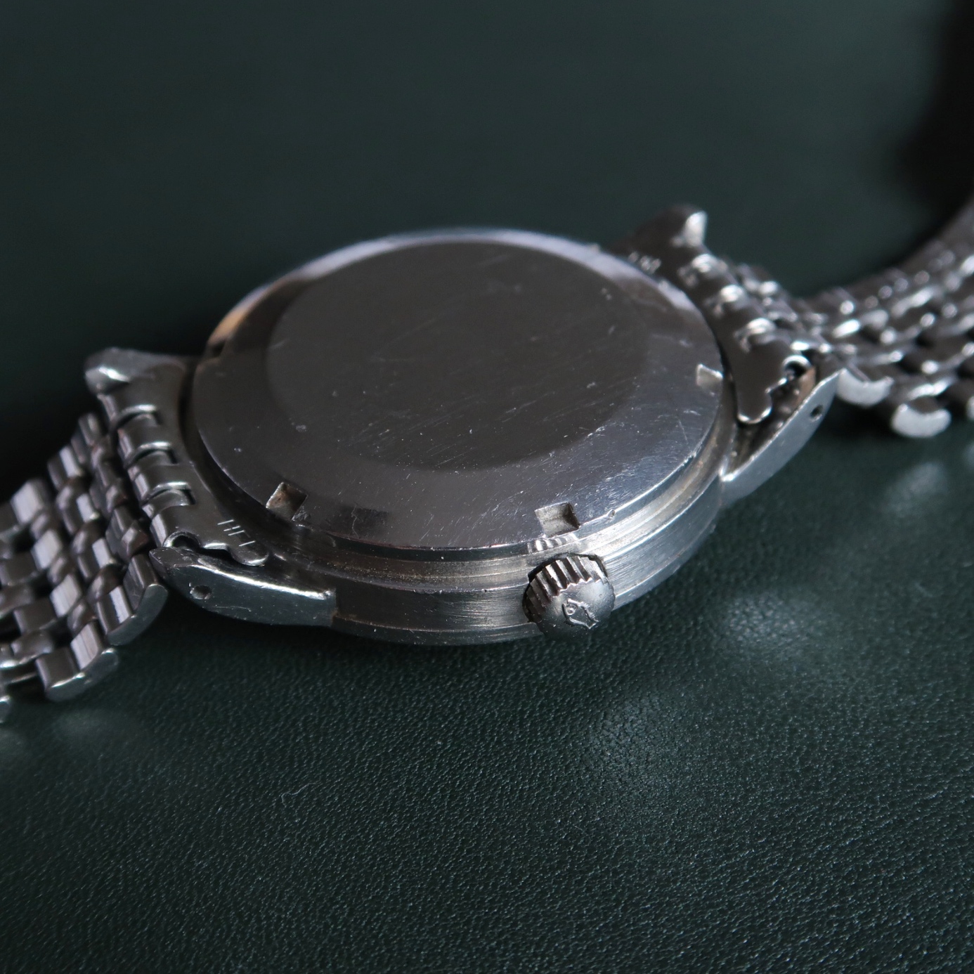 Case: 36.5mm stainless screw back case that’s 18mm at the lugs and 12.7mm thick with crystal. Case retains its factory lines and brushing. It has the soft iron inner cap. Serial is clear between lugs, 1652039.
