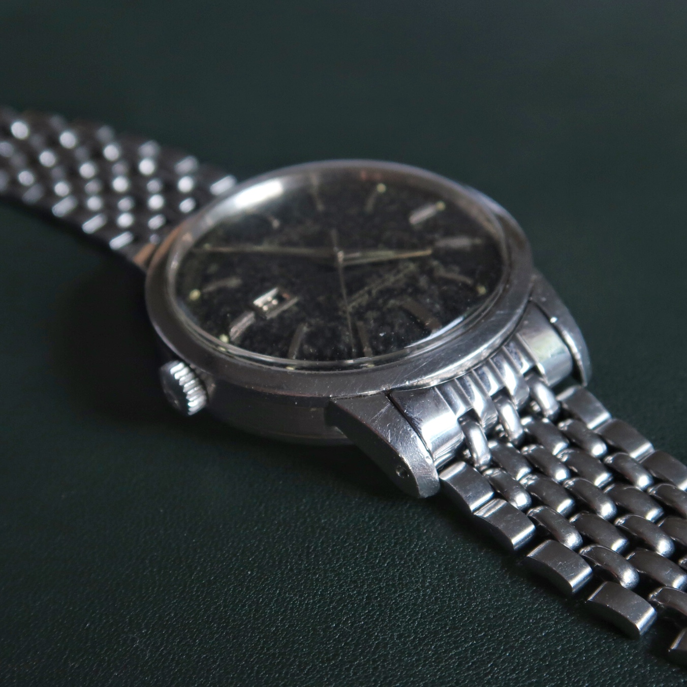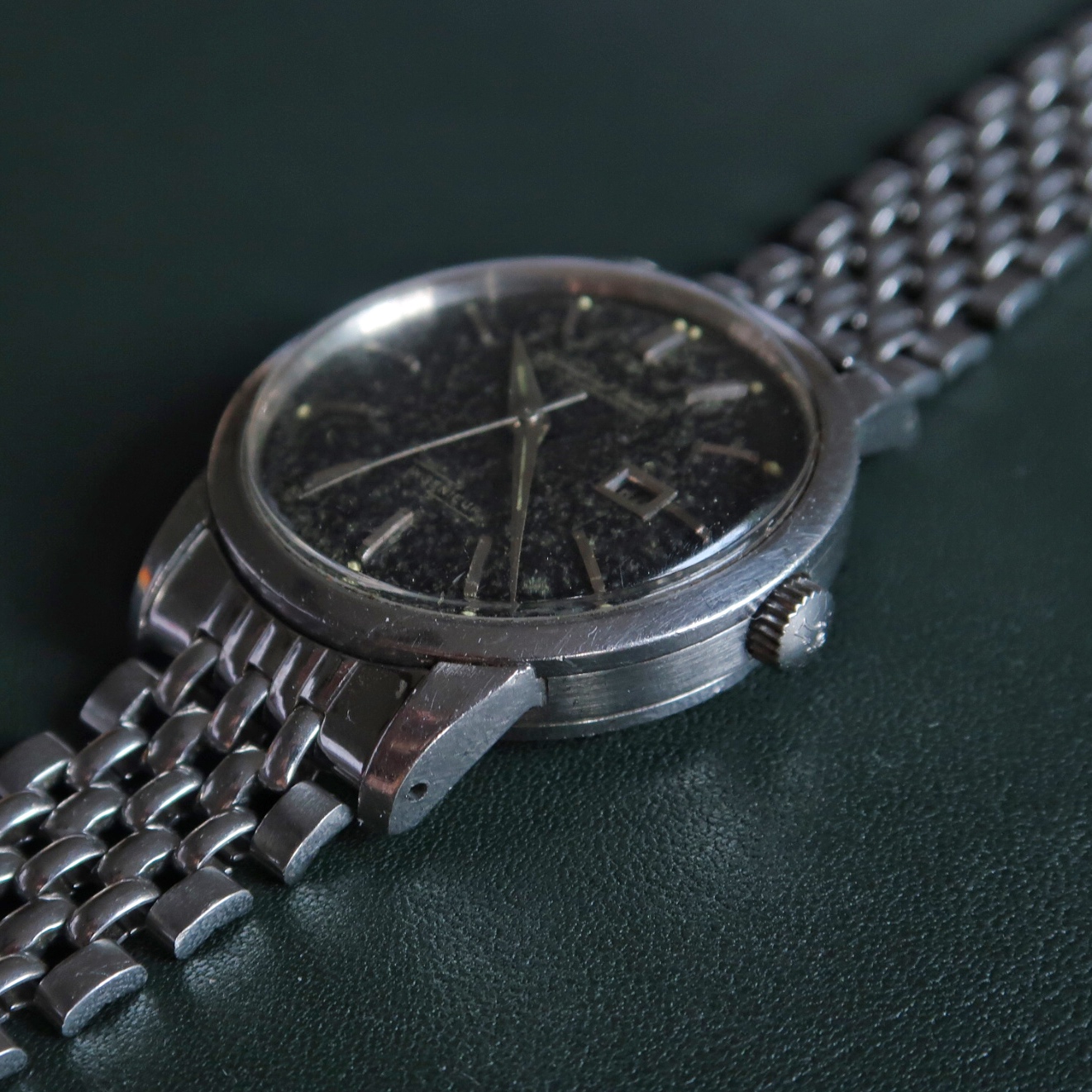 Movement: cal 853 is running well, I had my watchmaker lubricate the mainspring a couple of years ago and it’s keeping decent time (update, I timed against the Atomic Clock and it was around +15s over 24hrs). I’d recommend a service as there are no service marks in the caseback. It retains its original silver gilt date wheel. Sorry for no movement pics, I couldn’t easily remove the iron shroud.