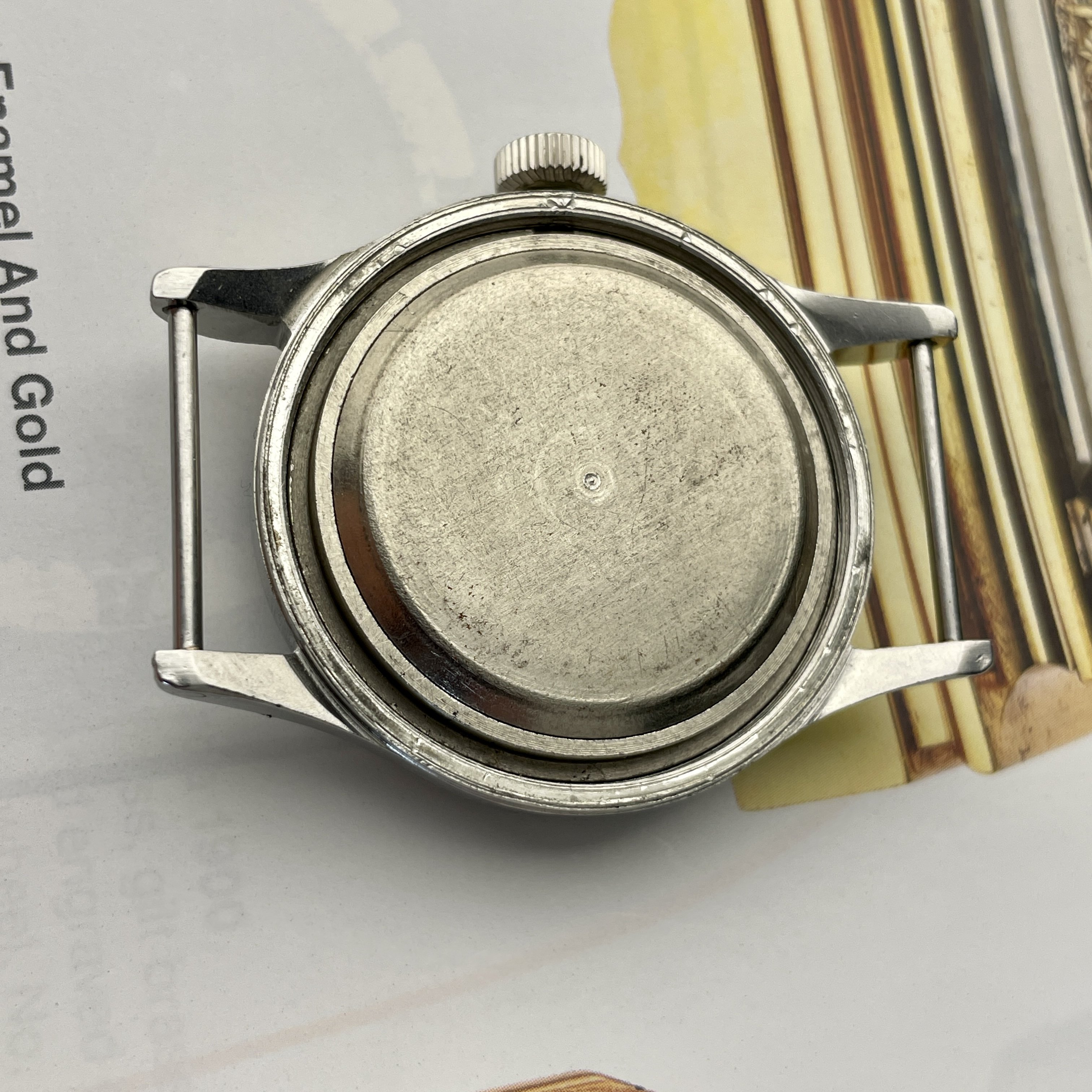 The watch perfectly retains all its military caseback engravings and is unpolished. Light age related wear. The military winding crown is original, too.