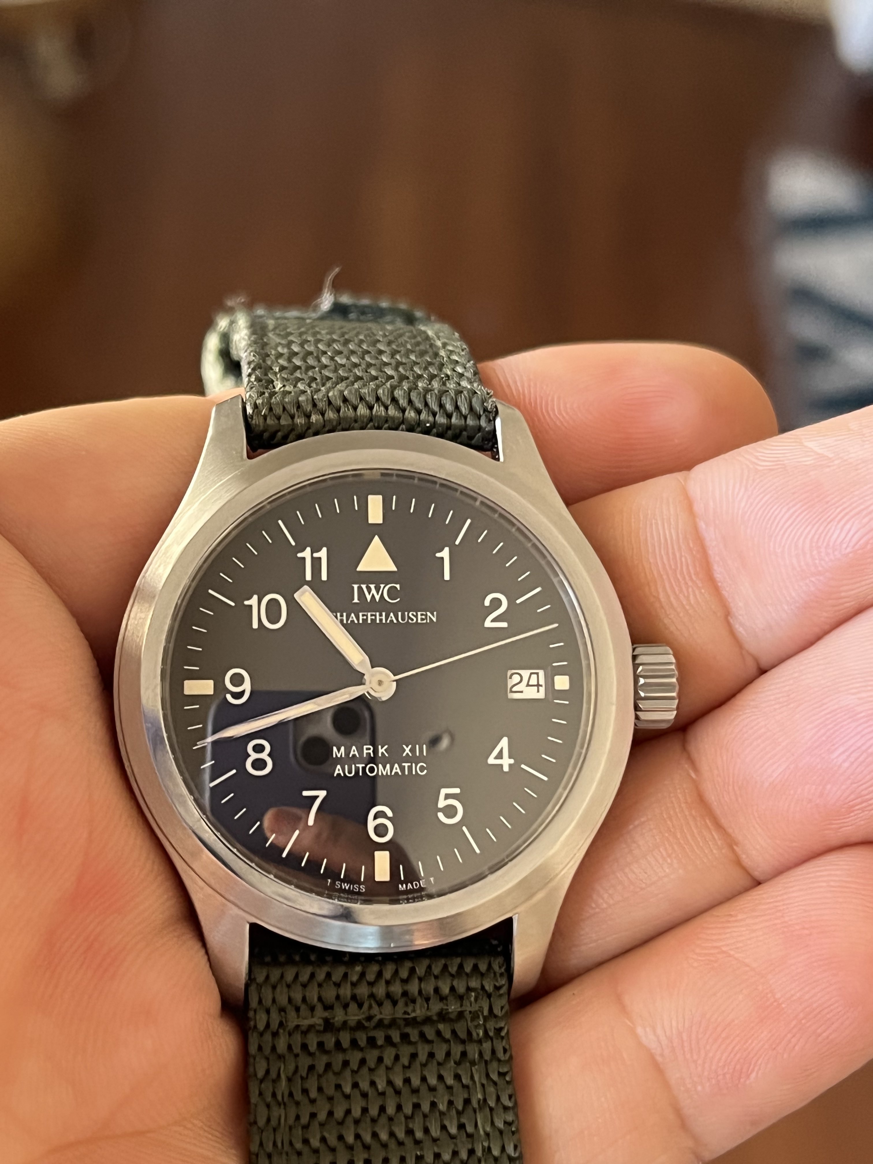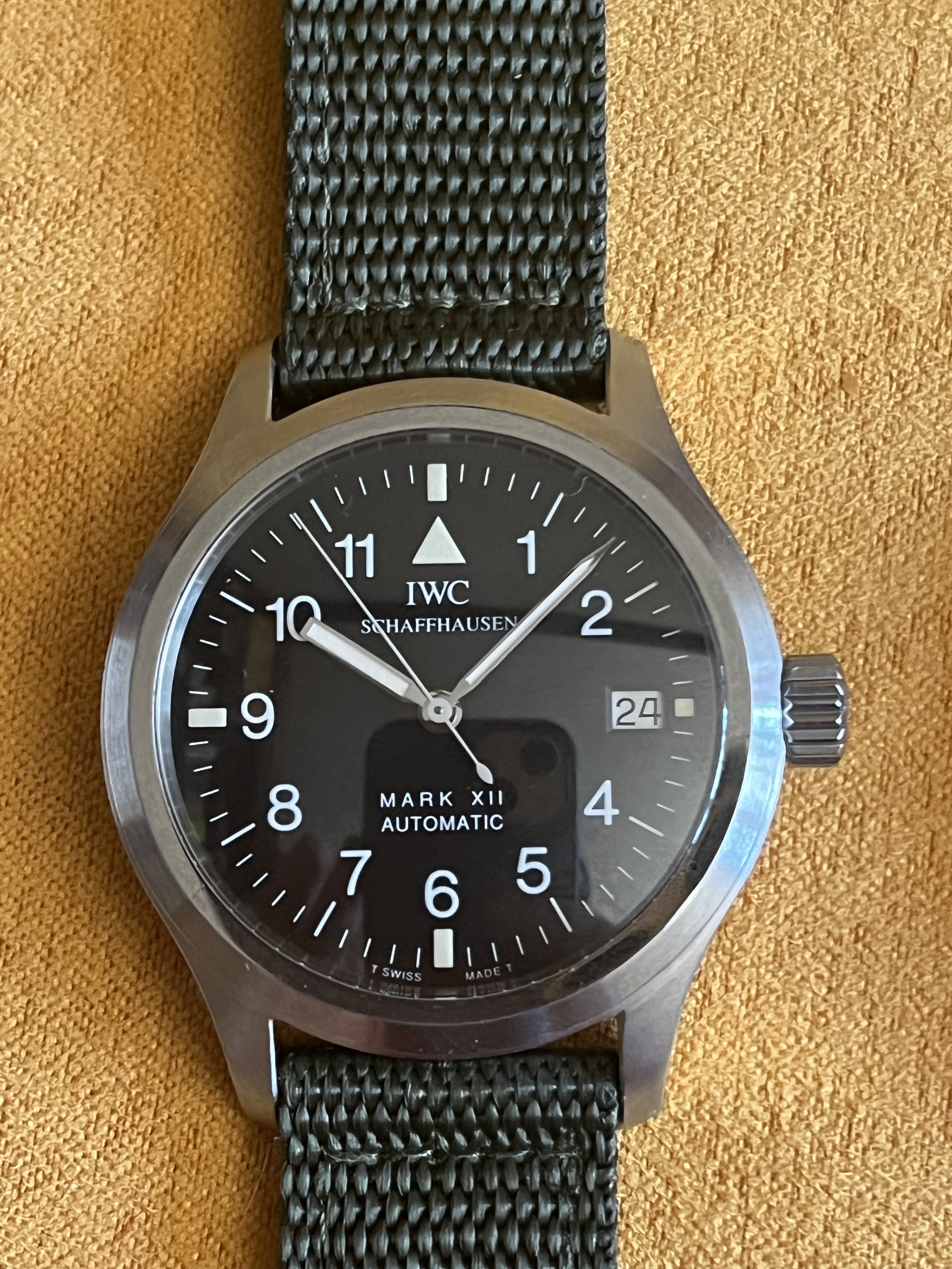 ·For sale is my IWC Mark XII 12 (IW3241) pilots watch with original IWC beads of rice bracelet and IWC Black Buffalo leather strap with IWC clasp.