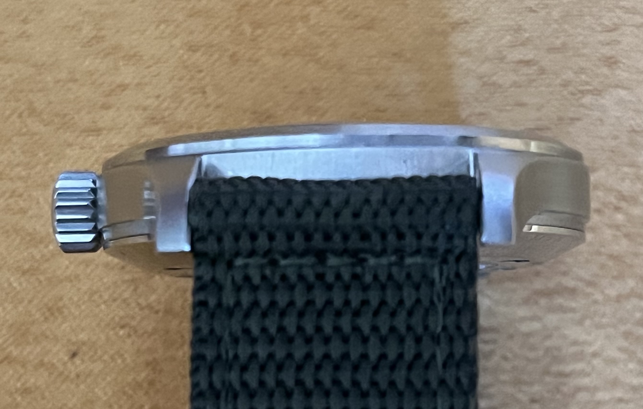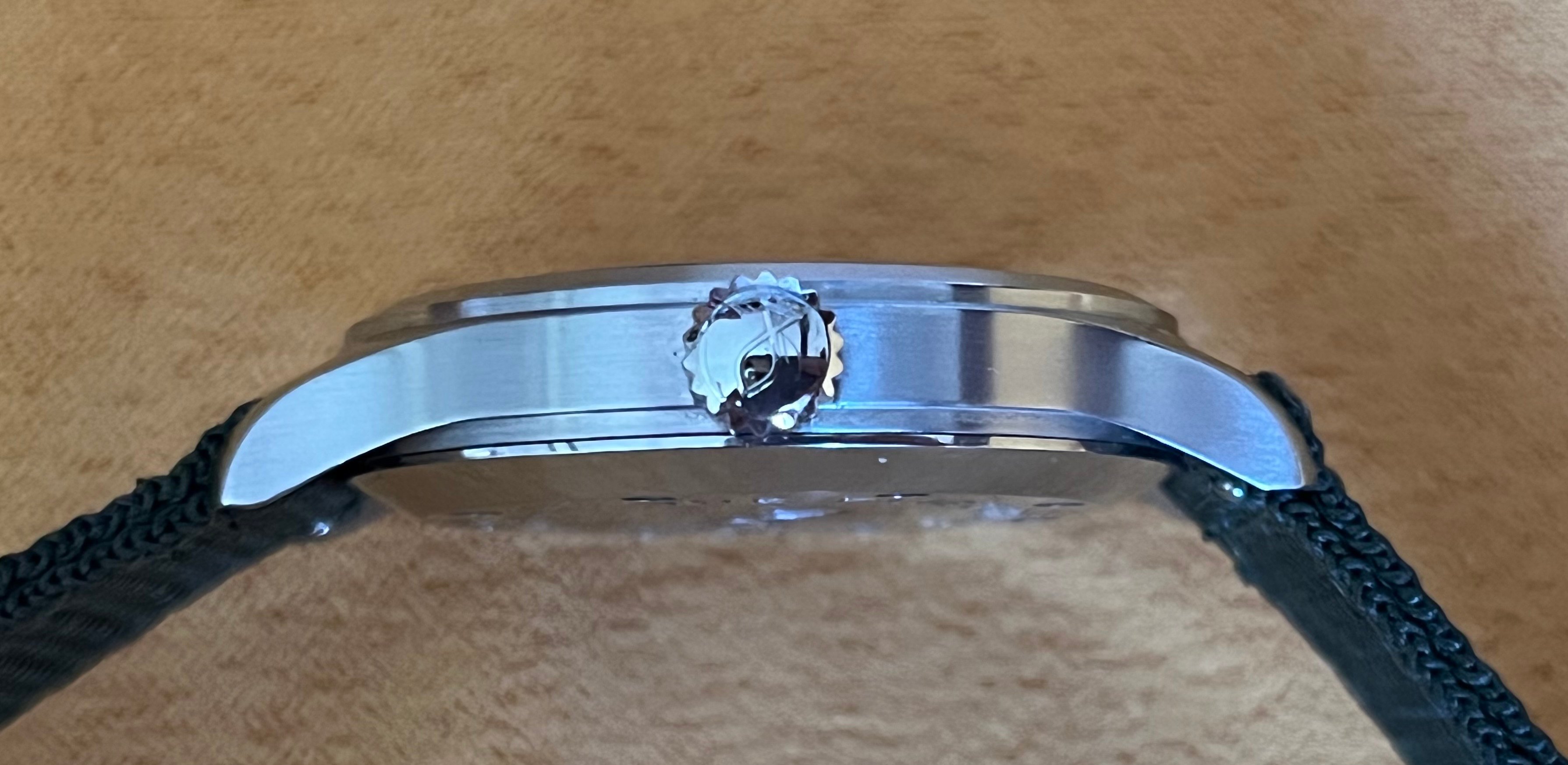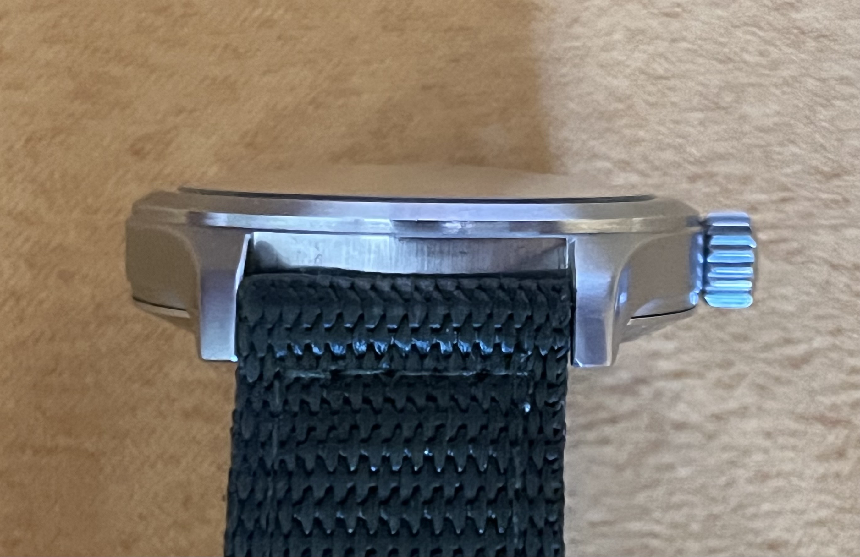 Excellent matte black dial with tritium dial and hands. Light patina on tritium markers and hands.